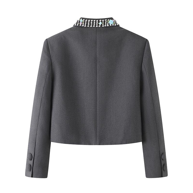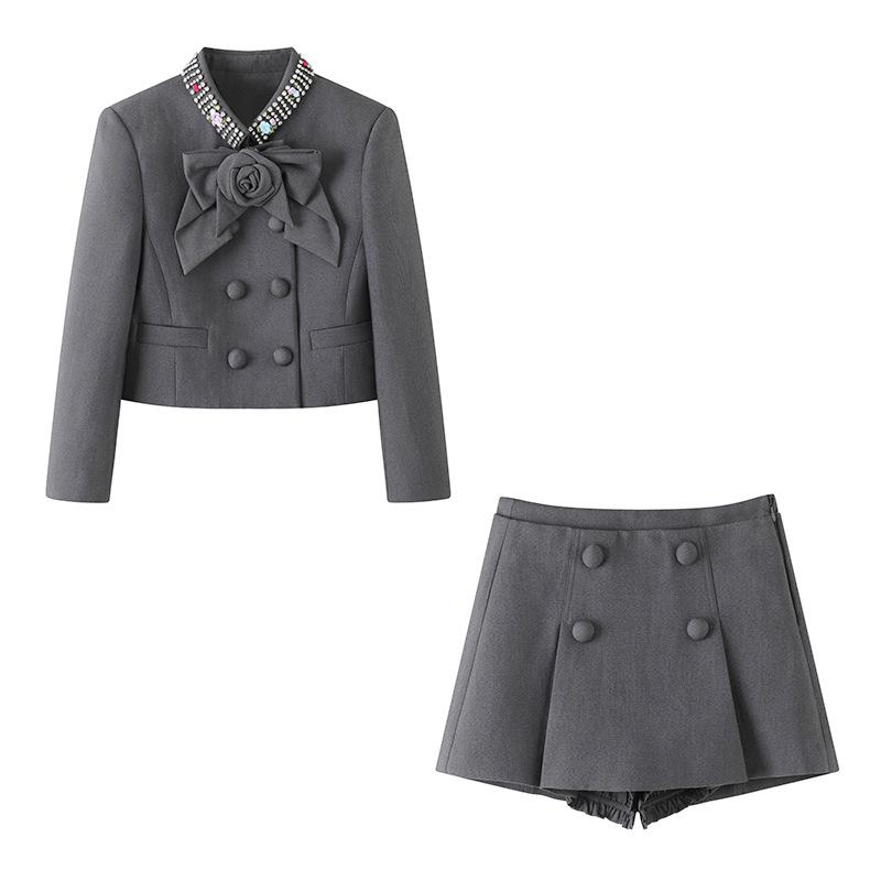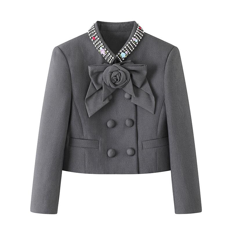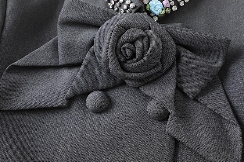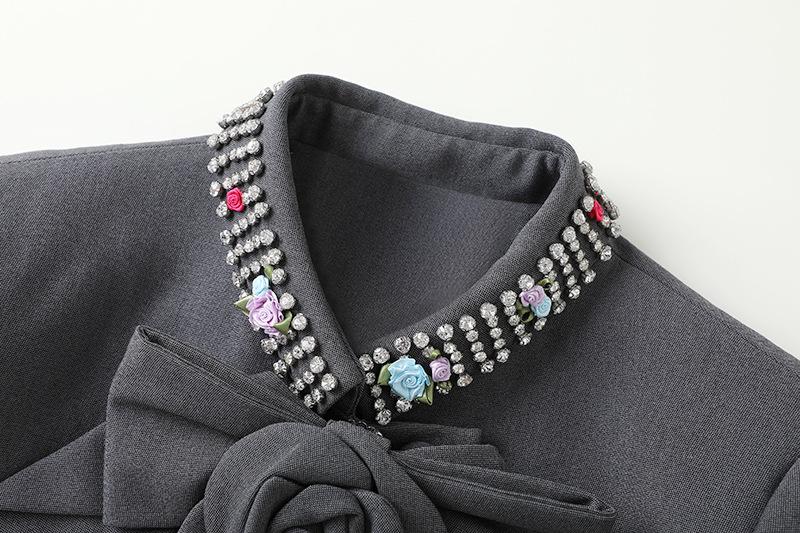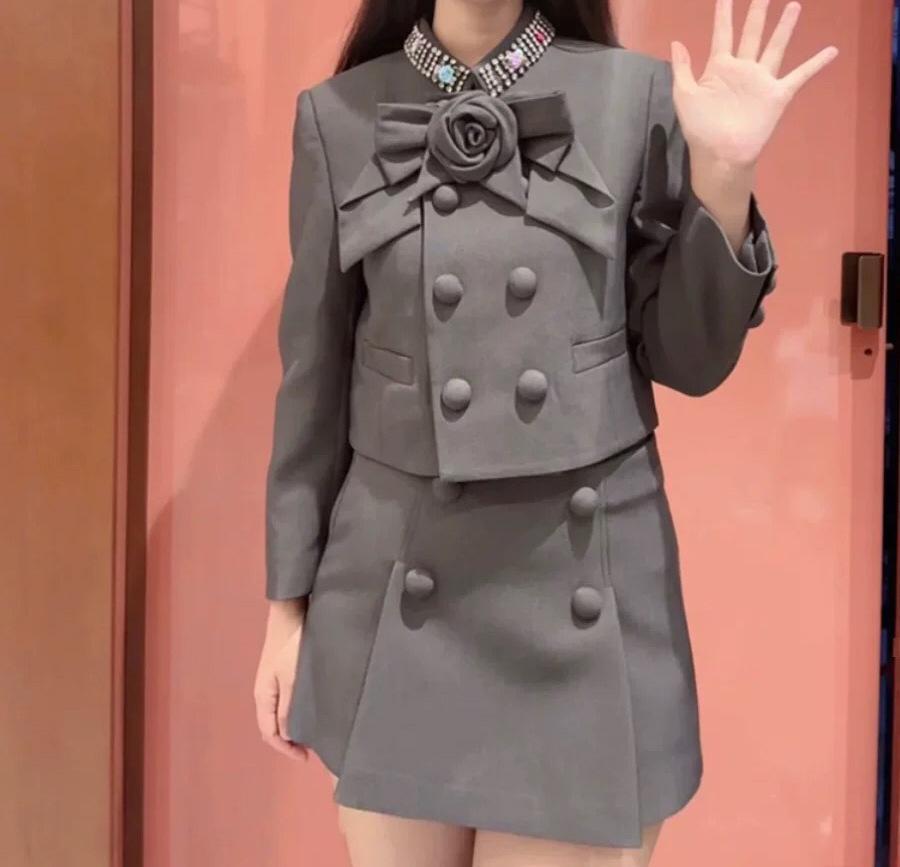 Traje de Moda Otoño/Invierno 2025 para Mujer con Decoración de Rosas y Blazer de Pedrería, Falda Ajustada 1821