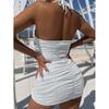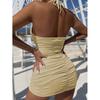 Vestido de verano de Amazon, nuevo, con cuello en V y espalda descubierta, estilo europeo y americano, sexy, con pliegues y caderas.