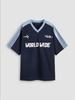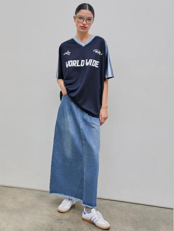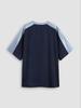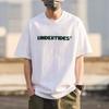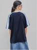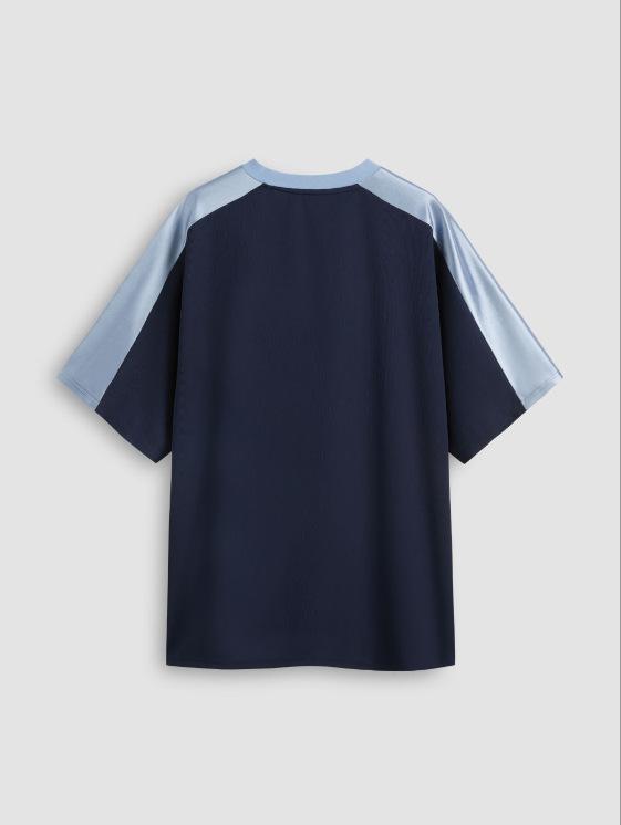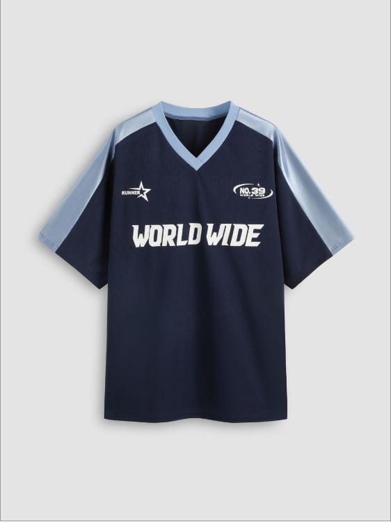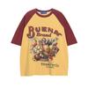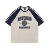 Camiseta de manga corta con estampado de letras retro de calle principal estadounidense, costuras en contraste de color, para hombre y mujer, holgada, de marca de moda, que combina con todo, de media manga