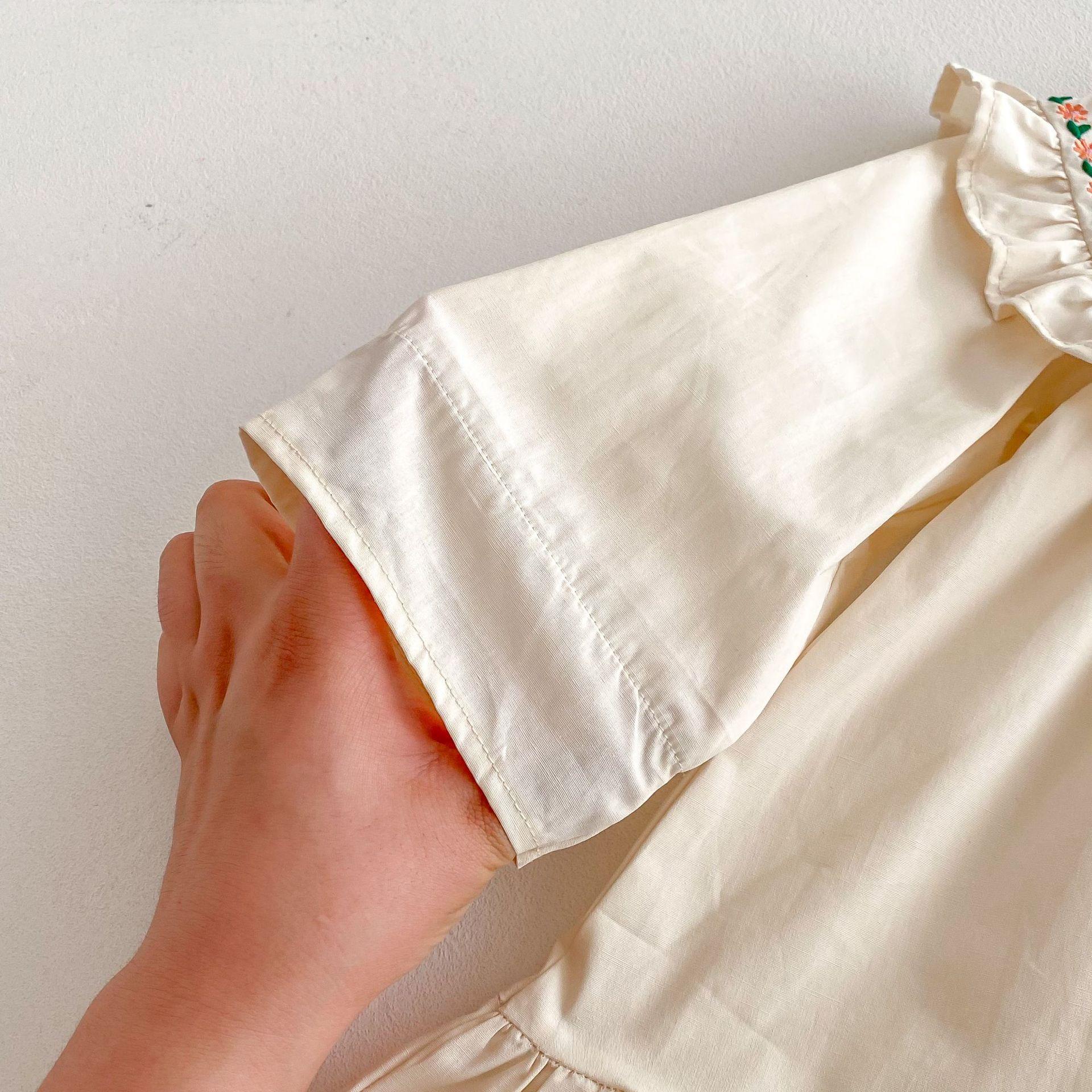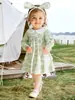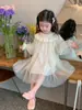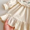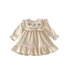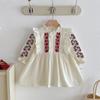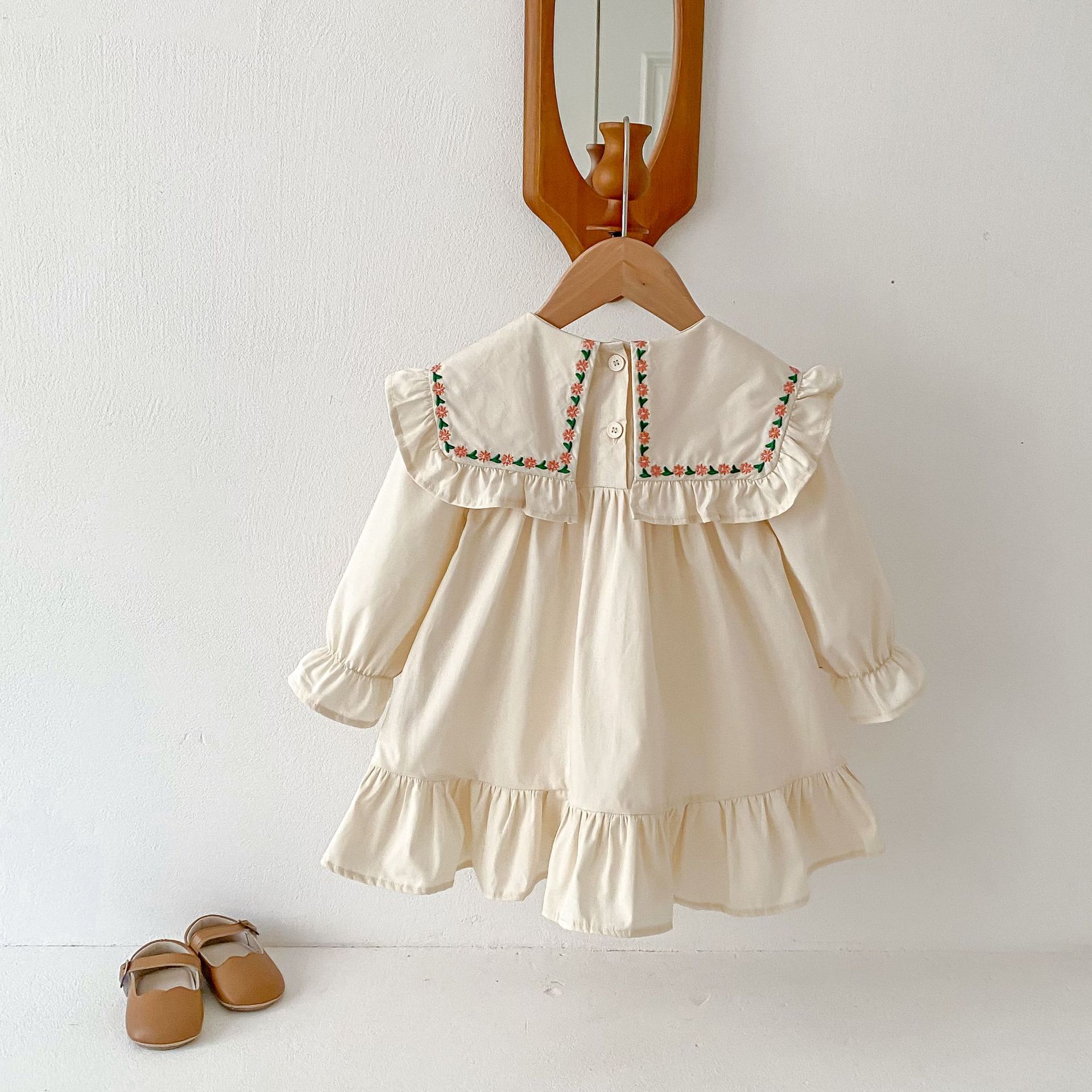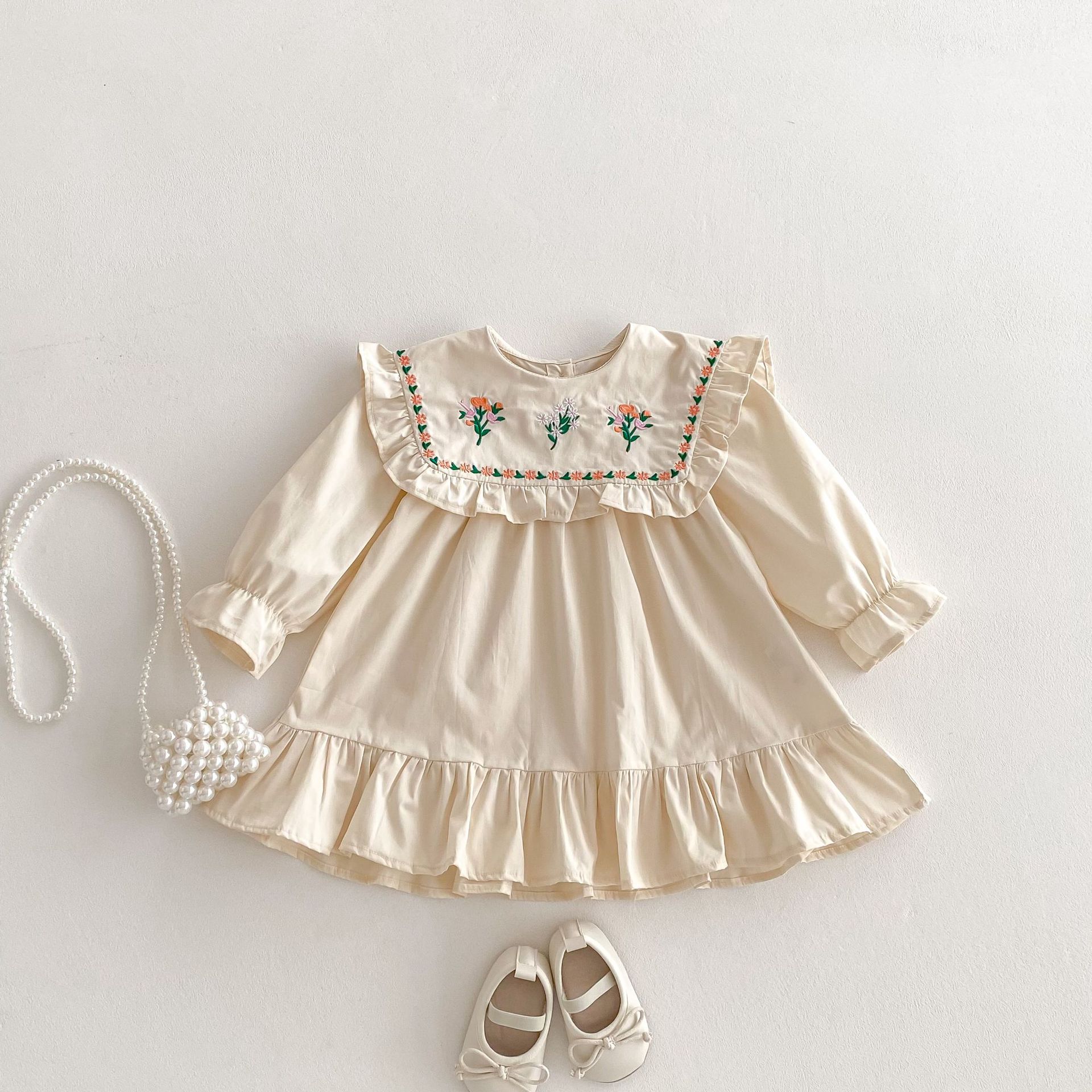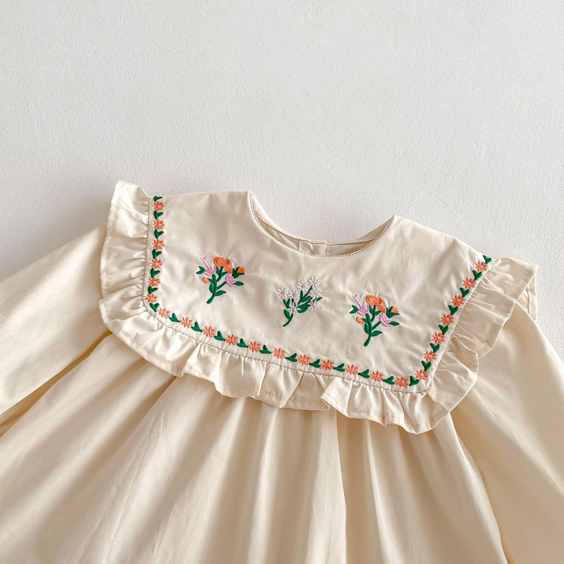 Vestido de niña primavera 2025 para niños, solapa grande, bordado con flores, volantes, manga larga, falda de princesa de algodón