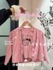 Conjunto de tres piezas de chaqueta y falda plisada de color liso con cuello redondo para otoño e invierno 2024, estilo coreano y occidental.