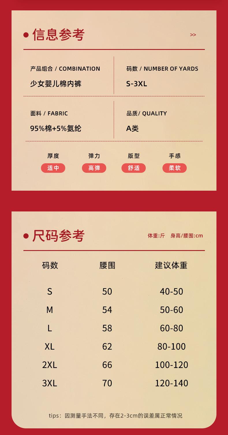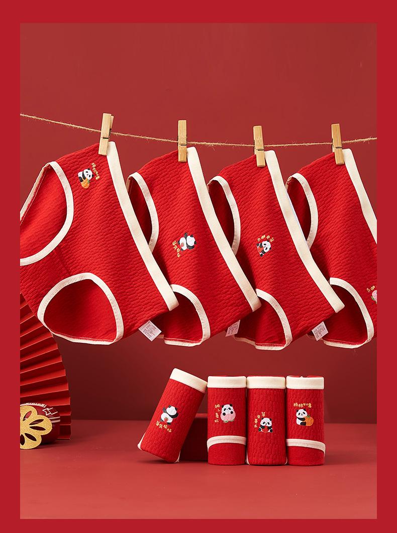 Ropa interior para niña Algodón puro Algodón Clase A 9-12 años Calzoncillos rojos triangulares para niños Año de vida de Año Nuevo para niños grandes Sin PP