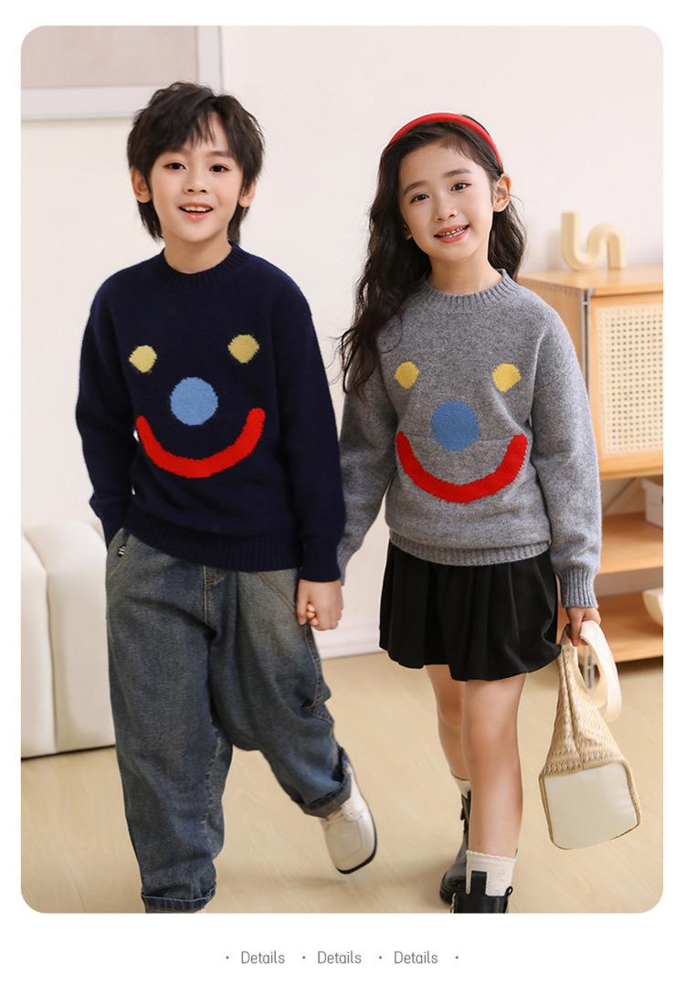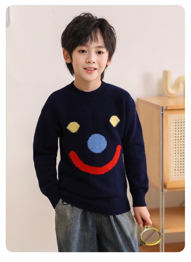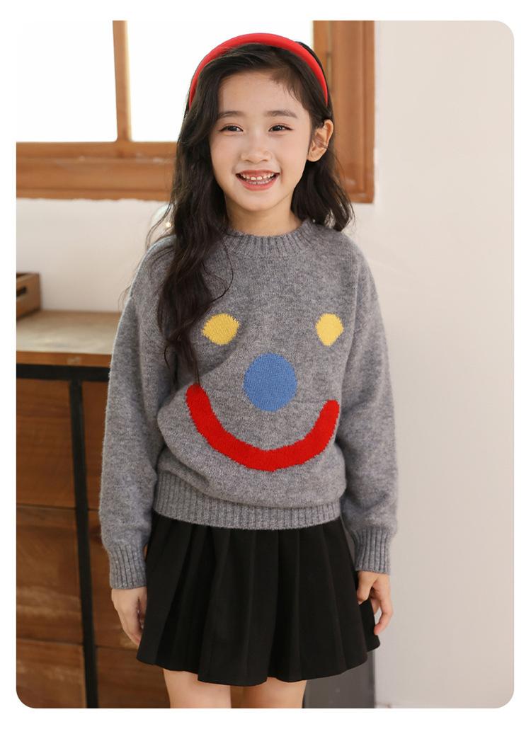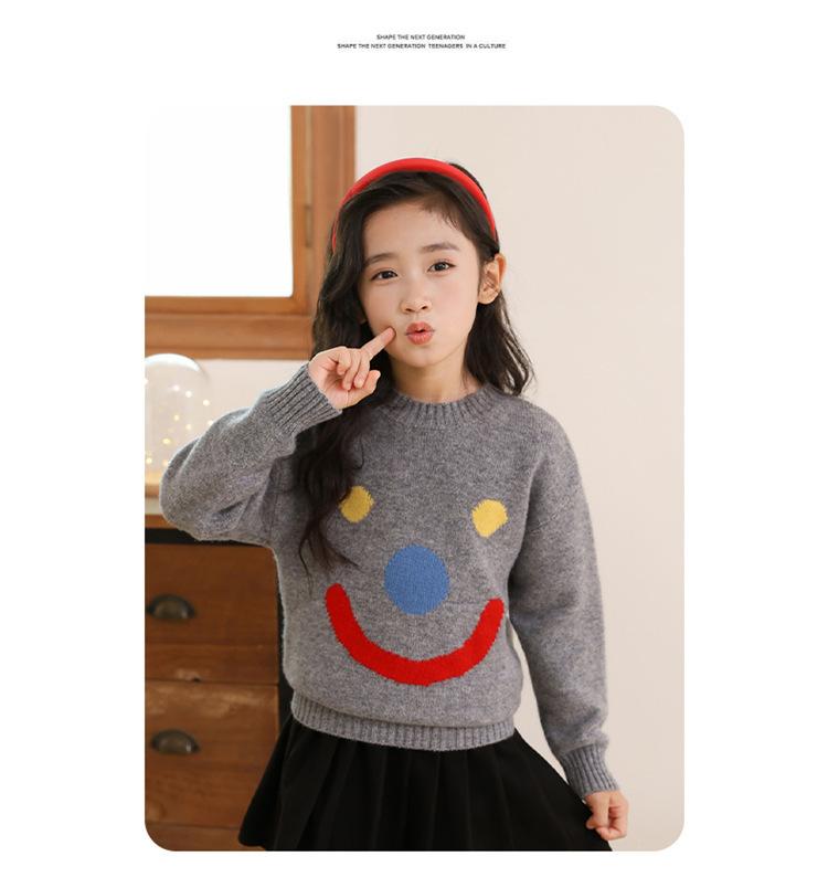 Suéter de lana de otoño e invierno para mujer, jersey de punto de manga larga con cuello redondo y estampado de payaso sonriente de siete pines