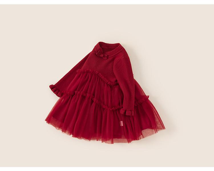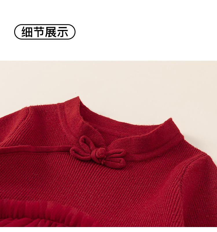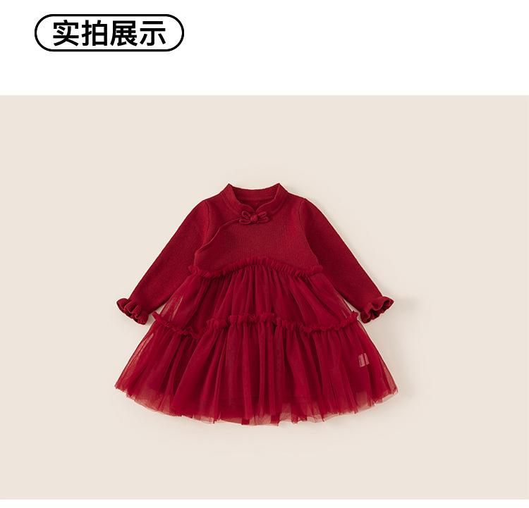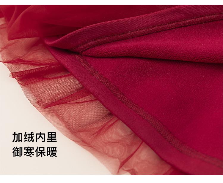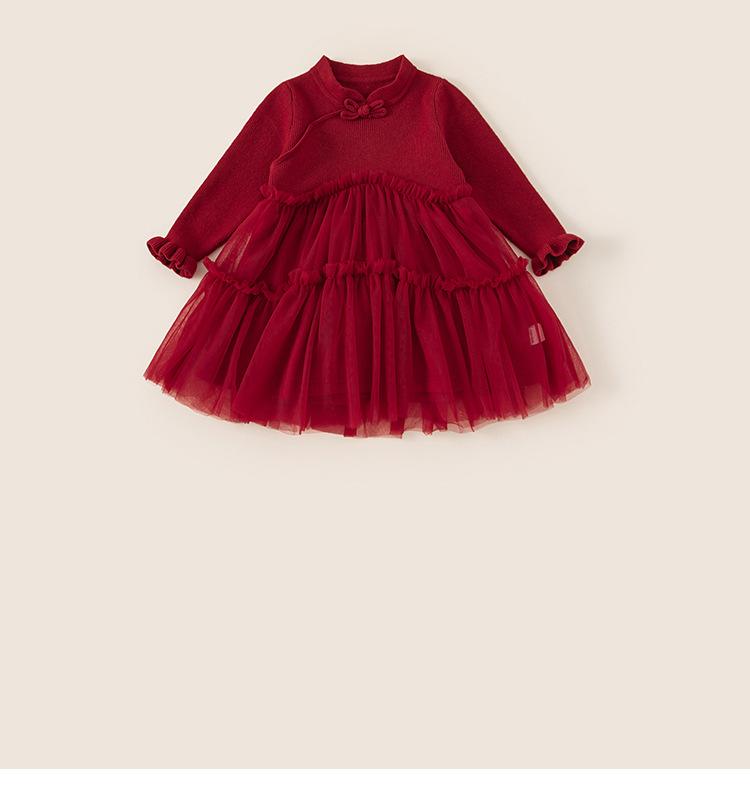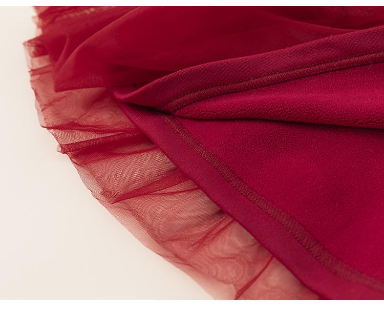Bong Falda Infantil de Invierno Roja Estilo Nacional Vestido de Lana con Hebilla para Niña Costuras Malla Vestido de Mujer Po Plus Terciopelo