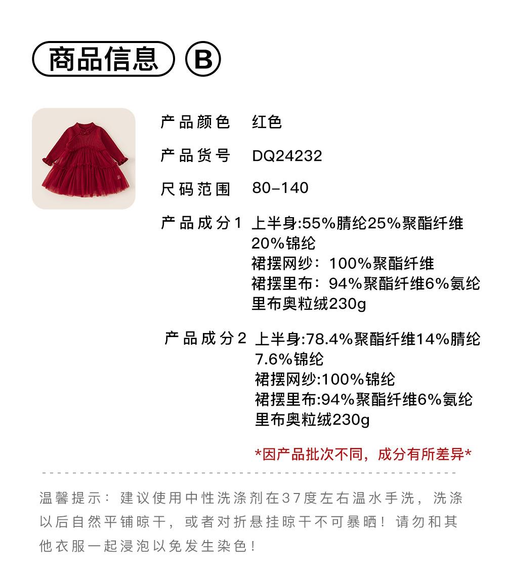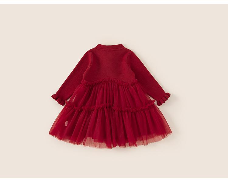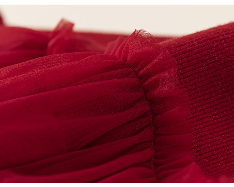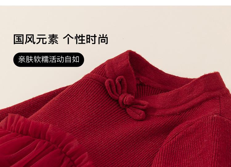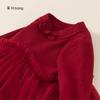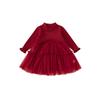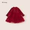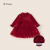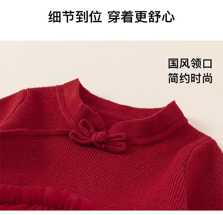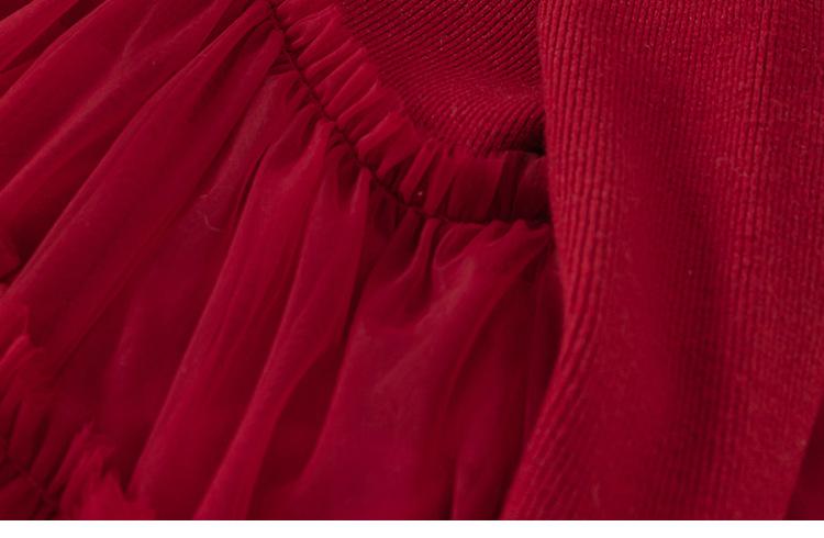 Bong Falda Infantil de Invierno Roja Estilo Nacional Vestido de Lana con Hebilla para Niña Costuras Malla Vestido de Mujer Po Plus Terciopelo