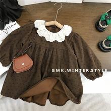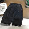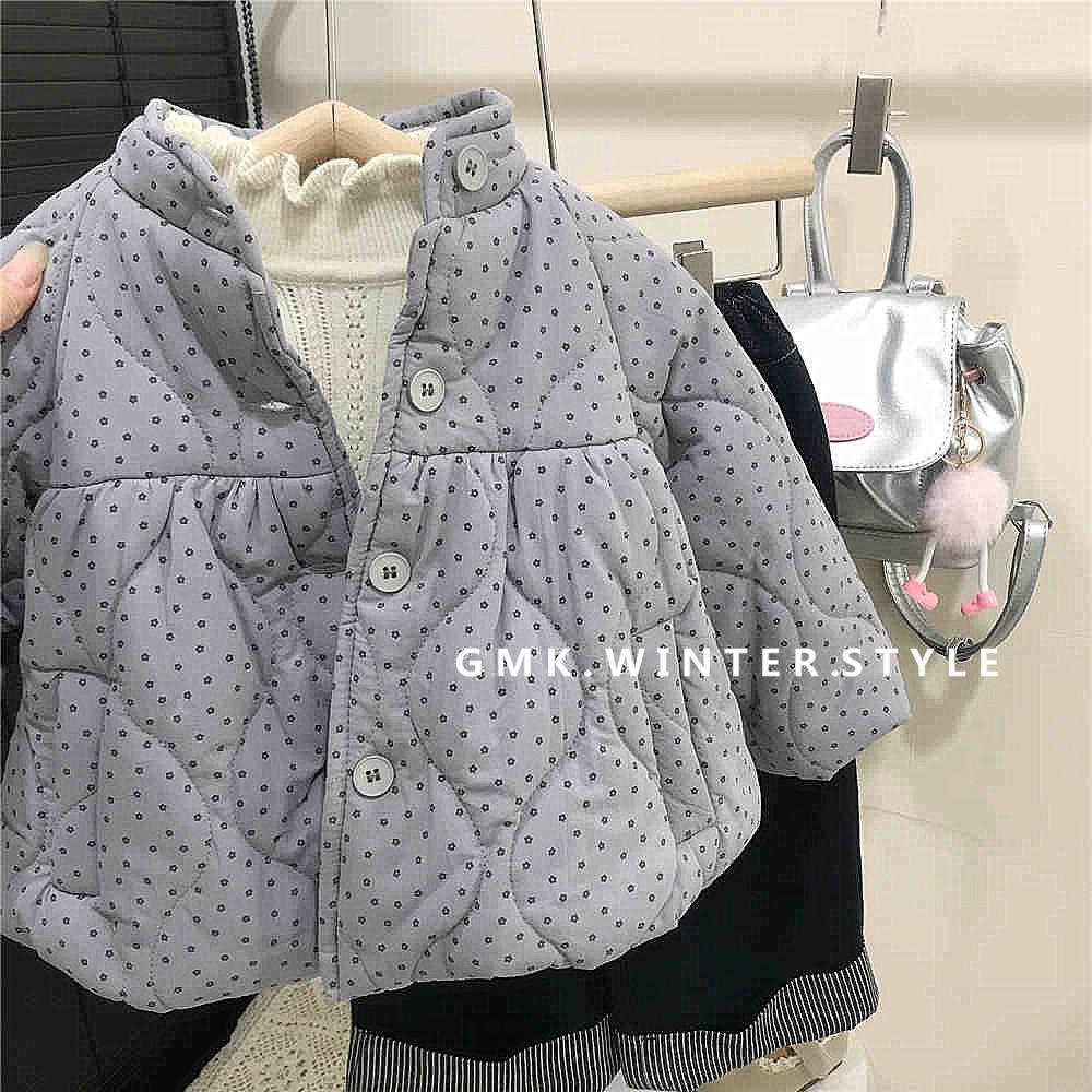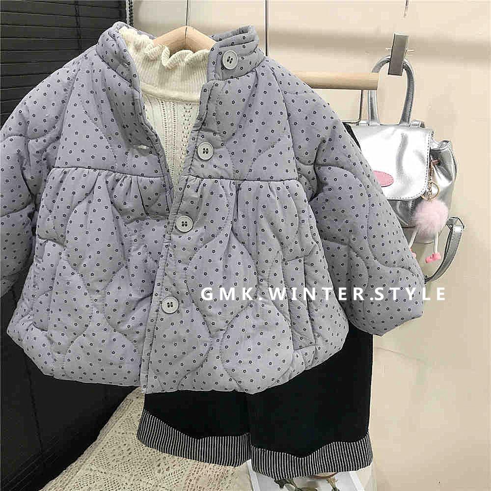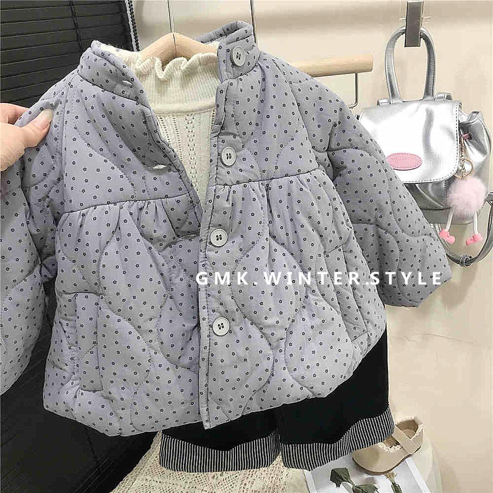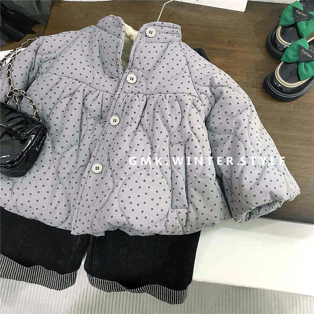 Ropa infantil coreana, otoño e invierno, nueva moda occidental para niñas, jeans grises acolchados de algodón con estampado floral, resistentes al frío y cálidos para comercio exterior