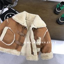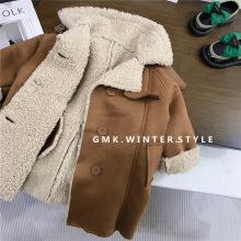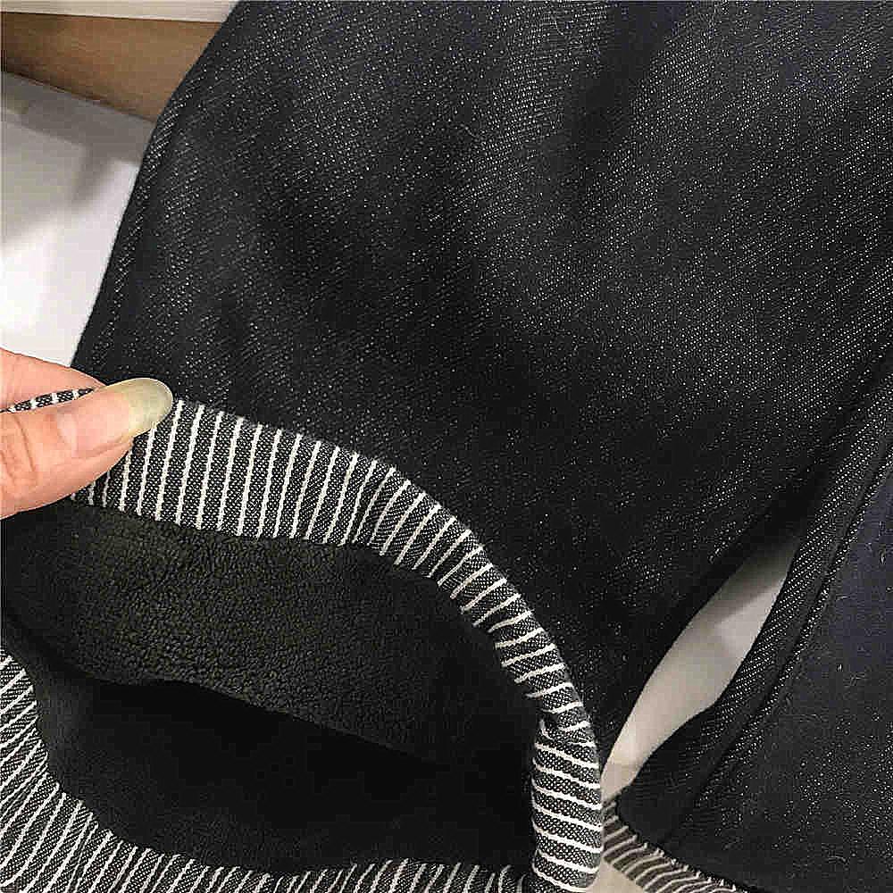 Small flower stand collar cotton coat, Vertical striped solid color fleece jeans