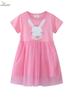 Europeo y Americano Transfronterizo Verano Nuevo Ropa para Niños Vestido Manga Corta Falda de Malla Bordado Conejo Blanco Vestido para Niñas