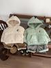 Chaqueta de plumón de invierno para bebé, estilo occidental, color blanco claro, con capucha de oso, cálida, 2024
