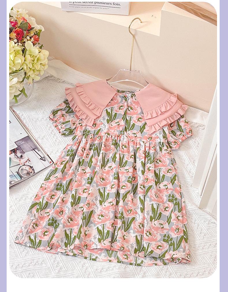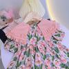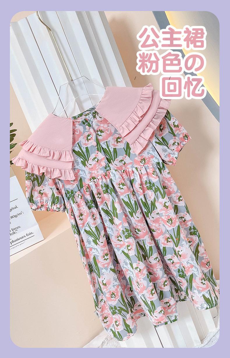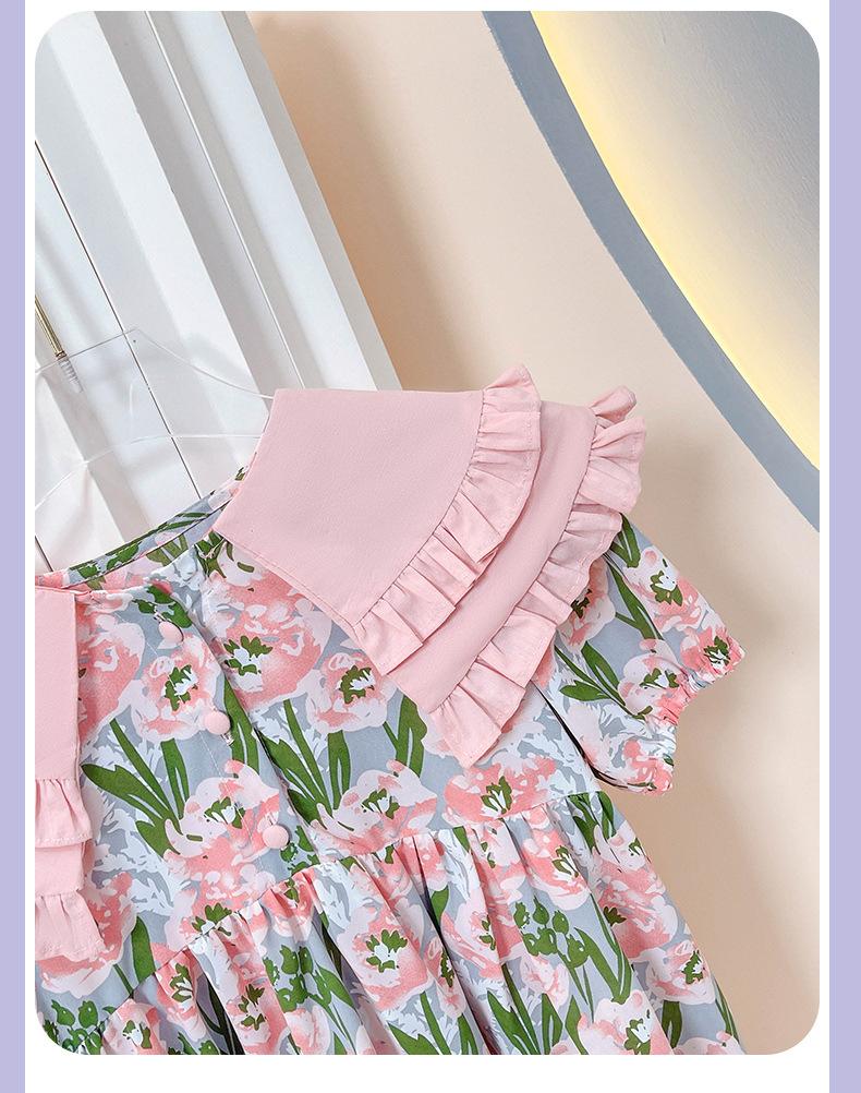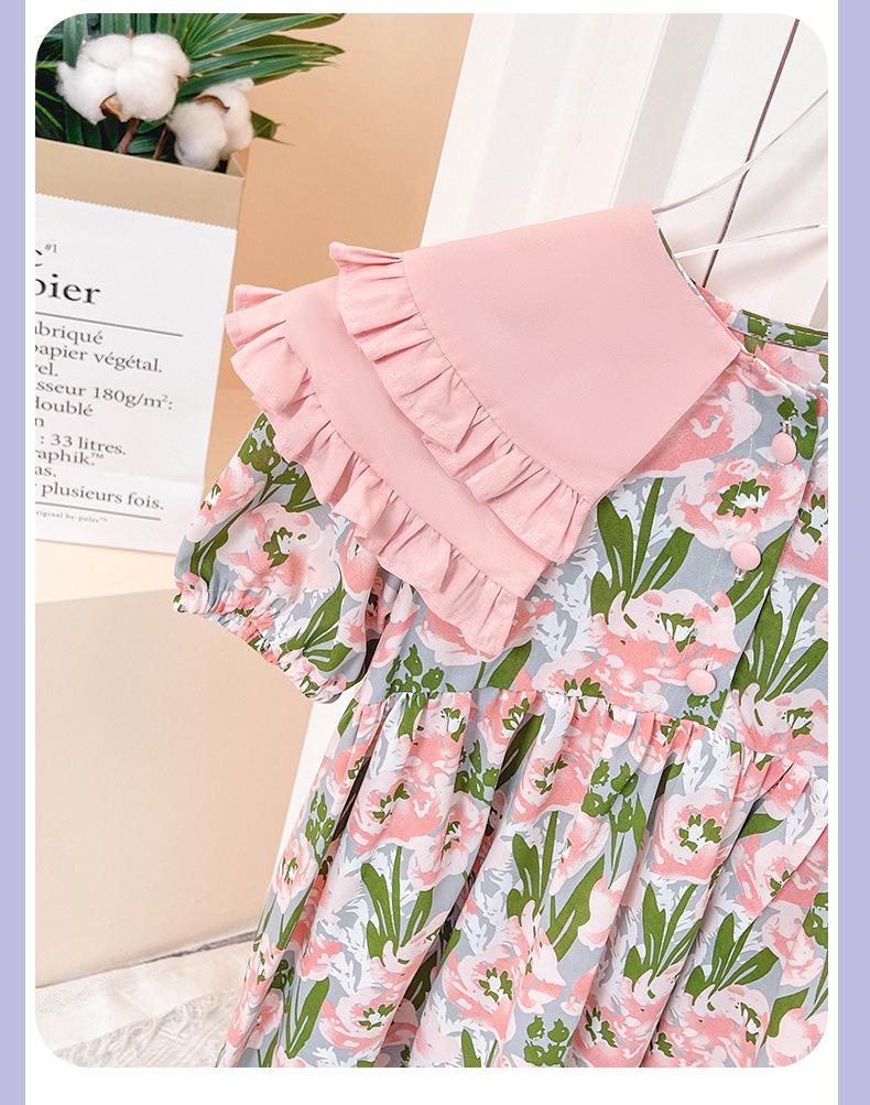 Vestido de Niña 2025 Verano Delgado Bebé Manga Corta Moda Vestido de Princesa Niñas Vestido Floral Rosa