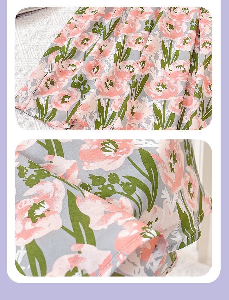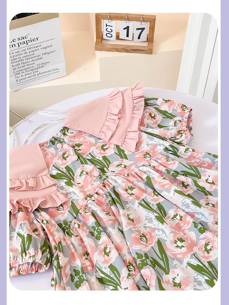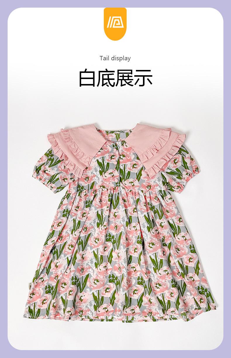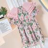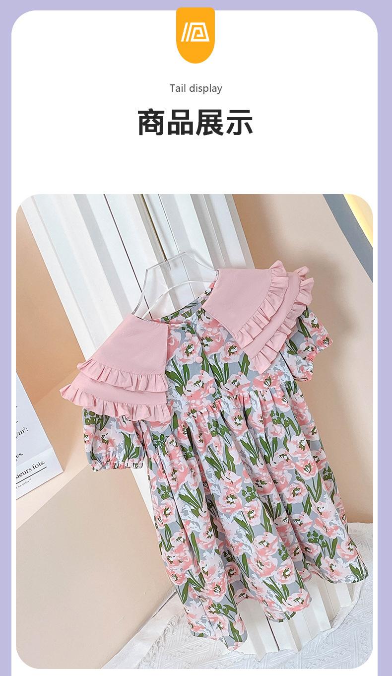 Vestido de Niña 2025 Verano Delgado Bebé Manga Corta Moda Vestido de Princesa Niñas Vestido Floral Rosa