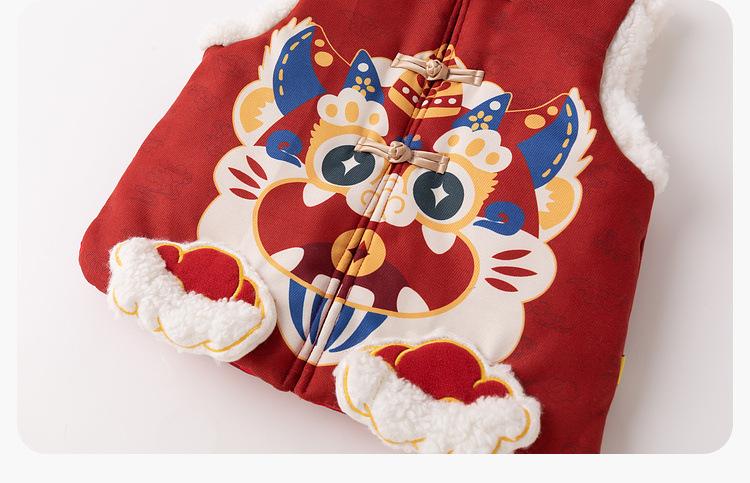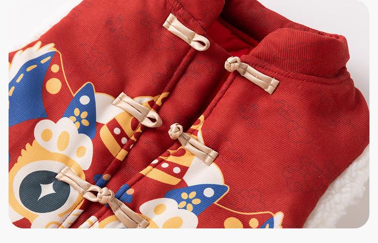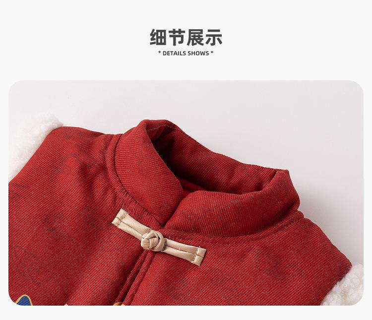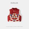 [Ropa de Año Nuevo] Chaleco rojo para niños Doodle, camisa de invierno para bebés, pantalones de algodón grueso para niños