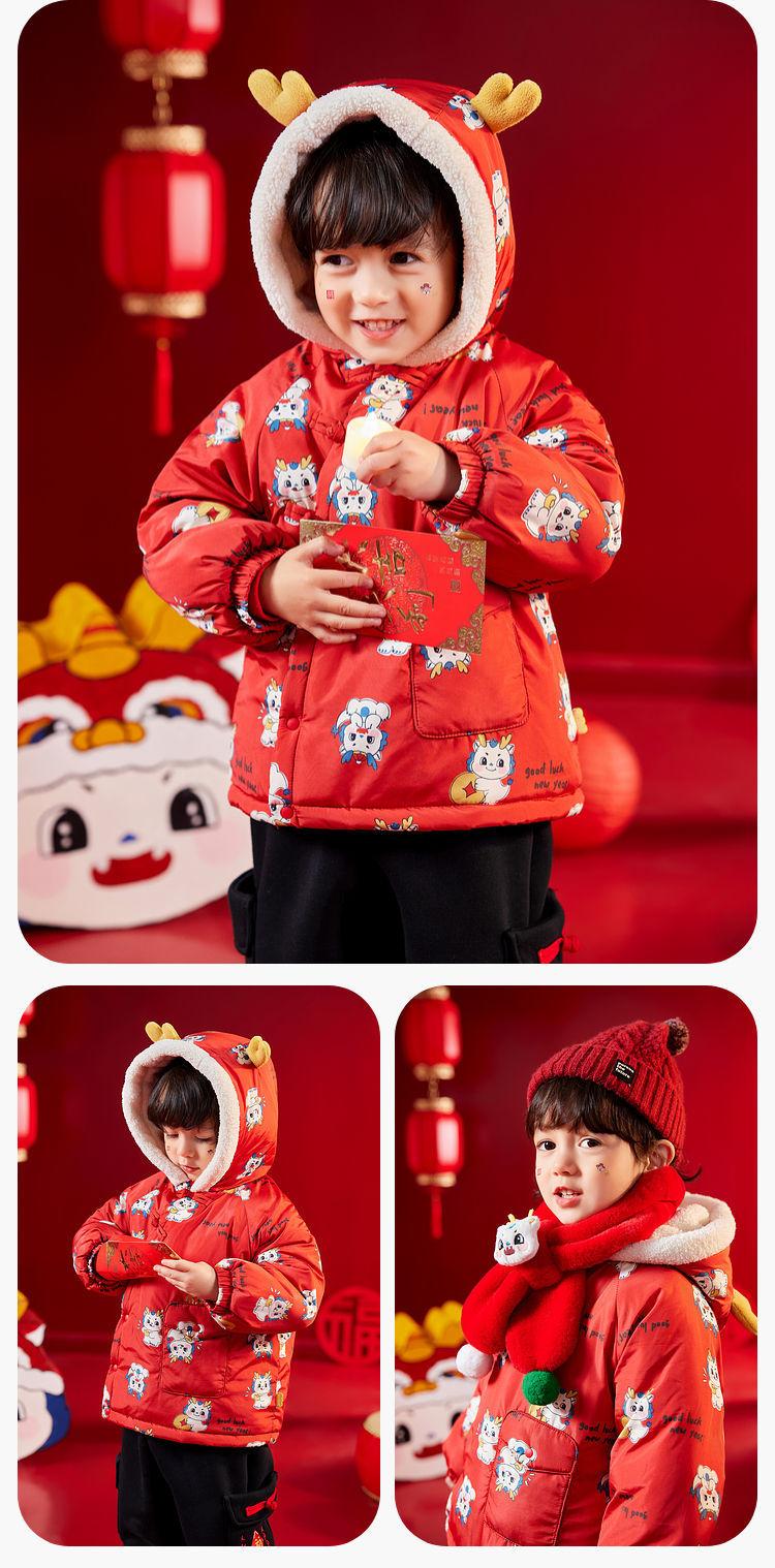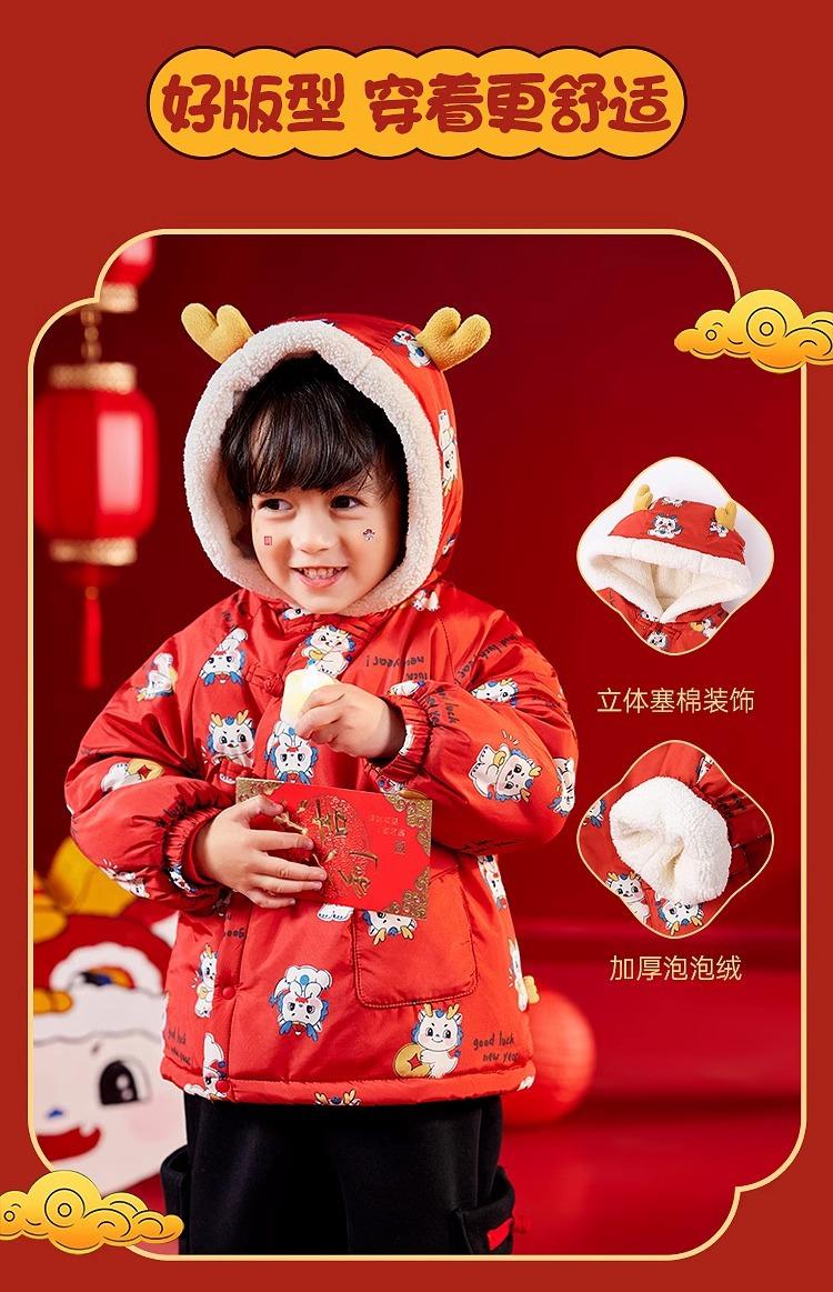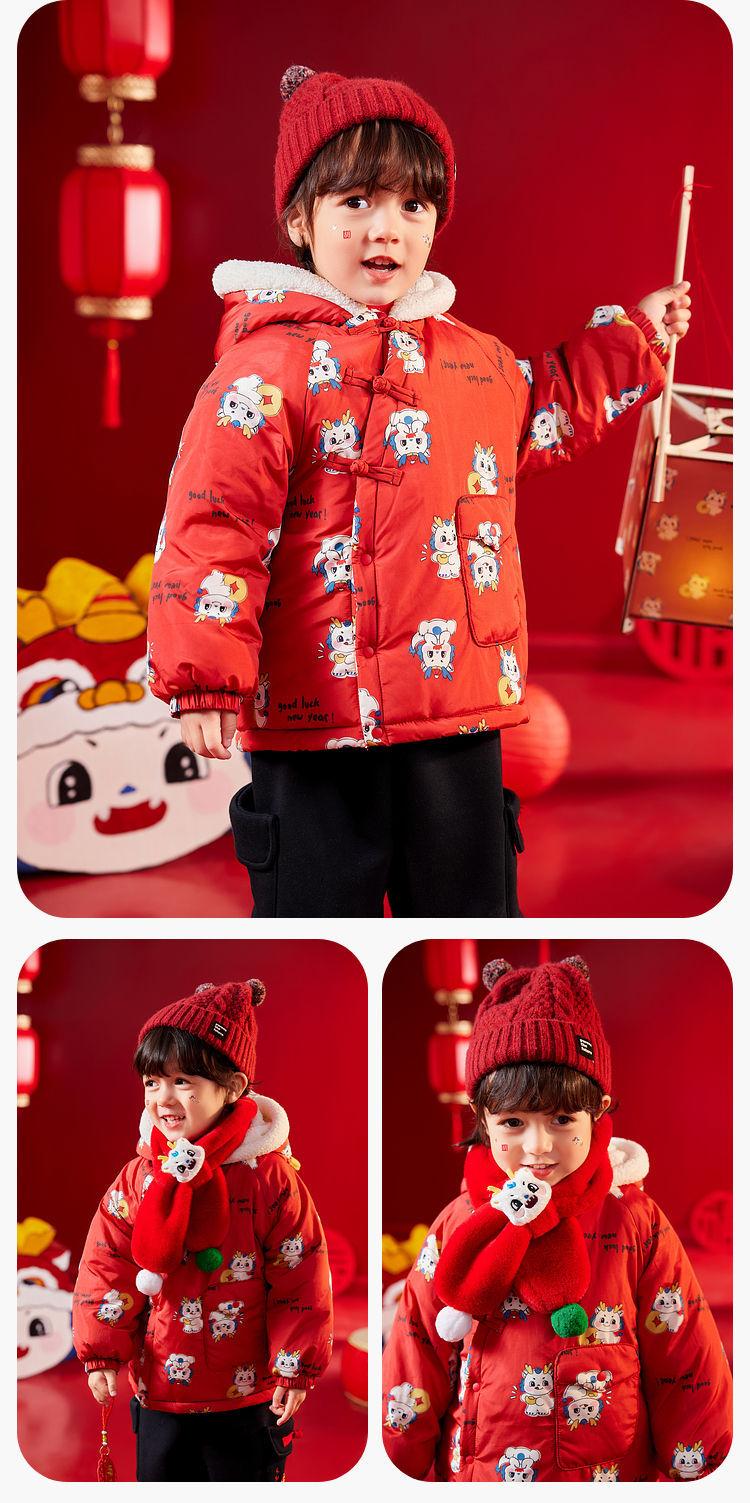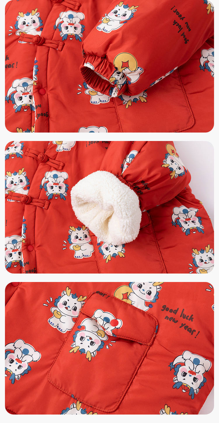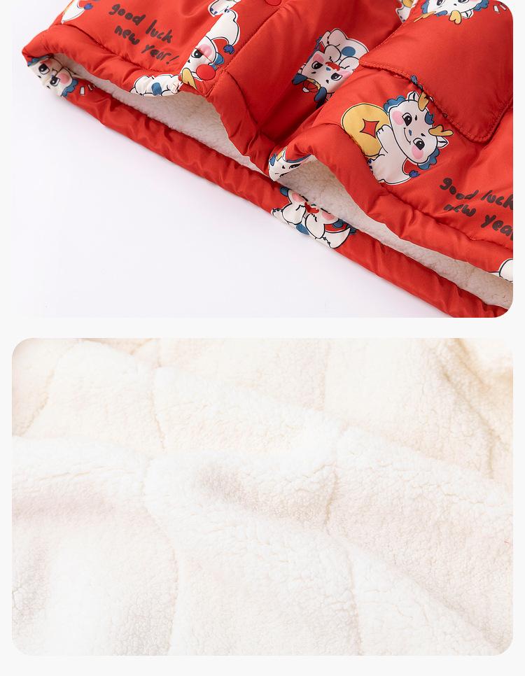 Chaqueta acolchada de algodón para niños Doodle de Año Nuevo, chaqueta acolchada de algodón roja de invierno para niños, ropa de invierno para niñas, chaqueta acolchada de algodón, abrigo para bebé, ropa para niños