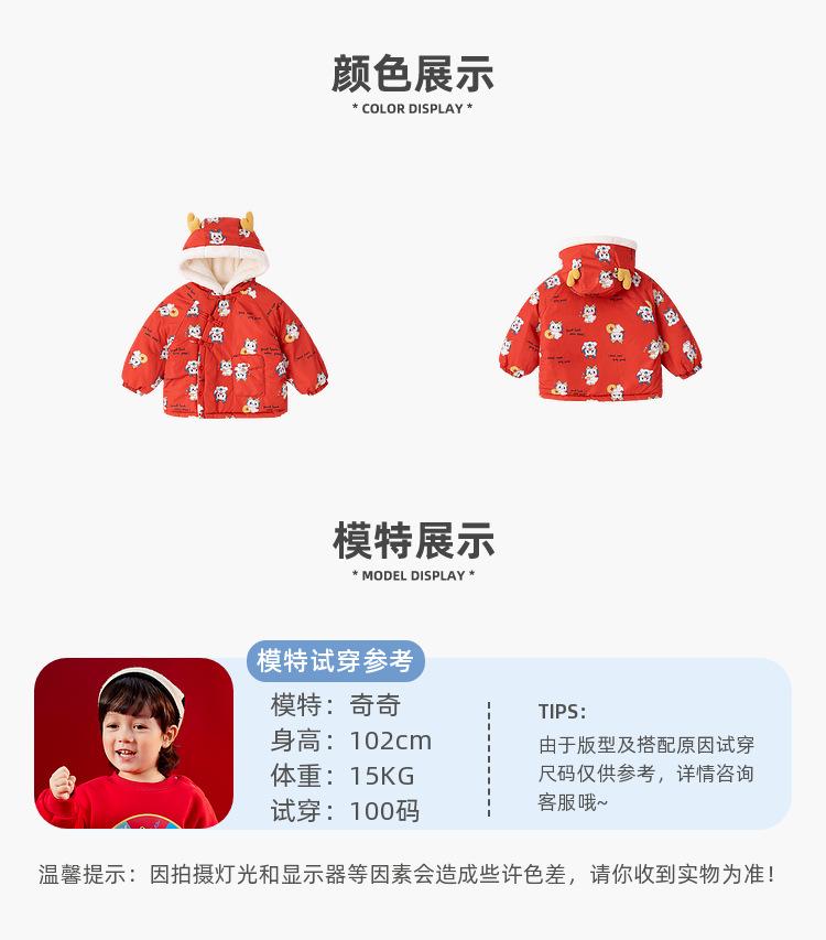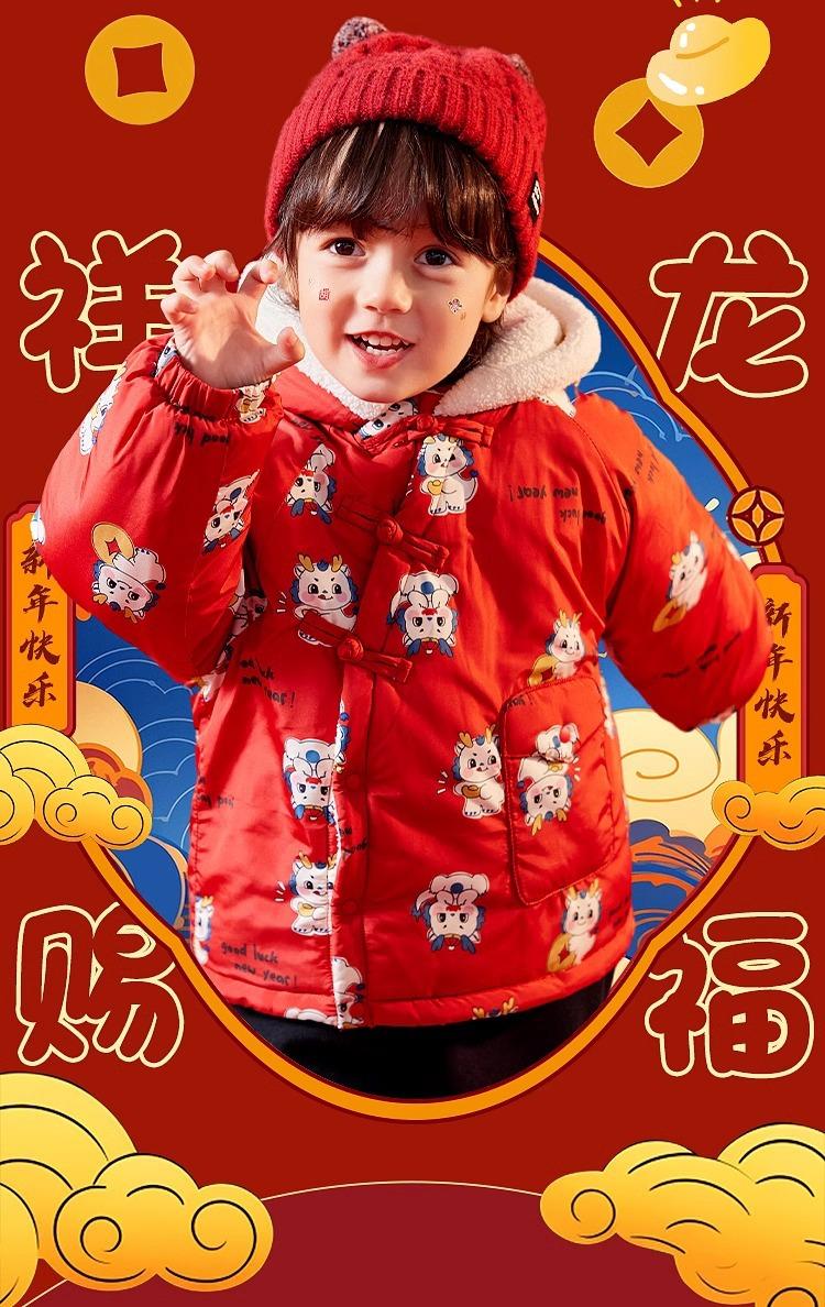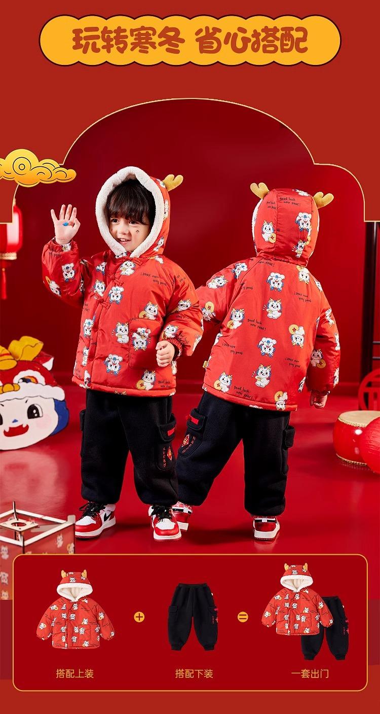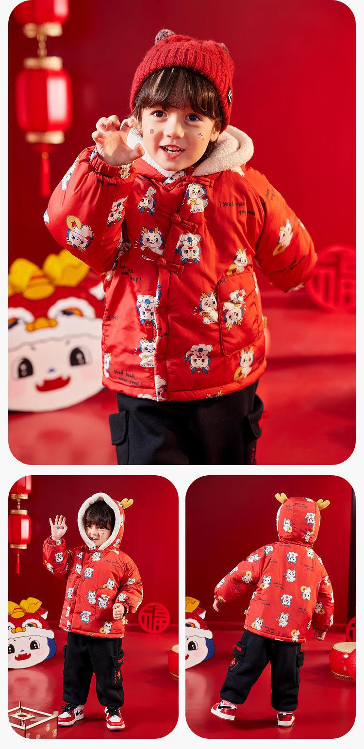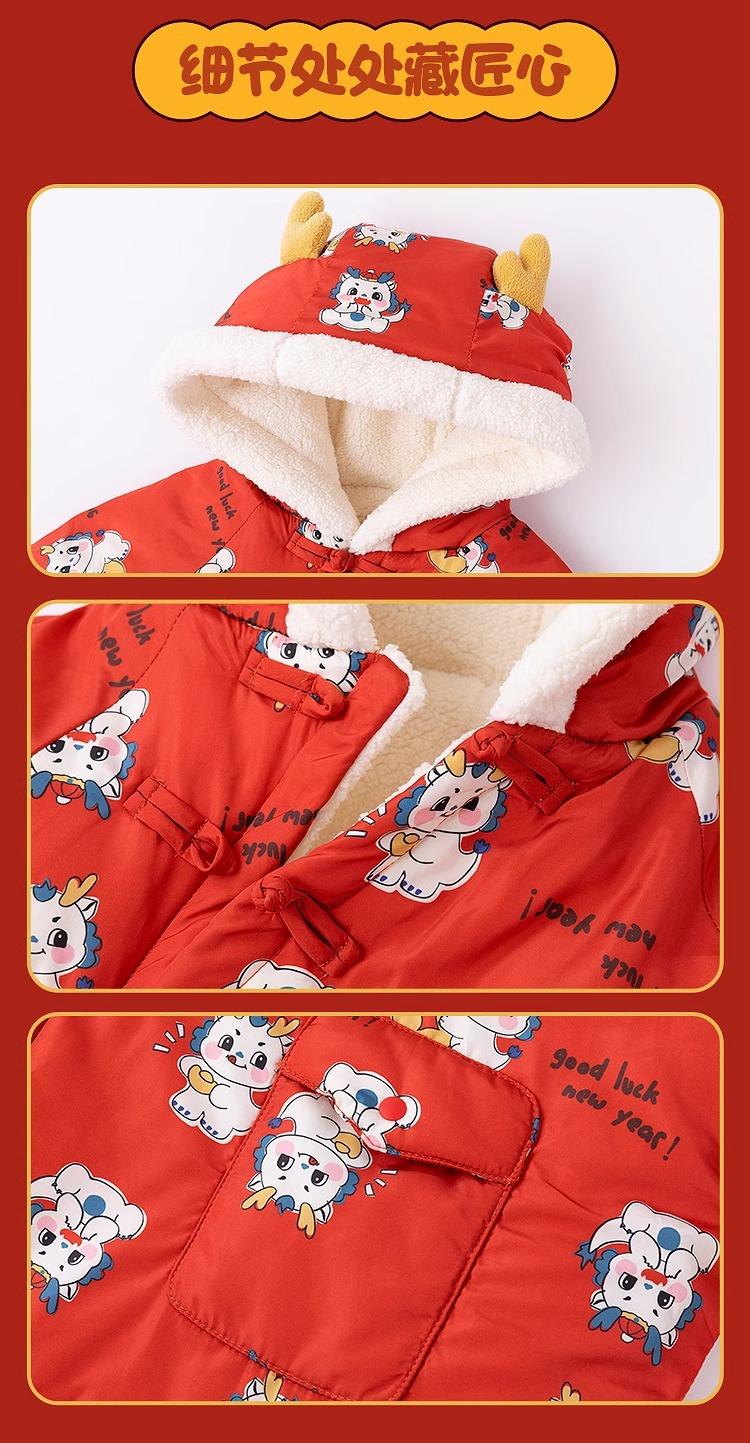 Chaqueta acolchada de algodón para niños Doodle de Año Nuevo, chaqueta acolchada de algodón roja de invierno para niños, ropa de invierno para niñas, chaqueta acolchada de algodón, abrigo para bebé, ropa para niños