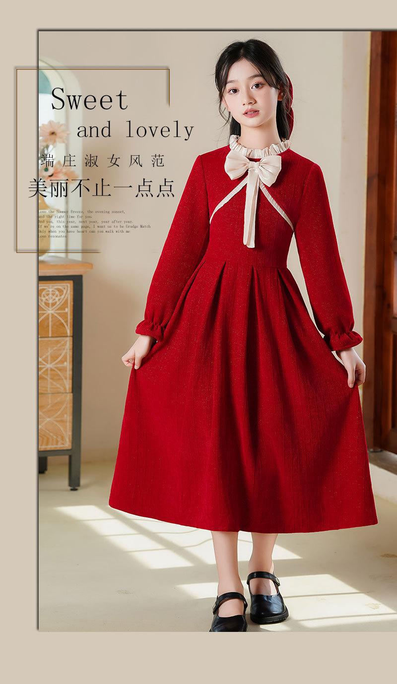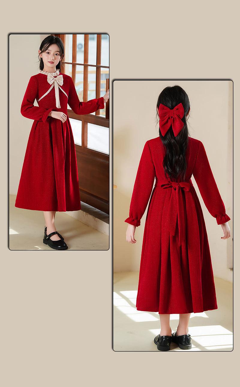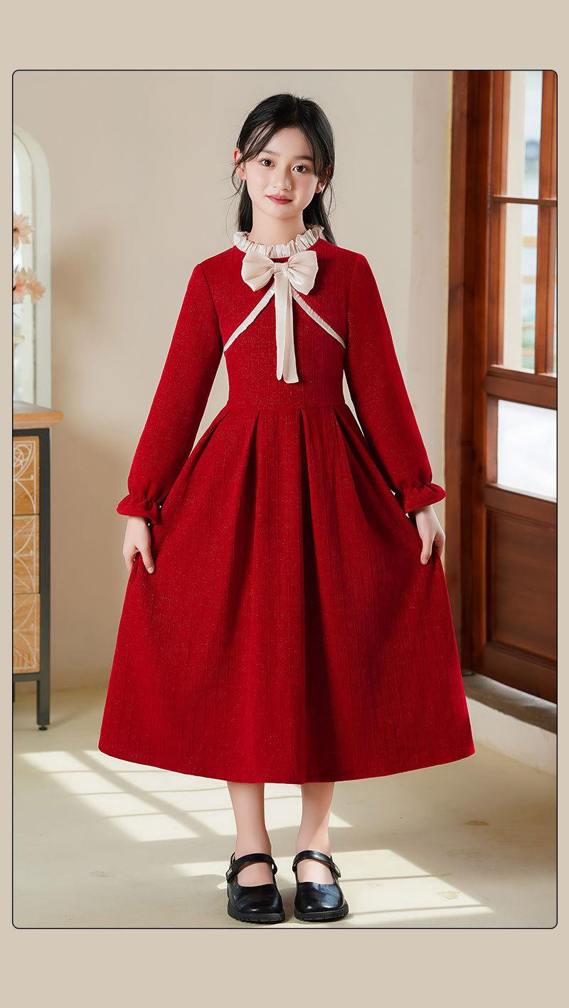 Vestido de princesa con lazo para niña, elegante, de otoño e invierno, con falda roja.