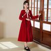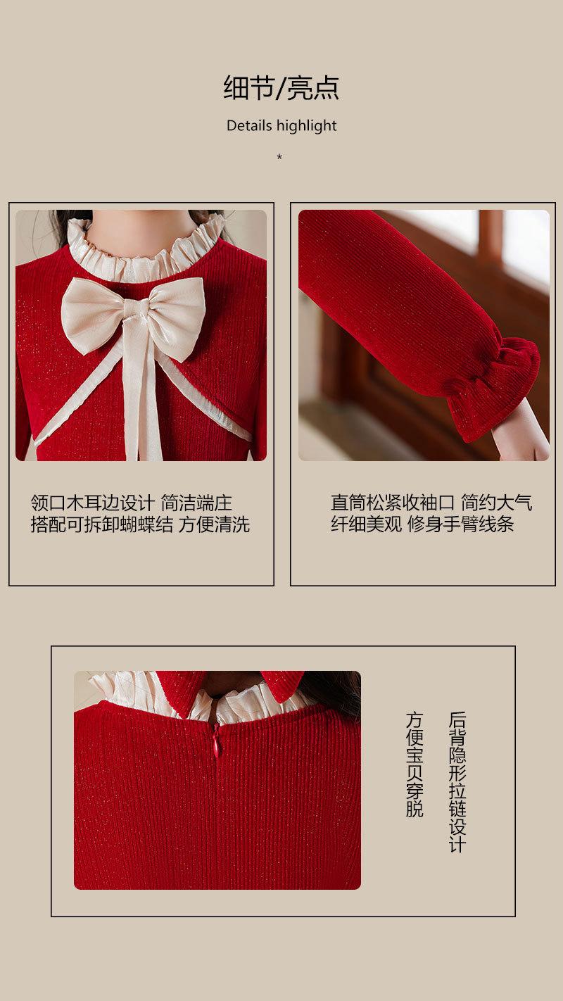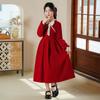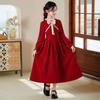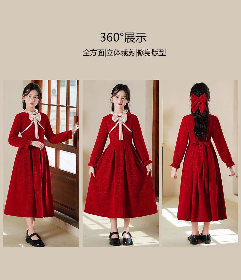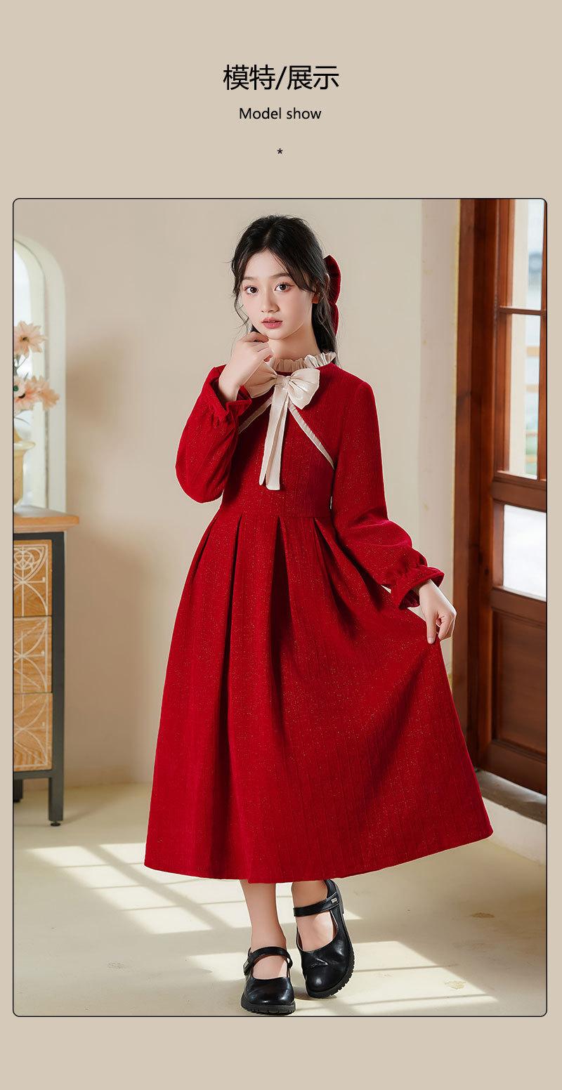 Vestido de princesa con lazo para niña, elegante, de otoño e invierno, con falda roja.