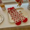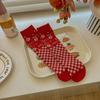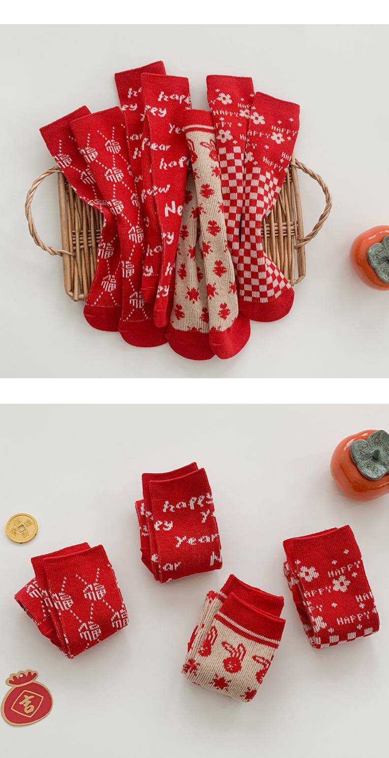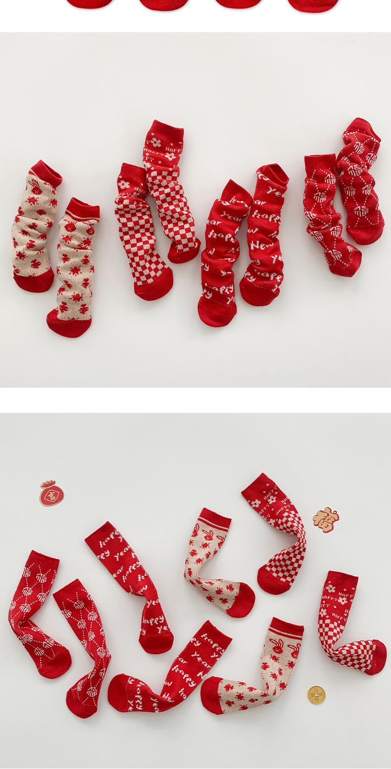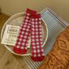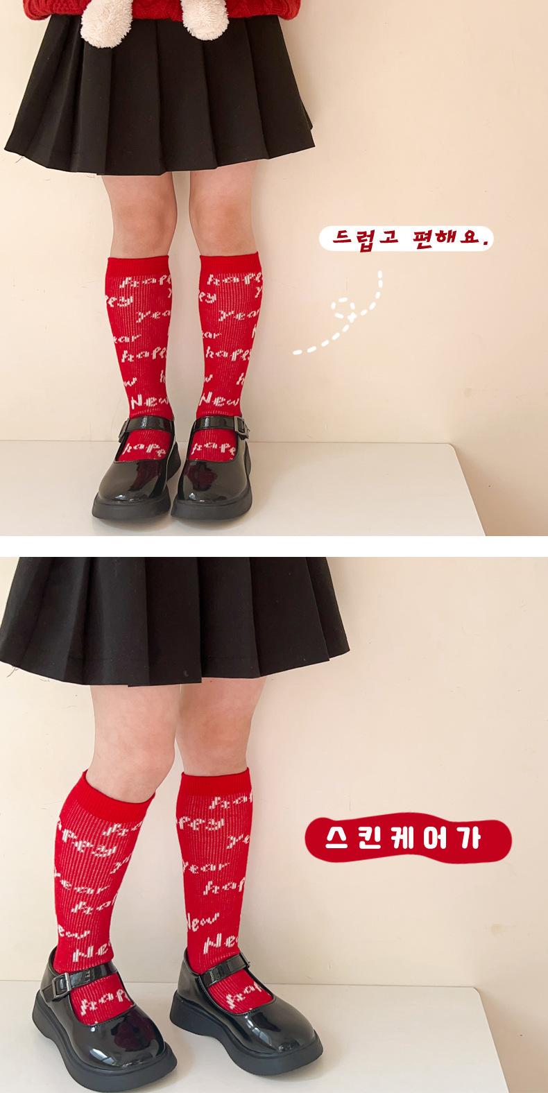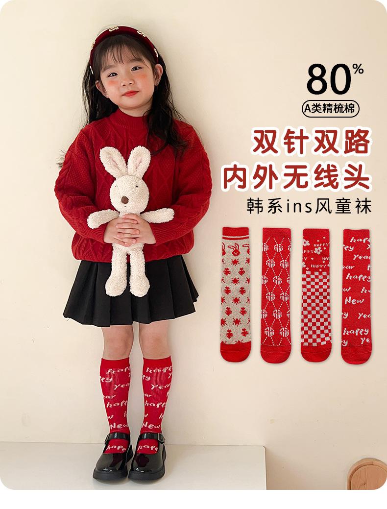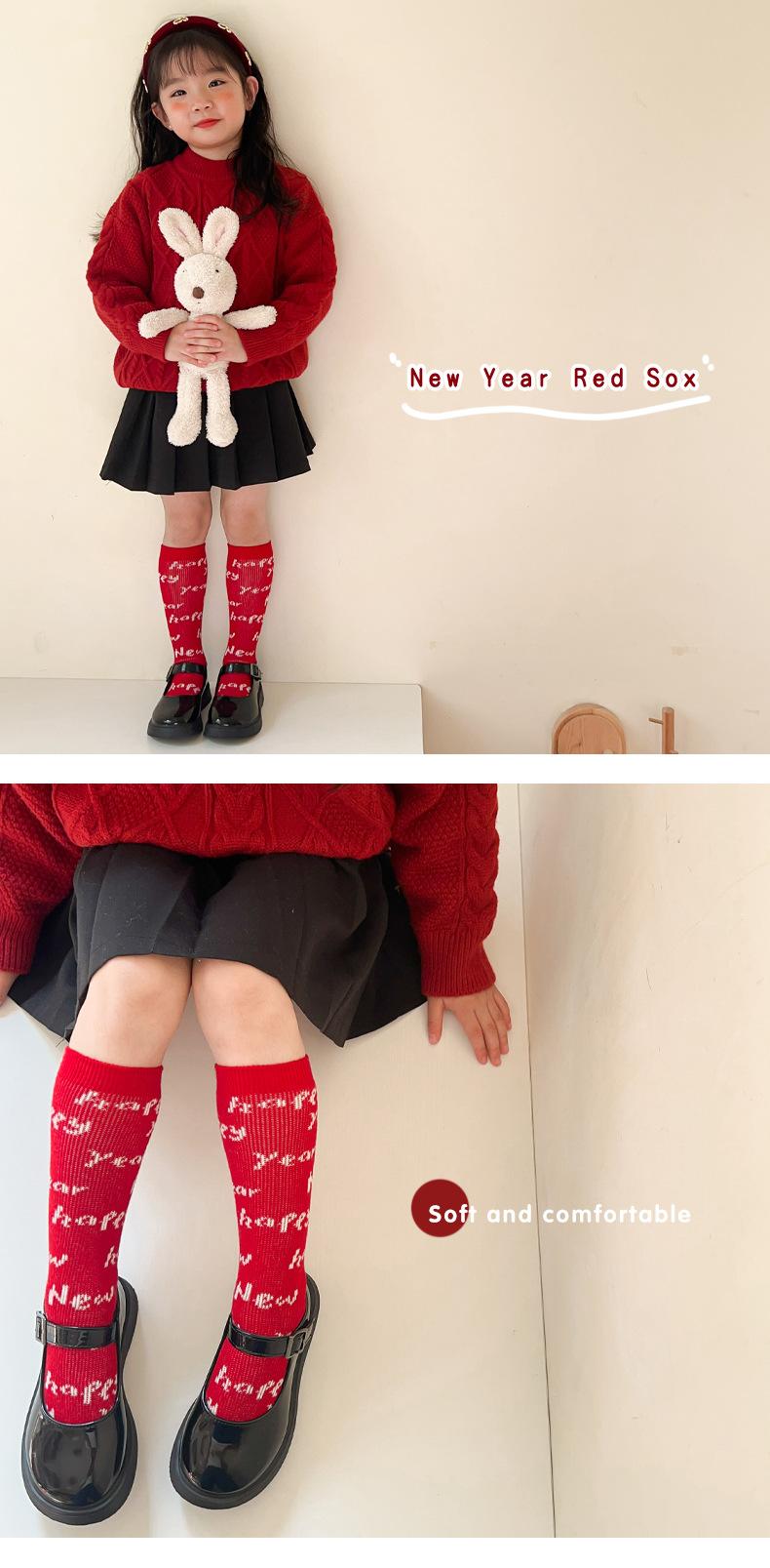 Calcetines para niñas 2024 otoño e invierno calcetines de doble aguja doble tubo calcetines de felpa rojos para niños niños pequeños calcetines para bebés al por mayor