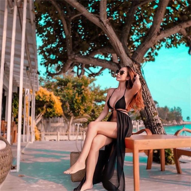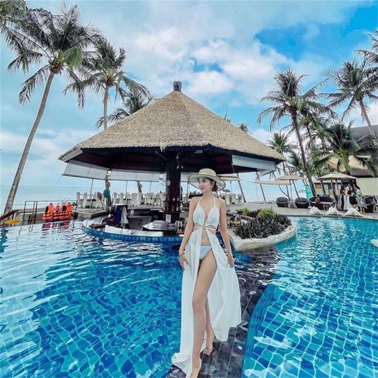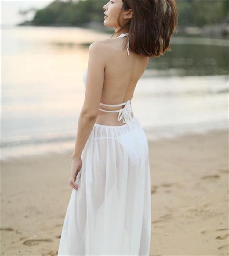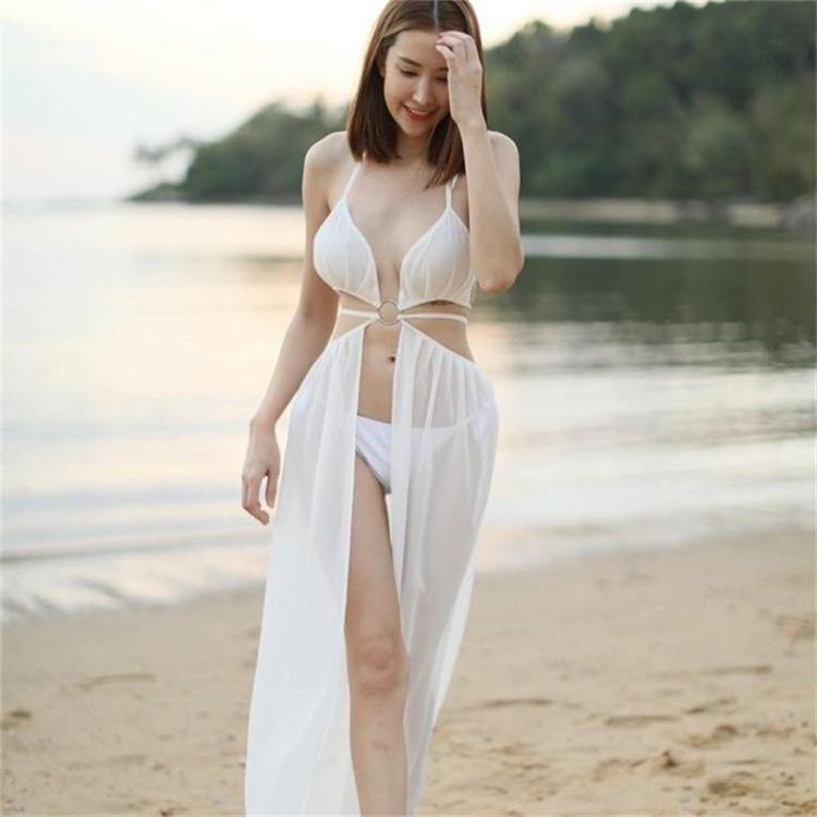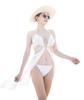 Bikini blanco sexy sin mangas con abertura y almohadilla para el pecho, traje de baño elegante de hilo largo con escote pequeño para mujer