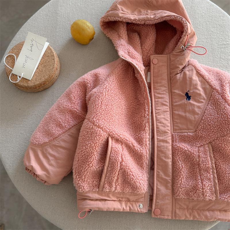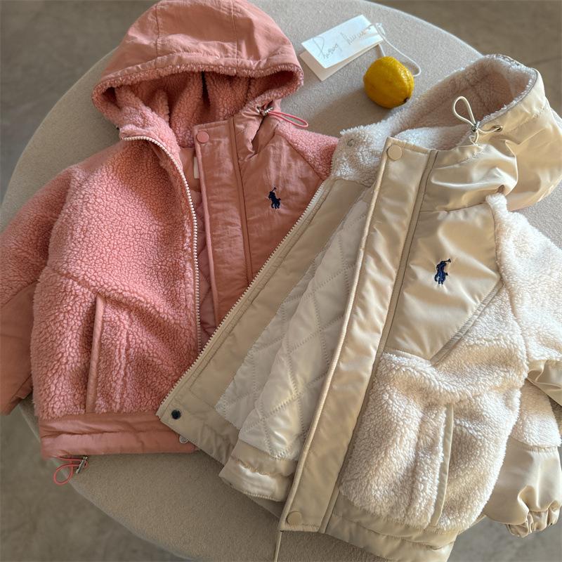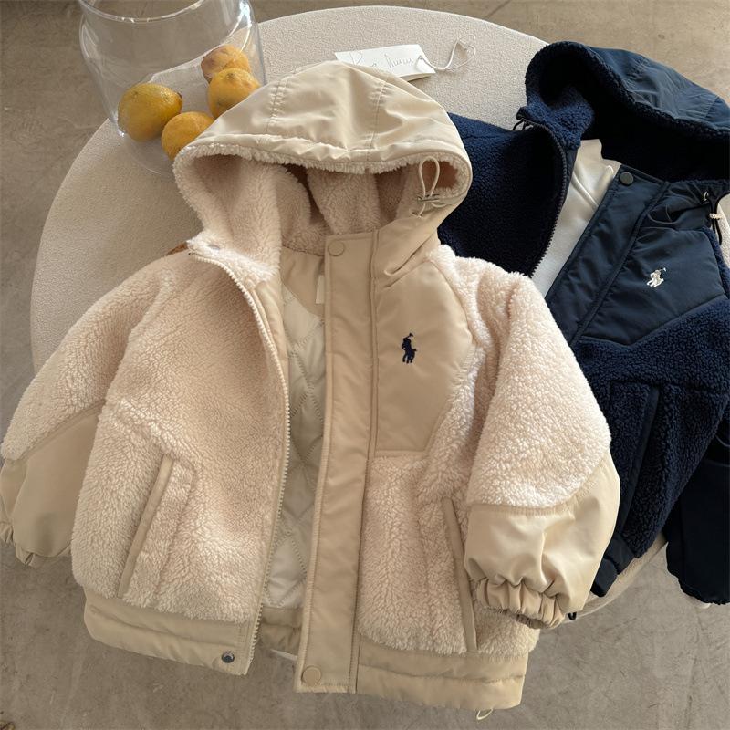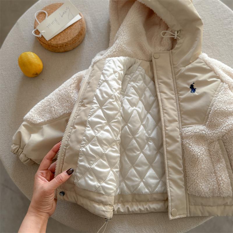 Chaqueta acolchada para niños Little Bear 25 Otoño e Invierno Patchwork de lana de cordero con capucha Chaqueta de algodón para niños y niñas Top peludo para bebé