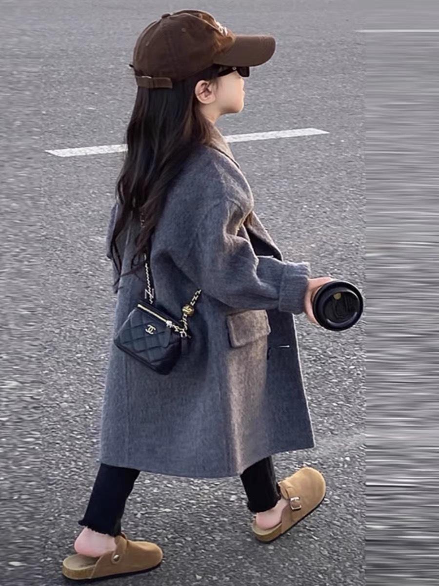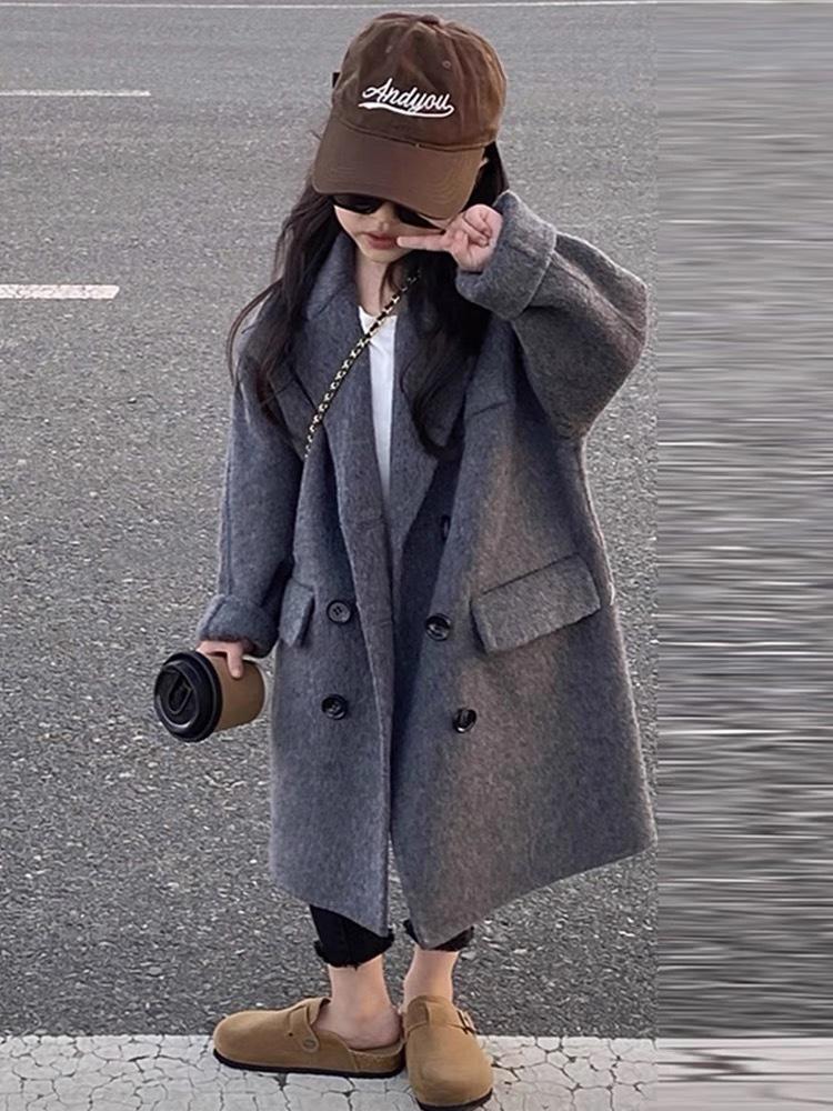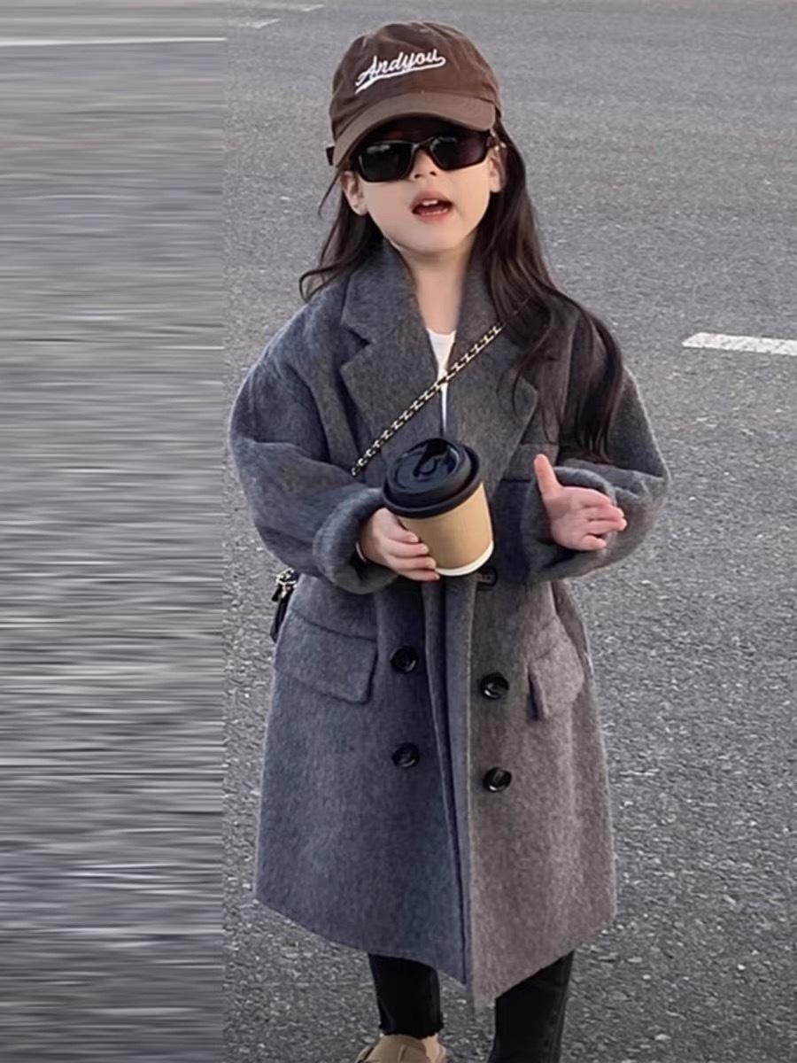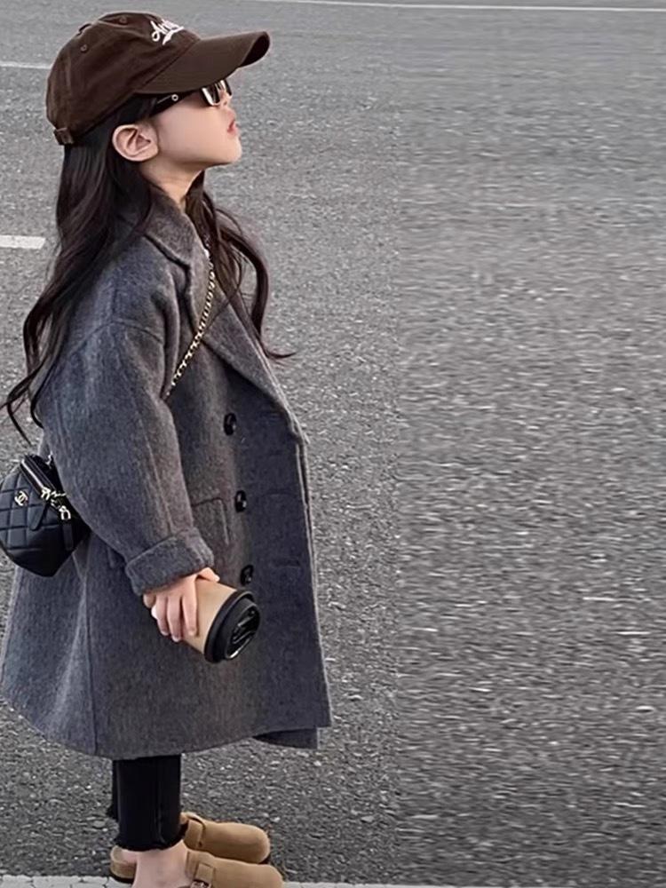 Abrigo de Lana de Largo Medio a la Moda Estilo Coreano Abrigo de Lana Cálido de Largo Medio para Niños Abrigo de Lana con Cuello para Niños y Niñas Top de Otoño e Invierno