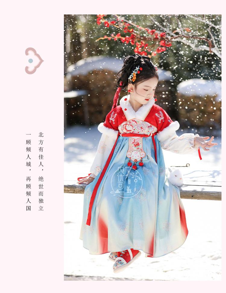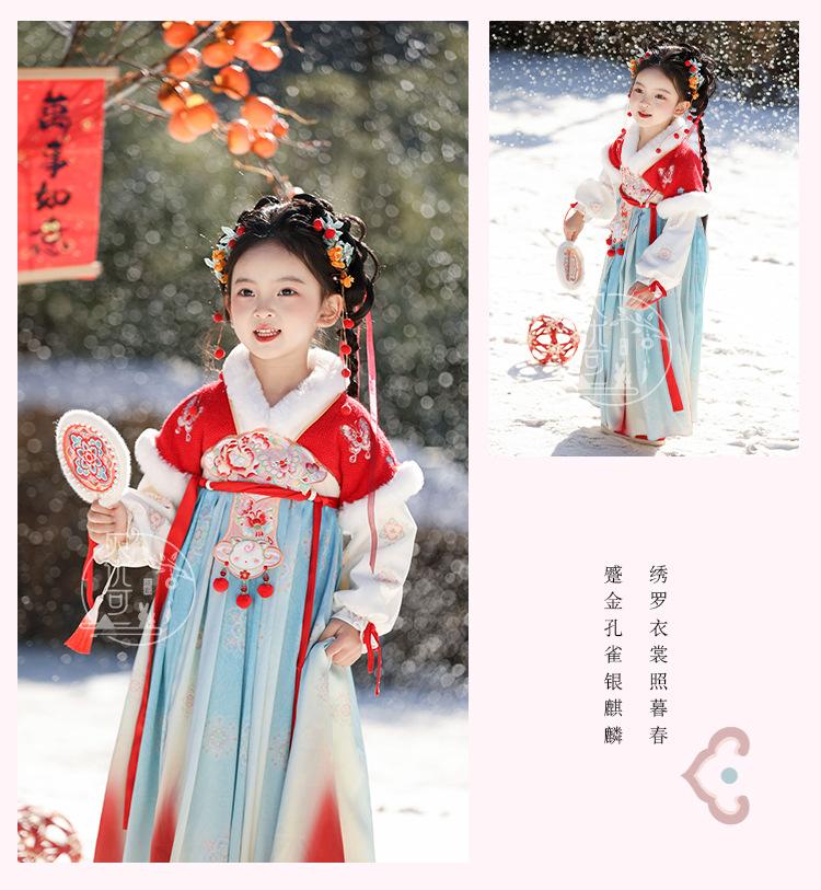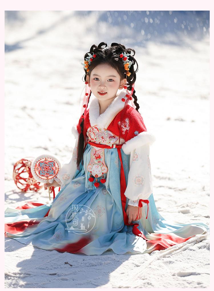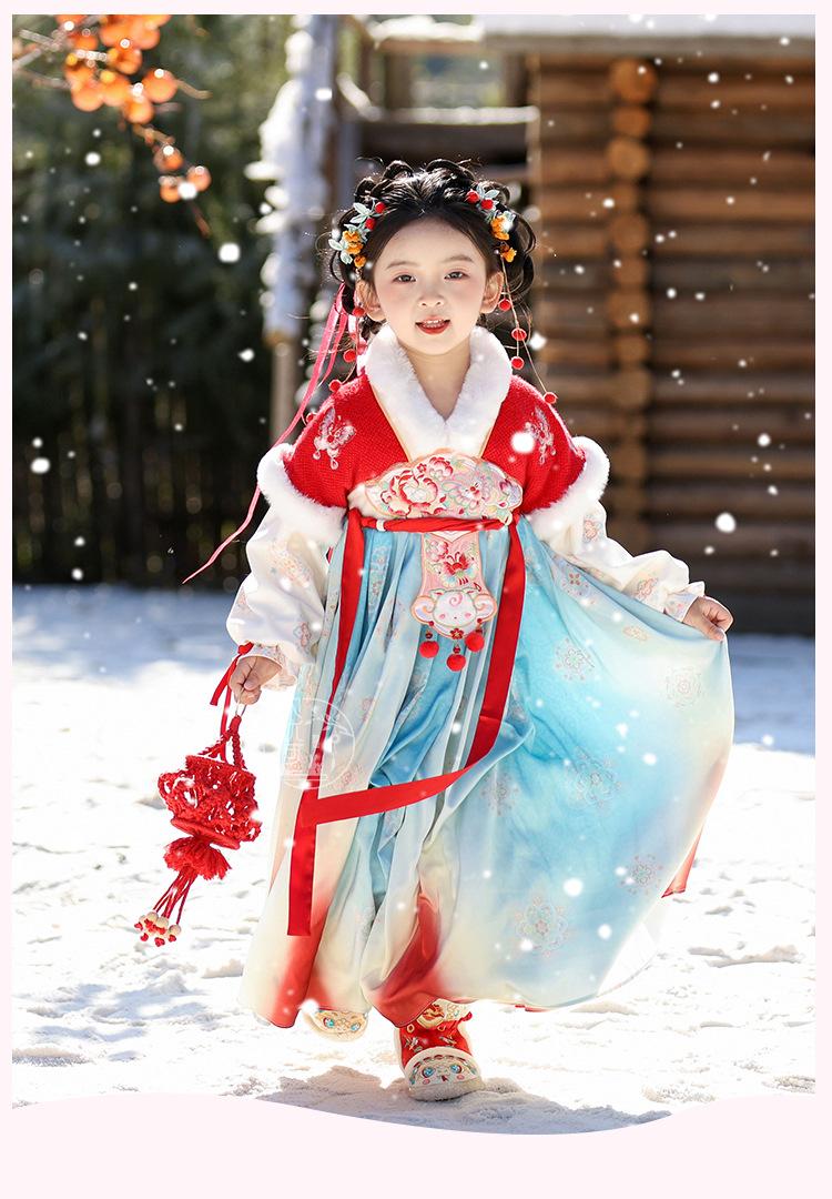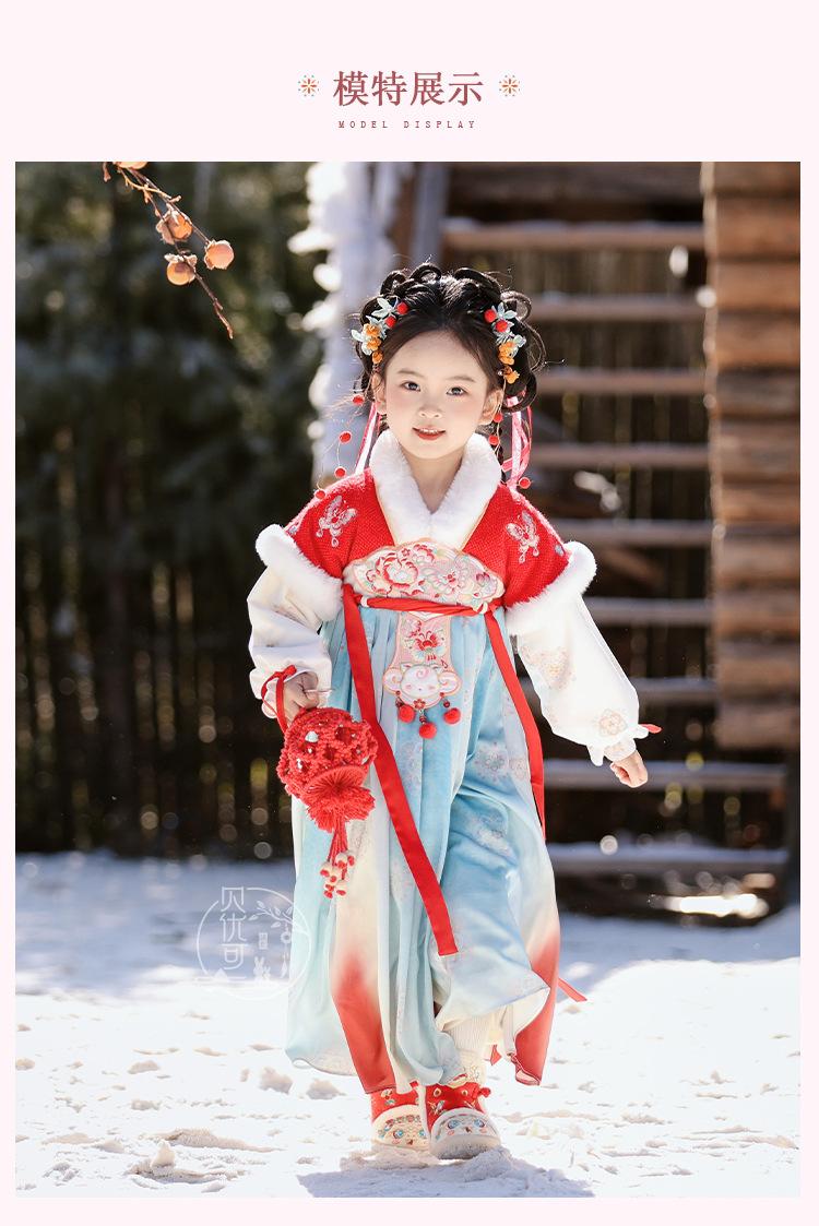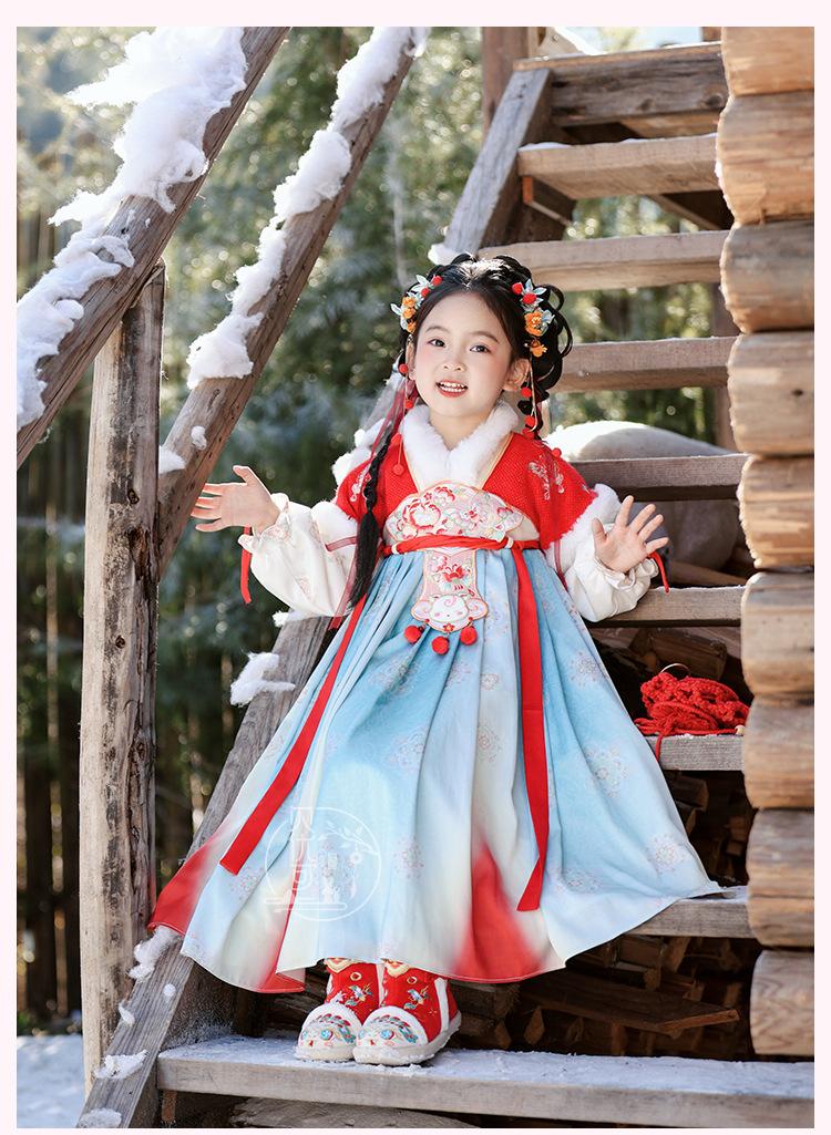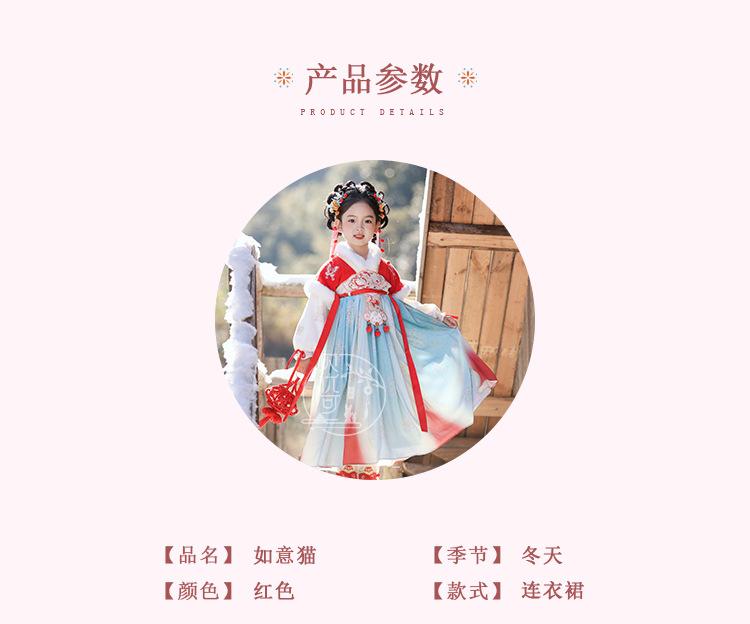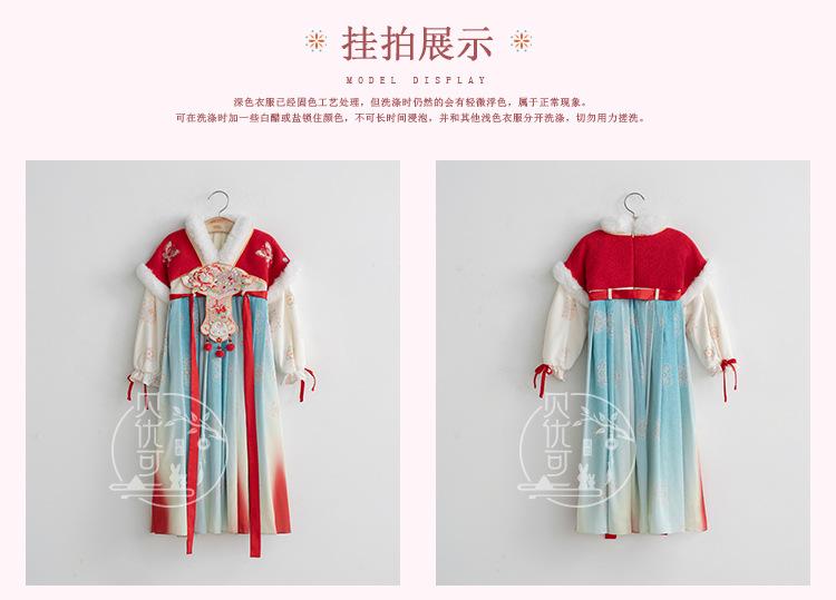 Vestido de Invierno Nuevo para Niñas 2024 con Forro Polar Grueso Hanfu Estilo Antiguo Estilo Chino Antiguo Servicio de Año Nuevo Original