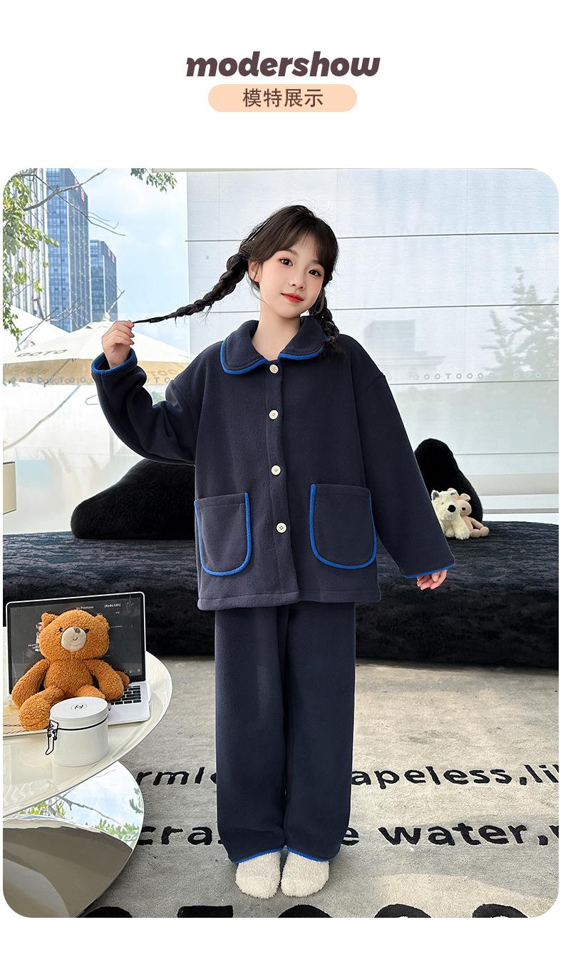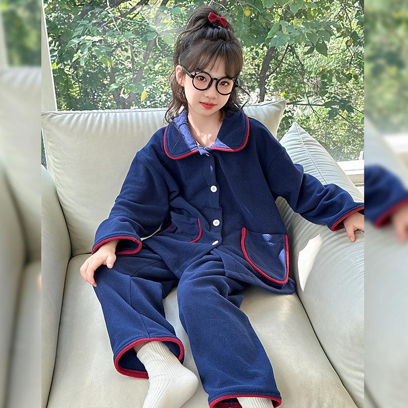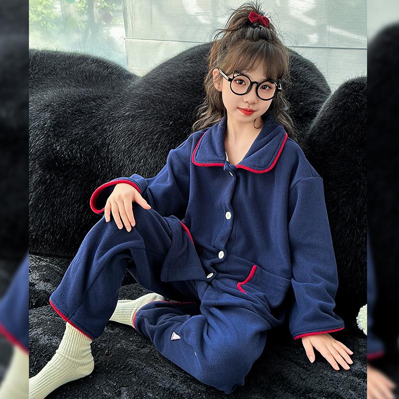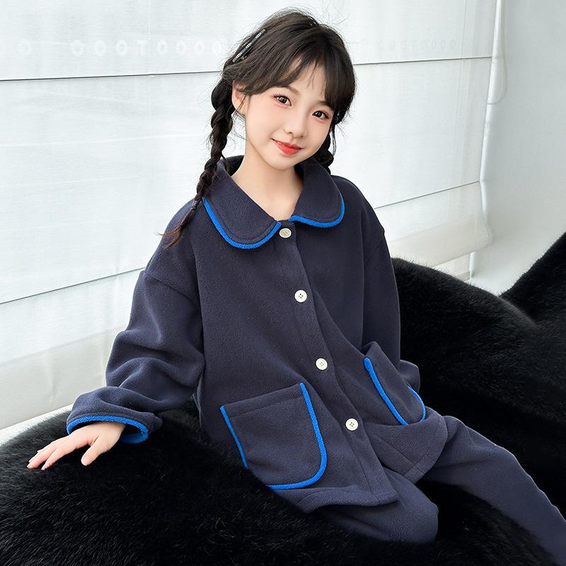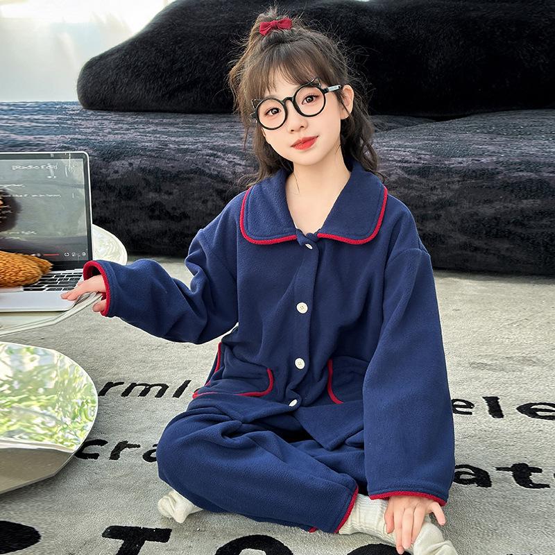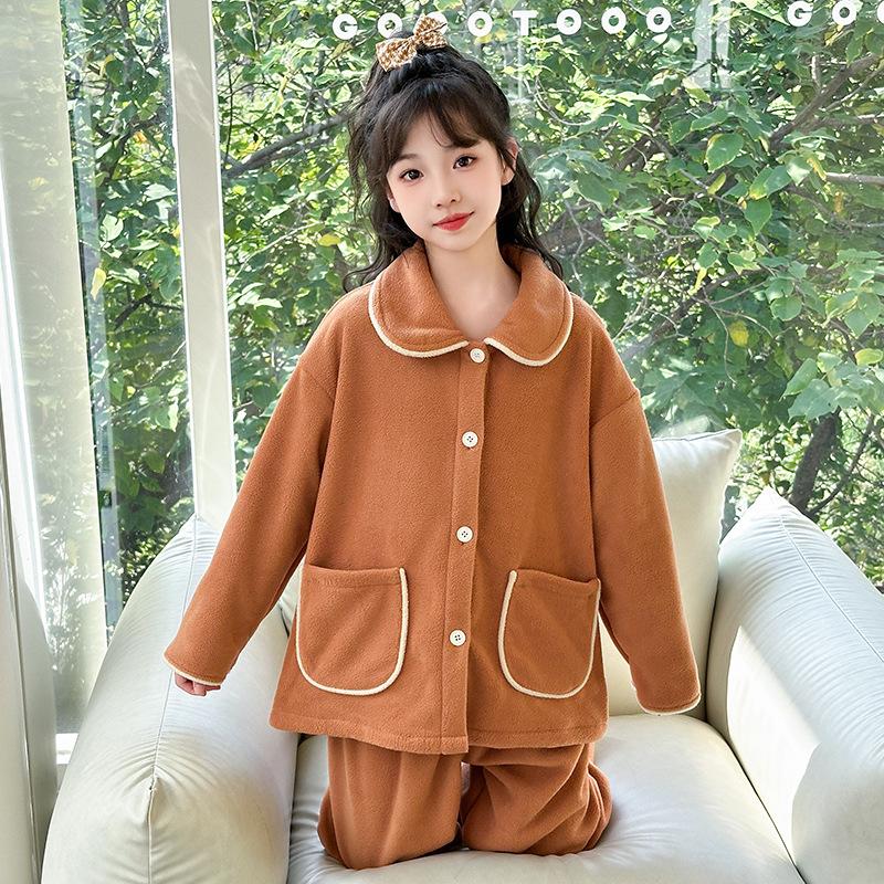 Pijamas de invierno para niñas, pijamas de forro polar, nuevos trajes de forro polar de doble cara para niñas.