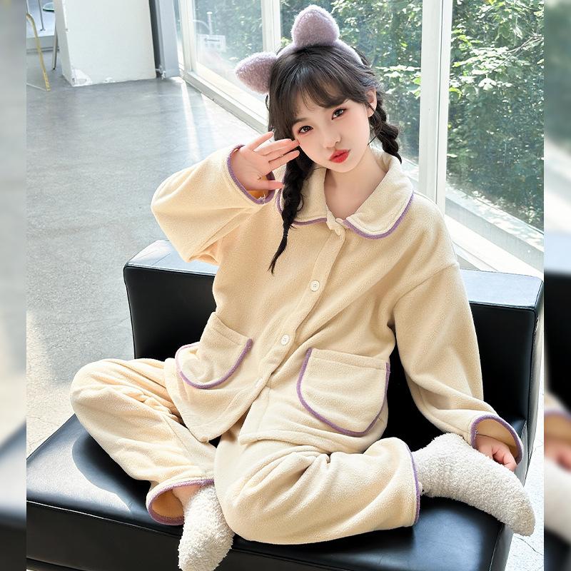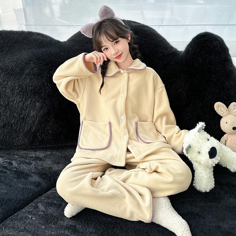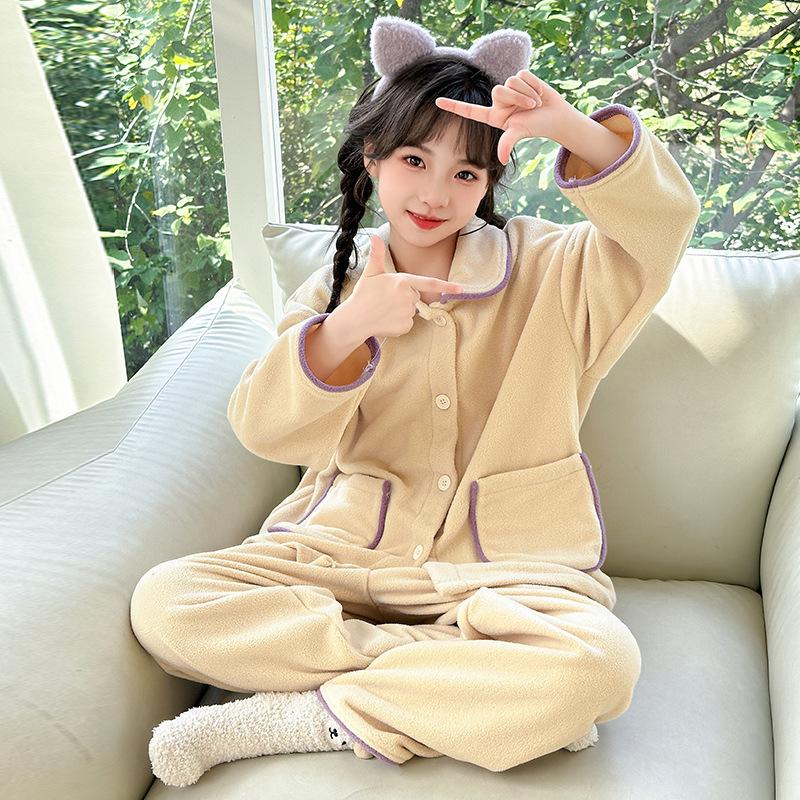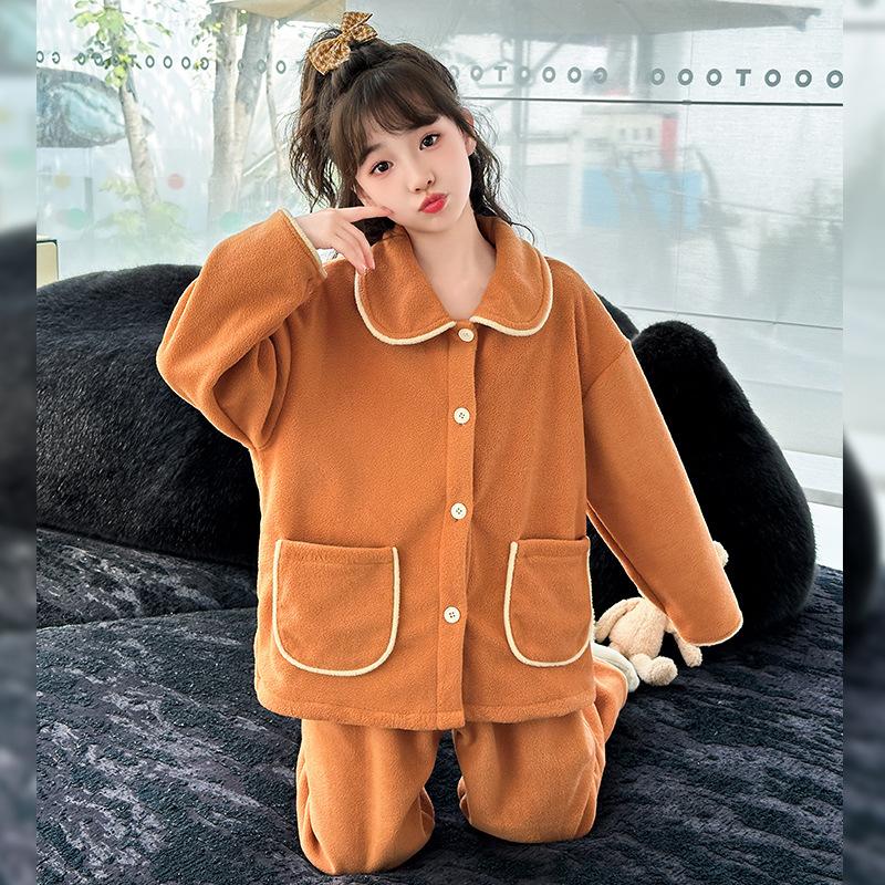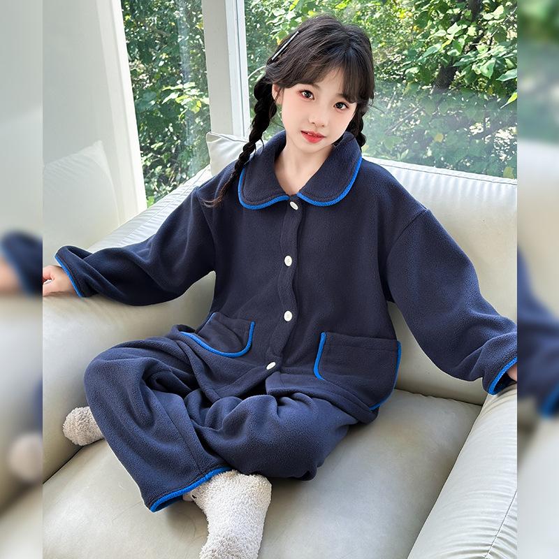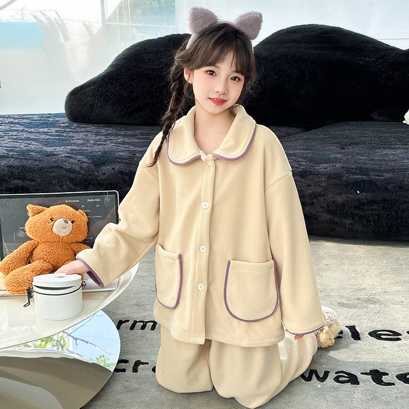 Pijamas de invierno para niñas, pijamas de forro polar, nuevos trajes de forro polar de doble cara para niñas.
