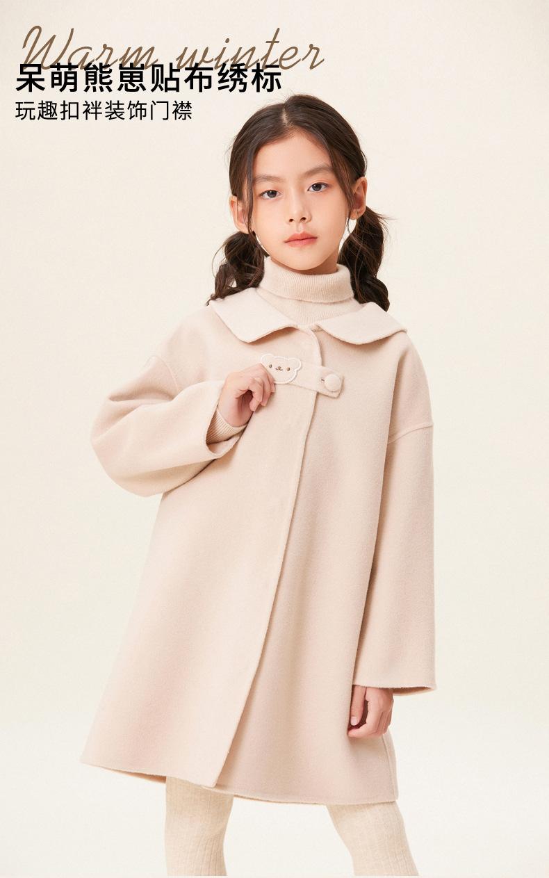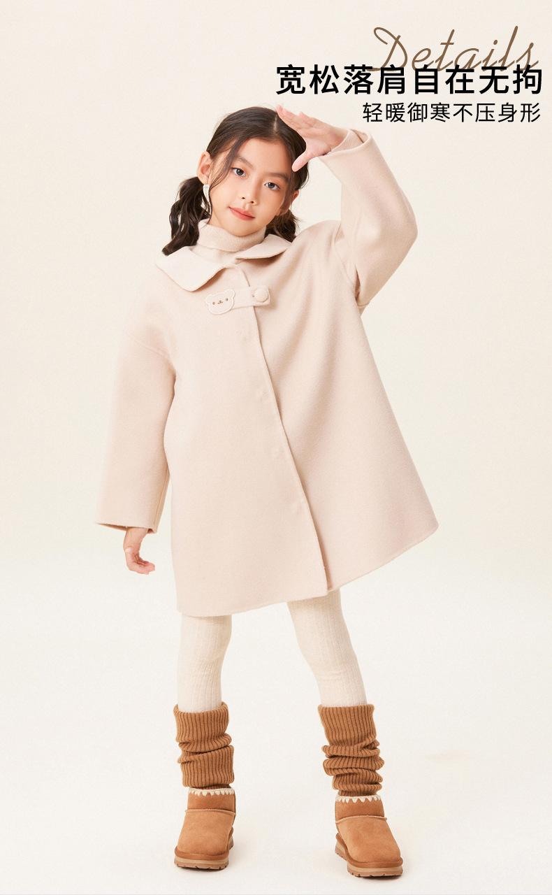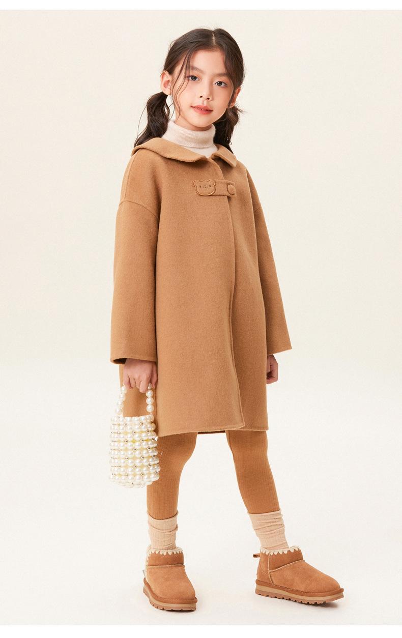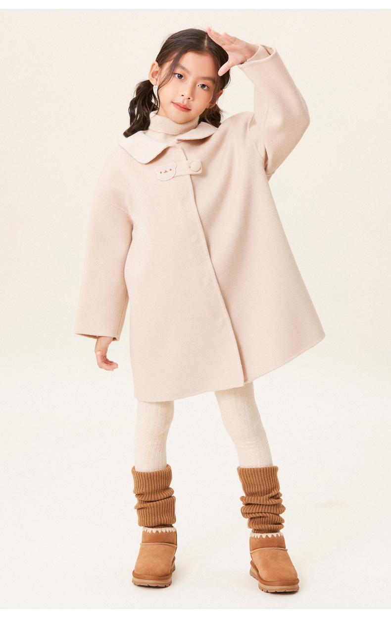 Abrigo de Lana para Niñas Nuevo Estilo Coreano Otoño e Invierno Abrigo de Lana de Moda Princesa de Largo Medio para Niños Grandes