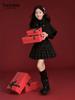 Traje de invierno para niña de Amoy Town [cuadro retro] [dulce, fresco, pequeña fragancia] chal de lana, falda plisada, conjunto de dos piezas