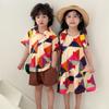 Traje de camisa de verano para niños, estilo festivo para niños, 2025, nuevo vestido de estilo occidental para niñas, vestido de verano para hermanos y hermanas.