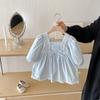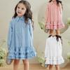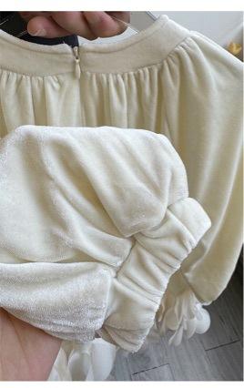 Vestido de niña Primavera 2025, estilo occidental, con costuras de terciopelo y mangas largas, estilo princesa.