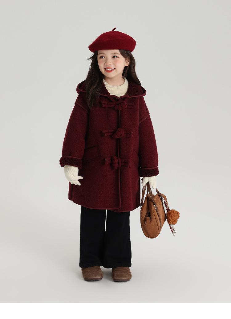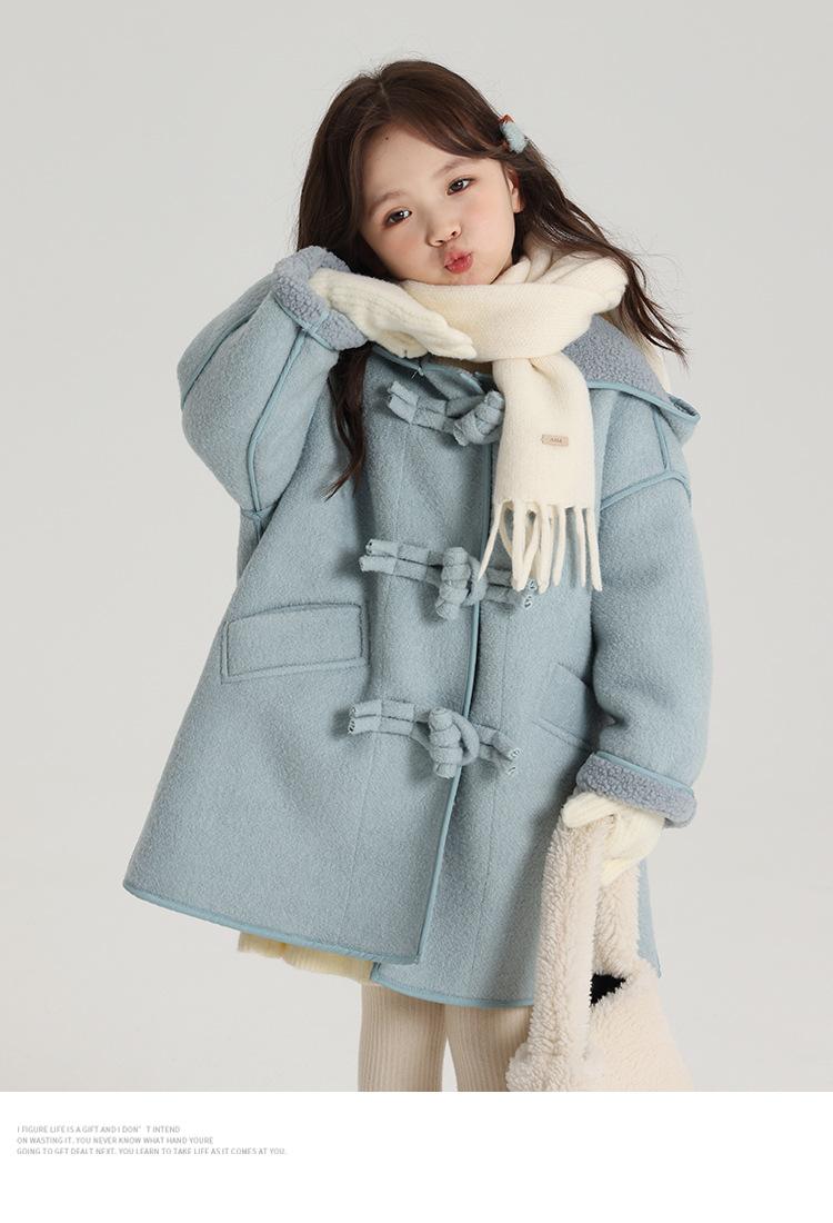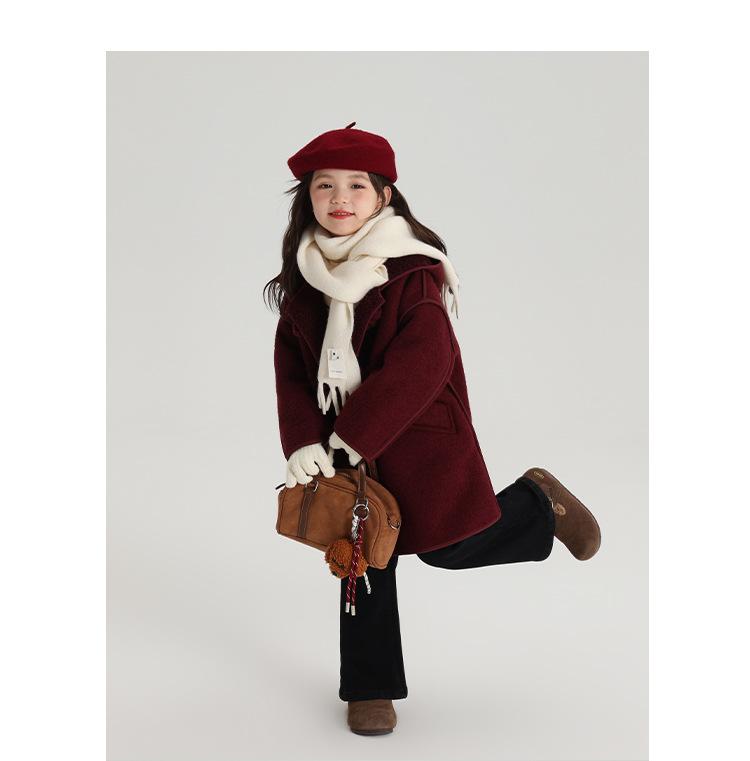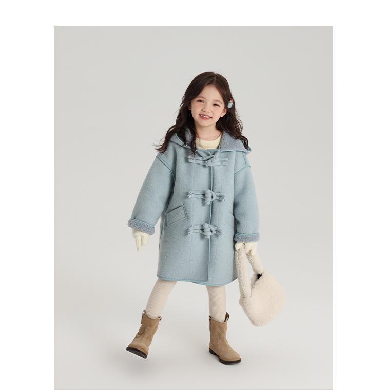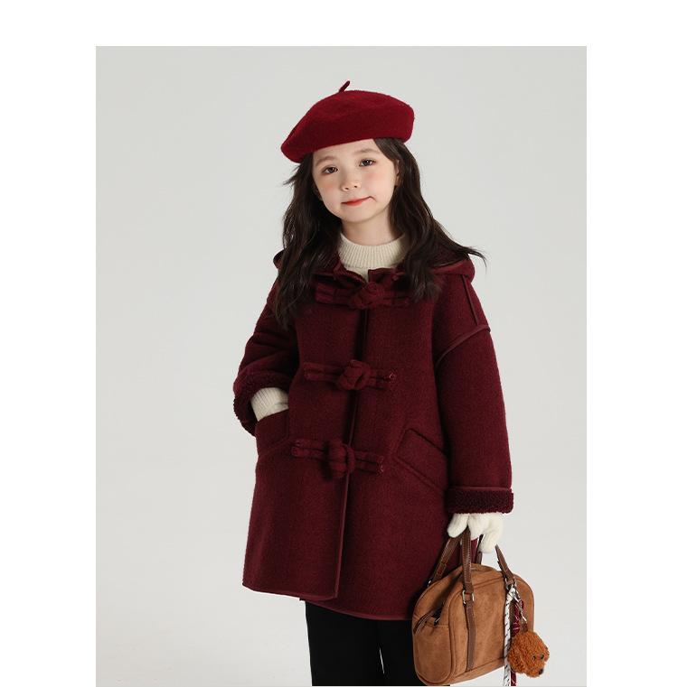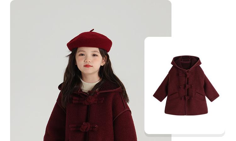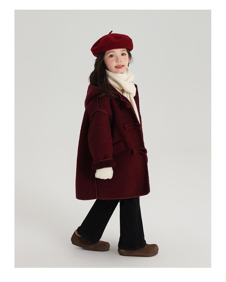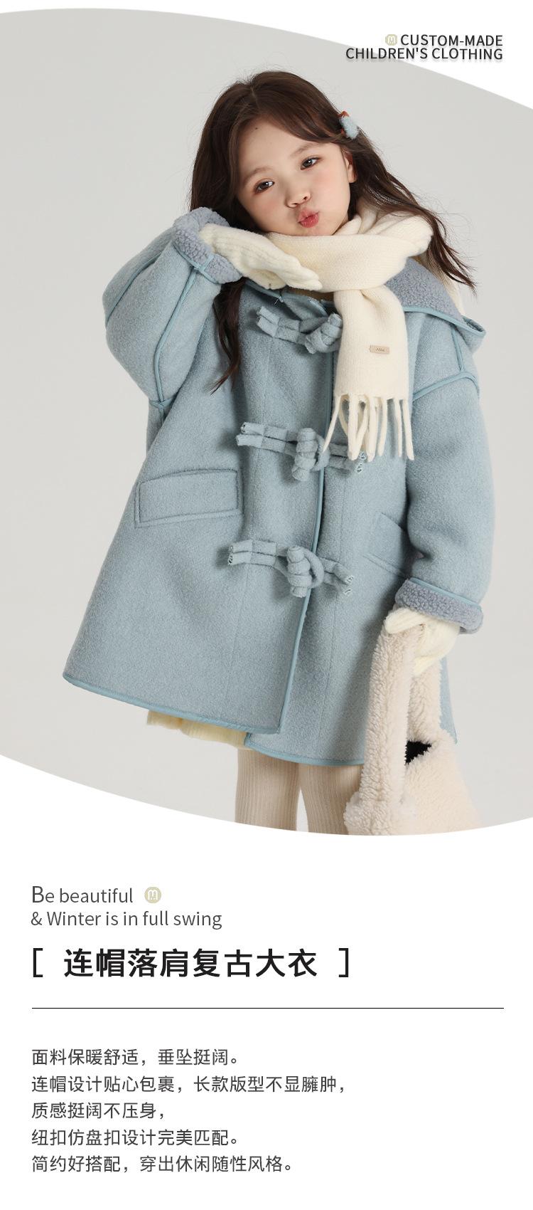 Abrigo de Otoño e Invierno 2024 Nuevo Estilo Coreano Estilo Occidental Abrigo para Niñas con Capucha Hombro Retro Abrigo de Lana para Mujer