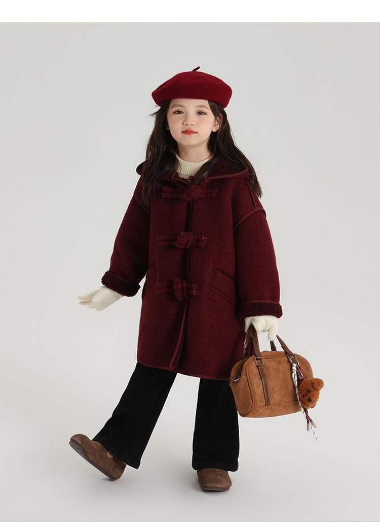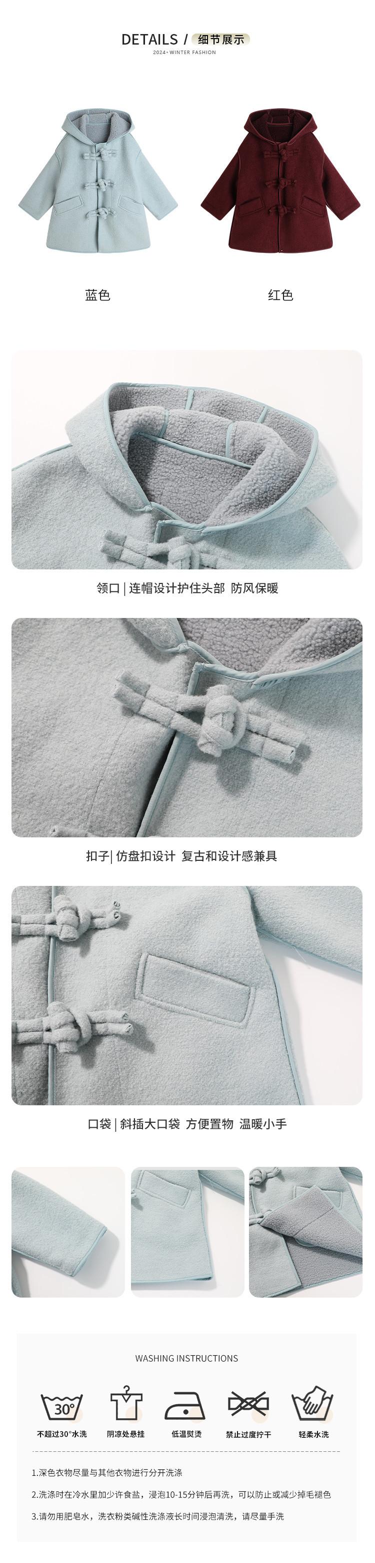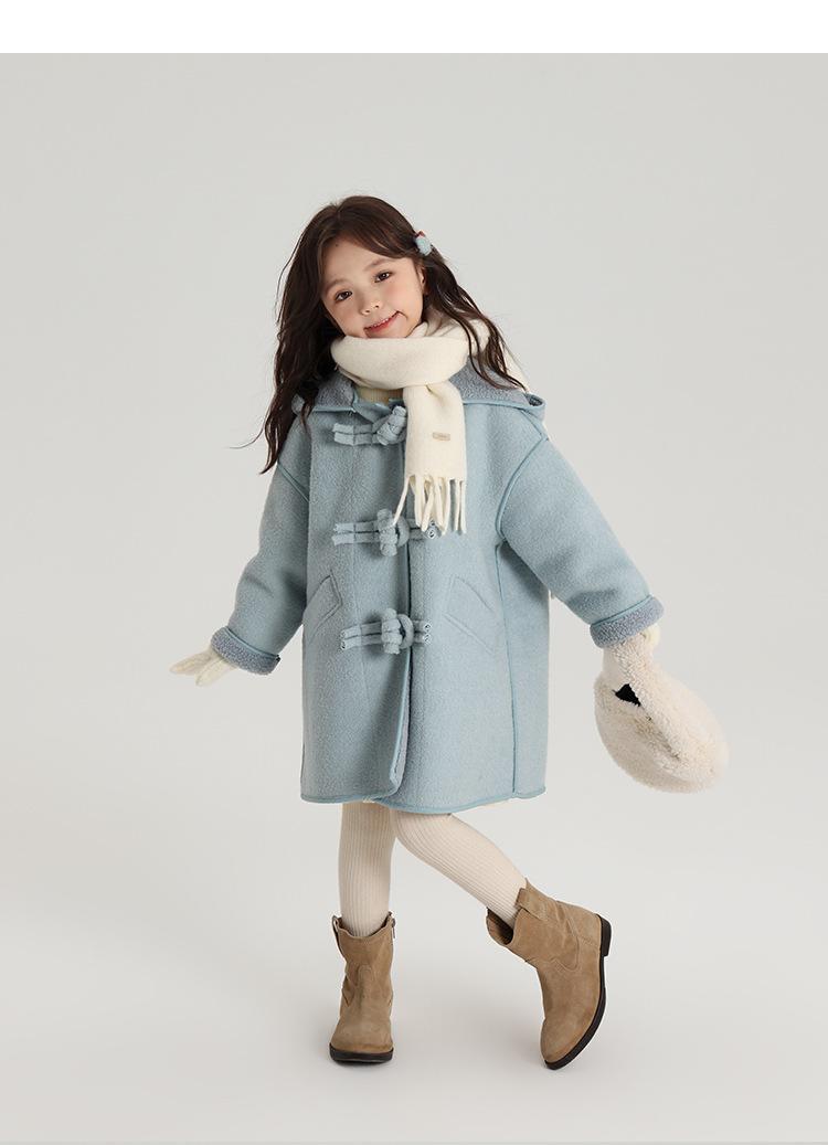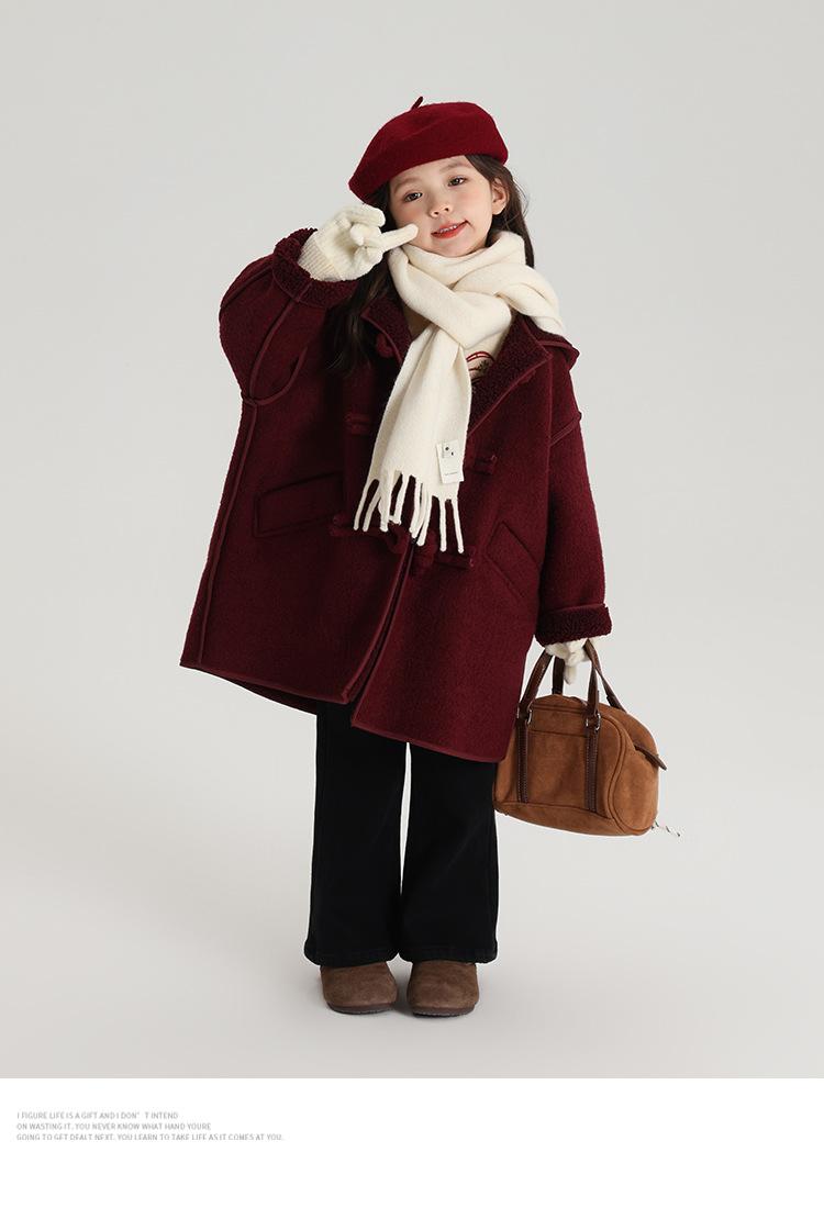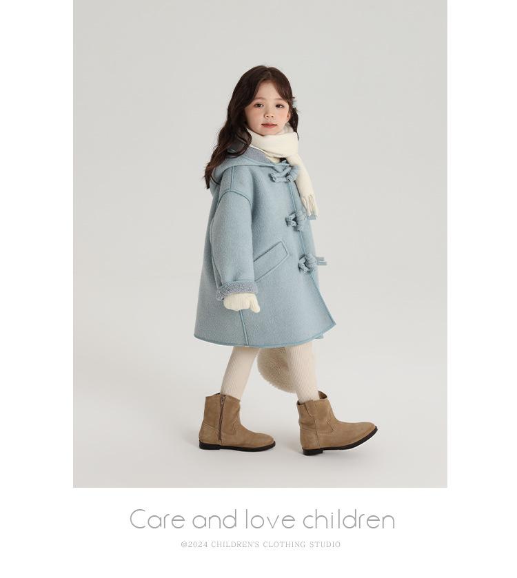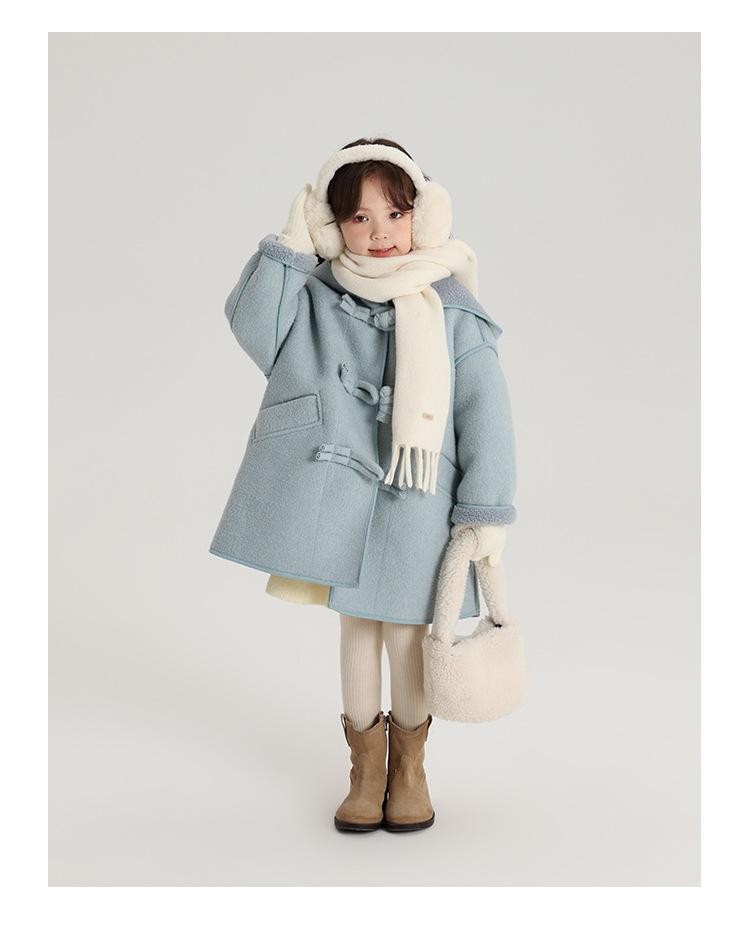 Abrigo de Otoño e Invierno 2024 Nuevo Estilo Coreano Estilo Occidental Abrigo para Niñas con Capucha Hombro Retro Abrigo de Lana para Mujer