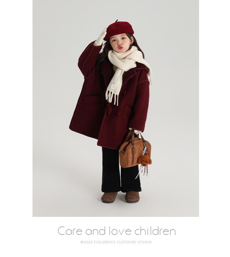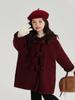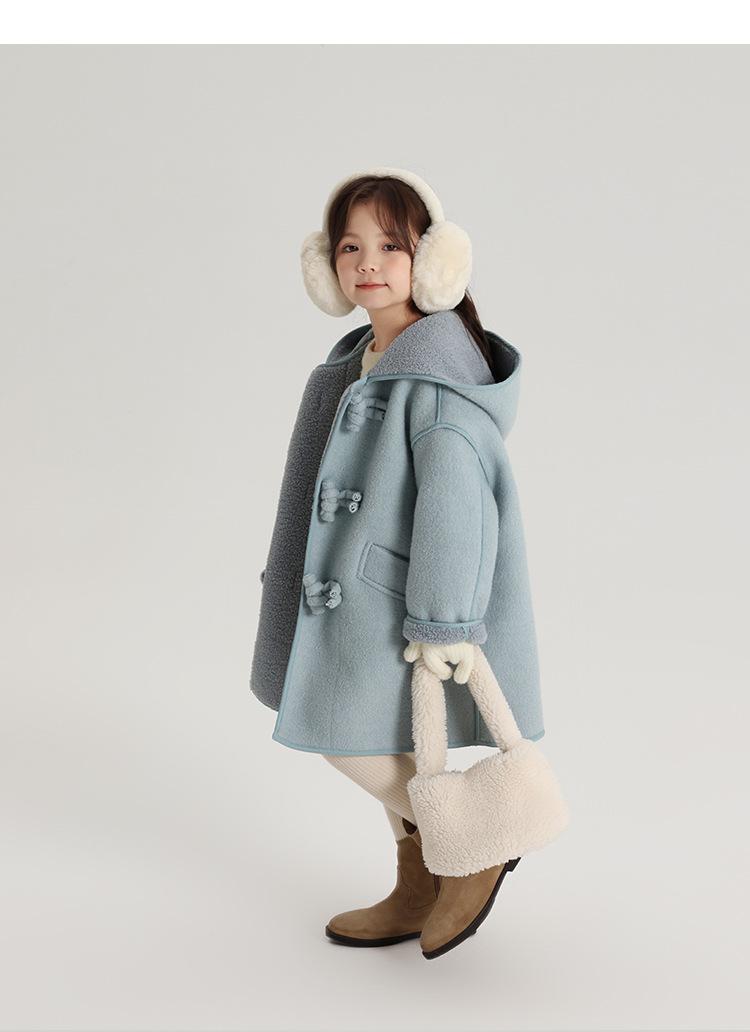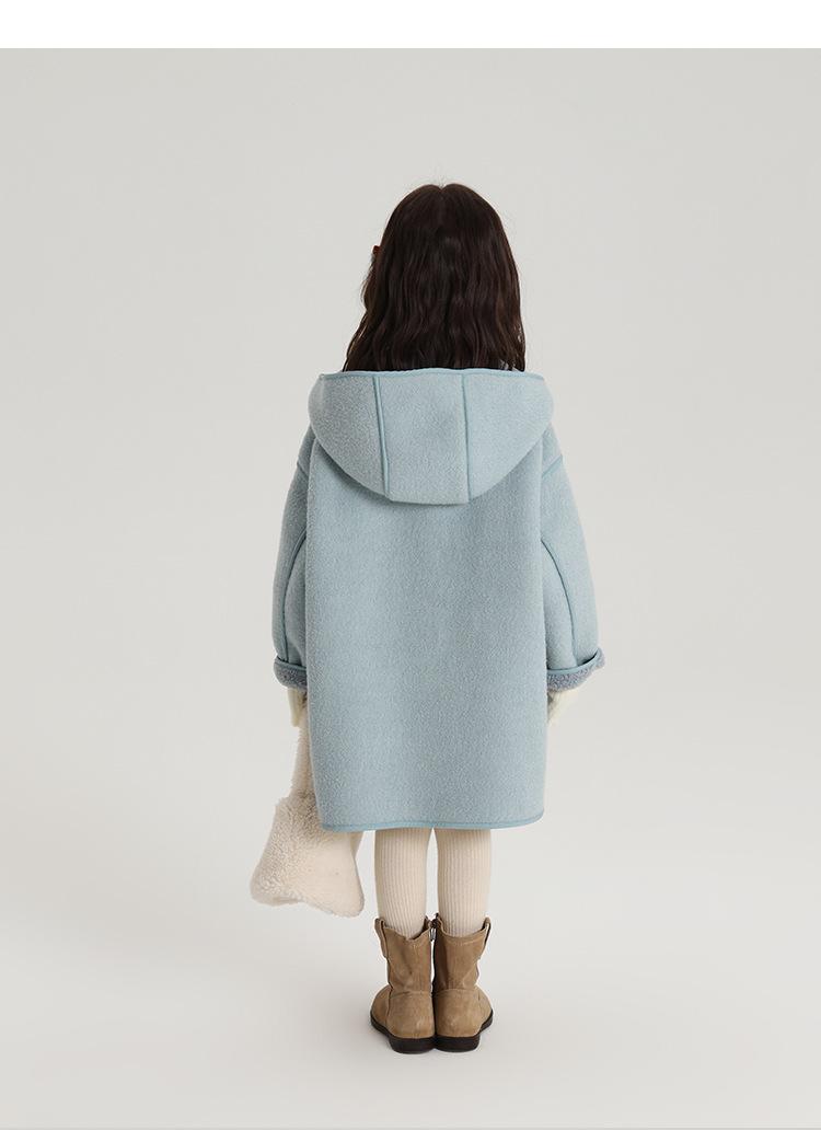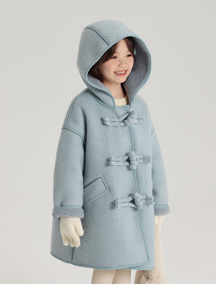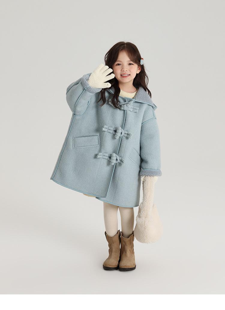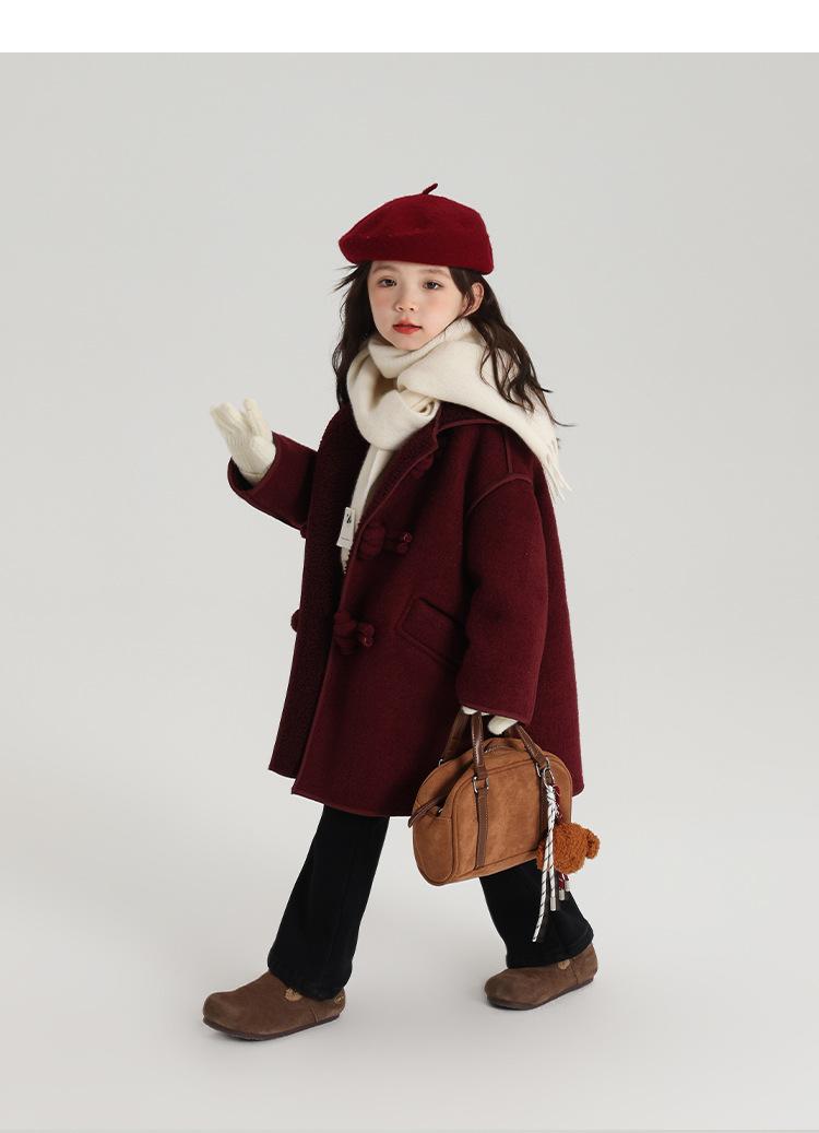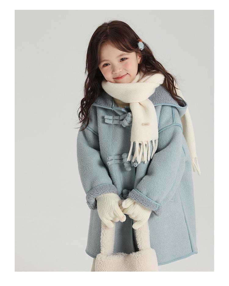 Abrigo de Otoño e Invierno 2024 Nuevo Estilo Coreano Estilo Occidental Abrigo para Niñas con Capucha Hombro Retro Abrigo de Lana para Mujer