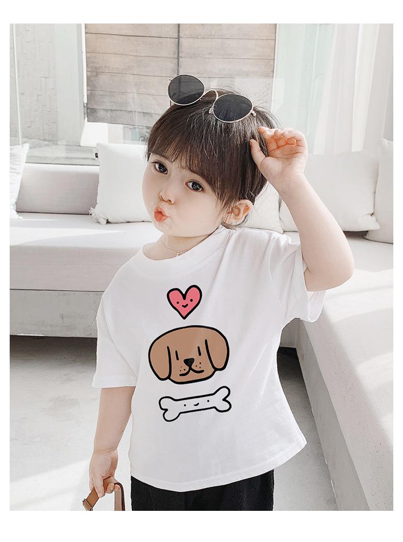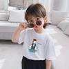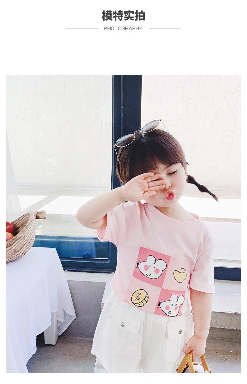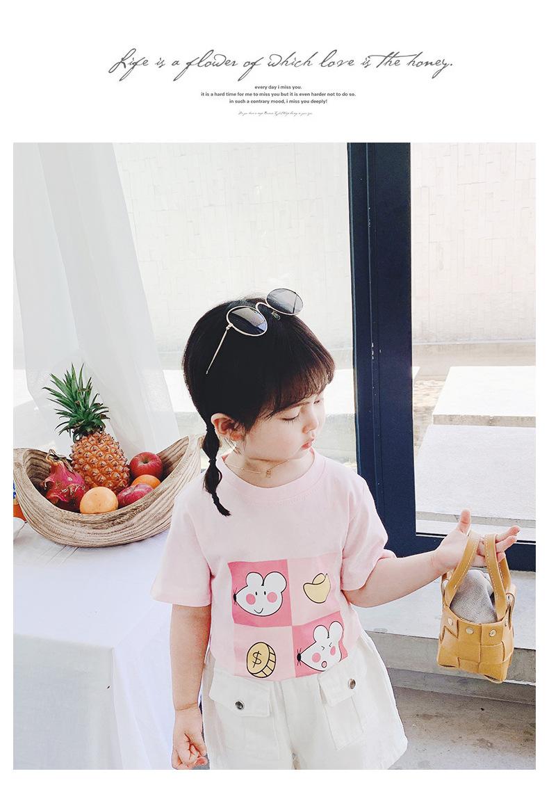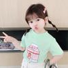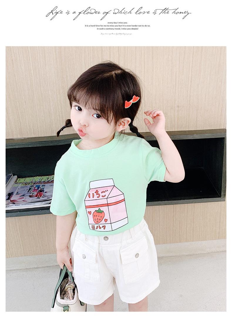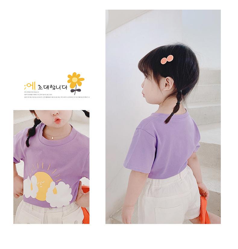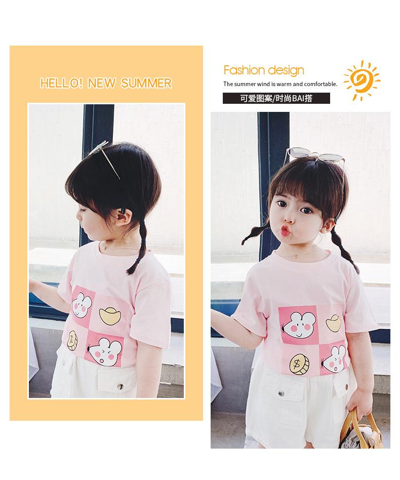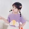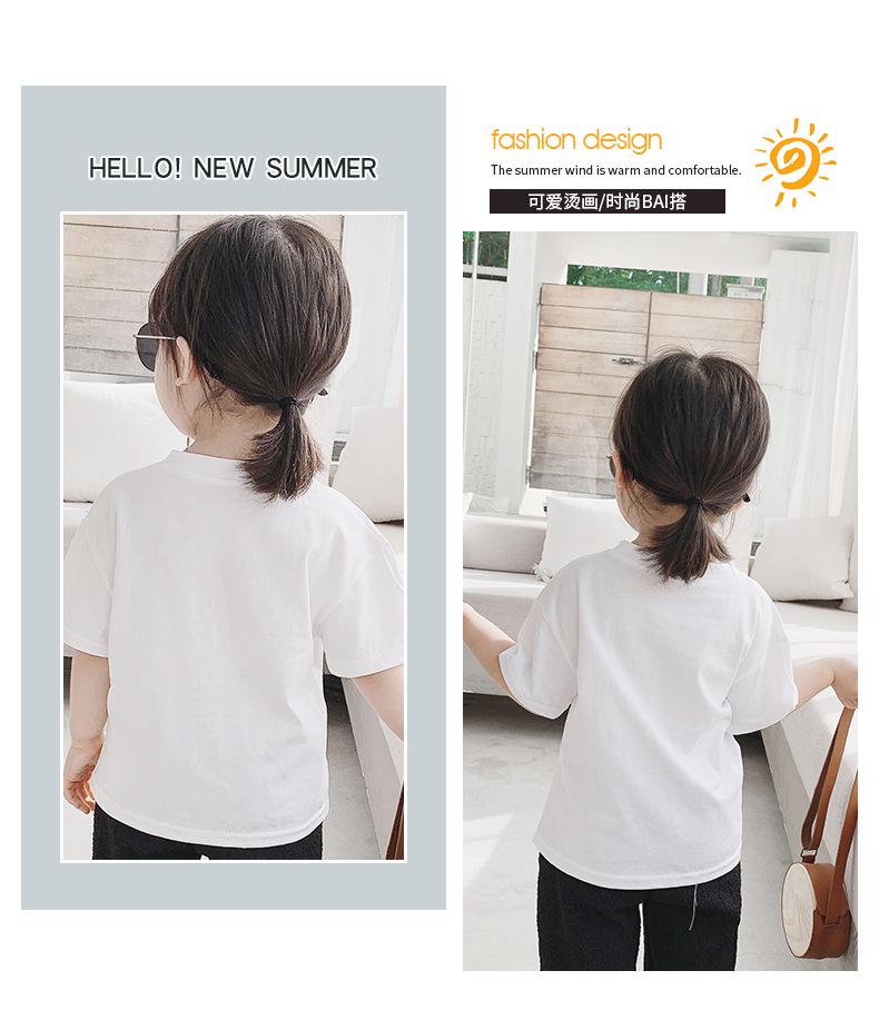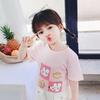Camiseta de niña de manga corta 100% algodón con estampado de dibujos animados de estilo occidental, ropa infantil dulce y linda.