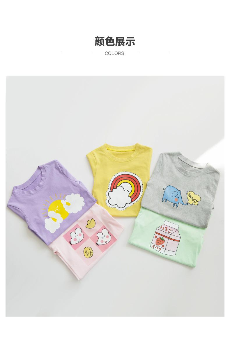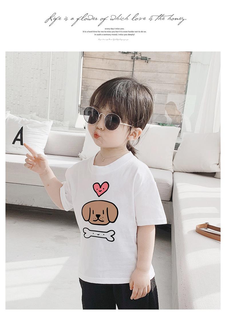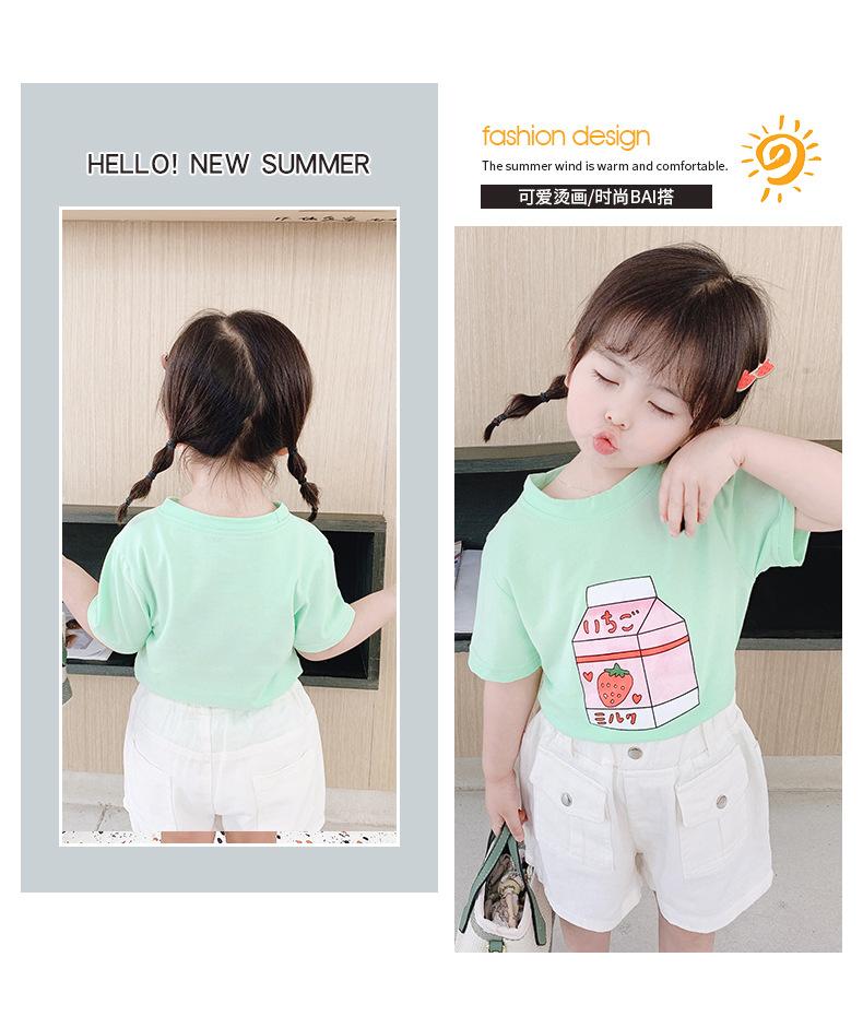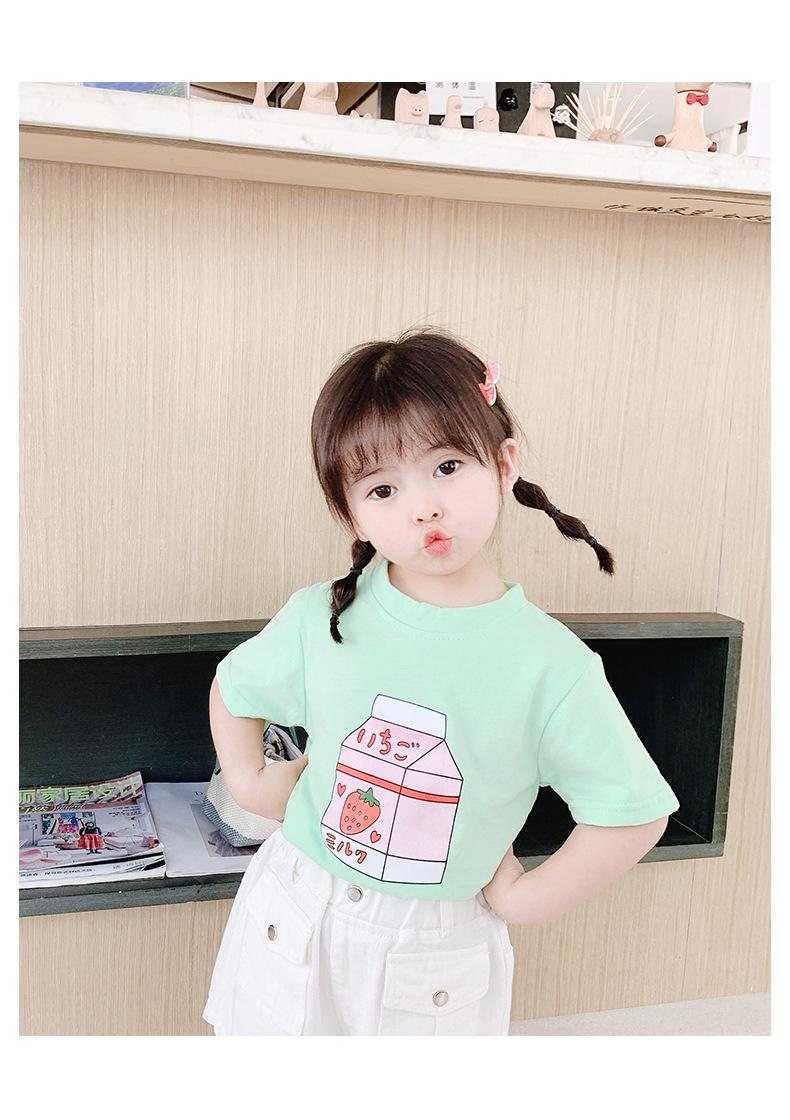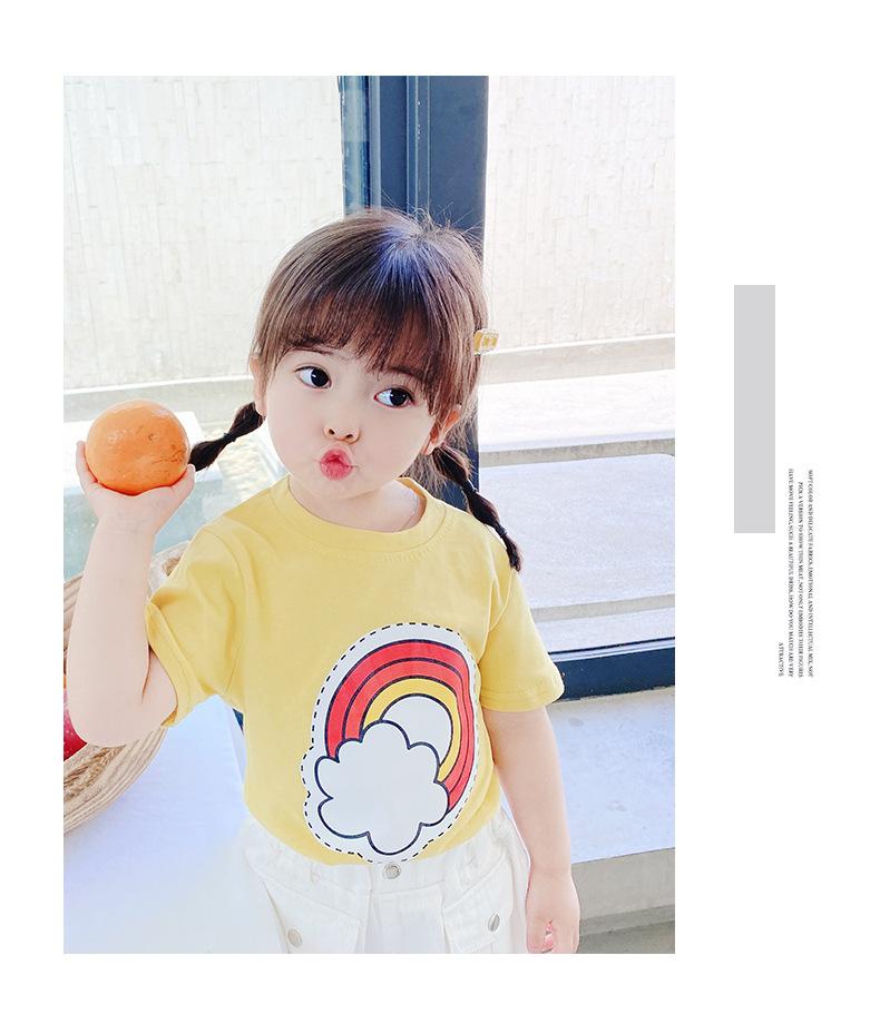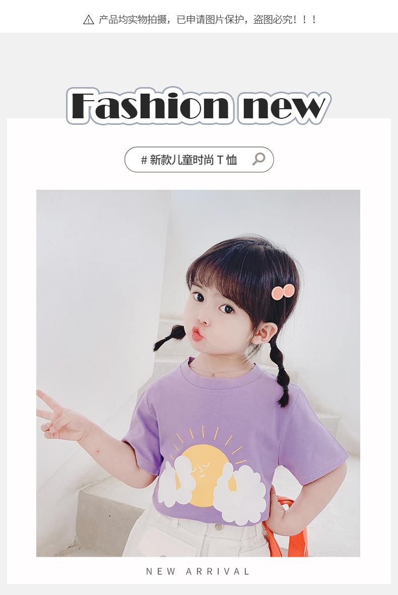 Camiseta de niña de manga corta 100% algodón con estampado de dibujos animados de estilo occidental, ropa infantil dulce y linda.