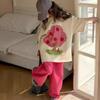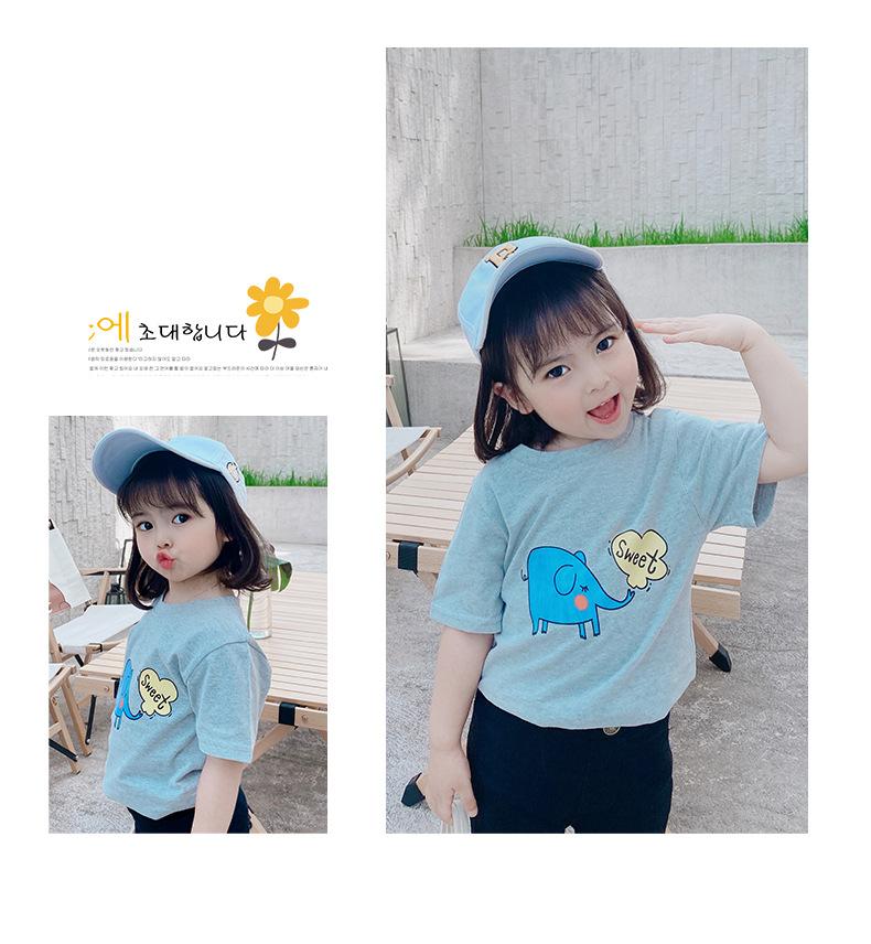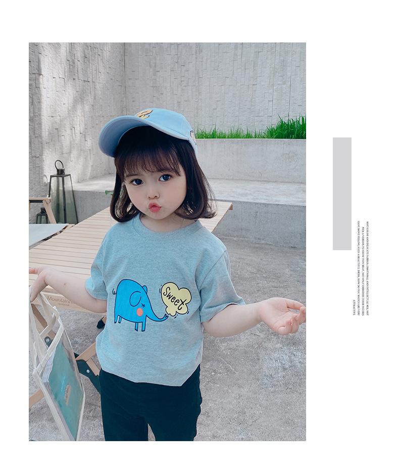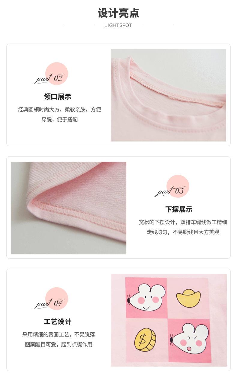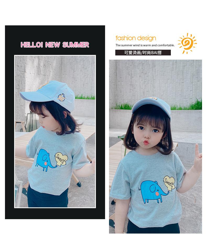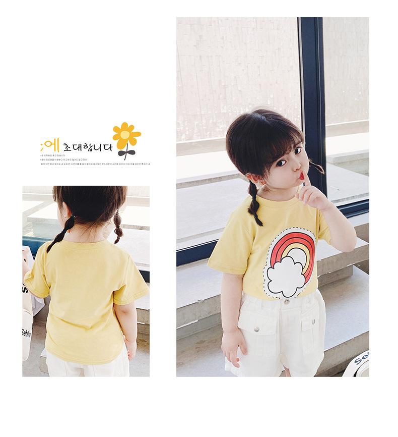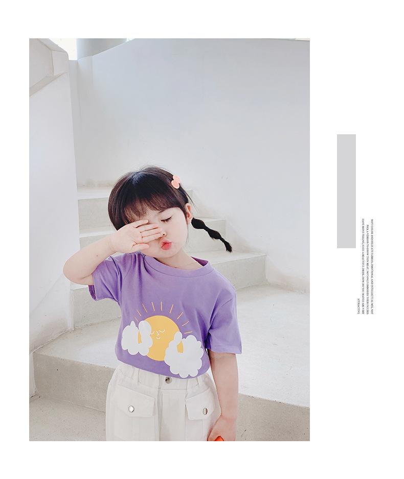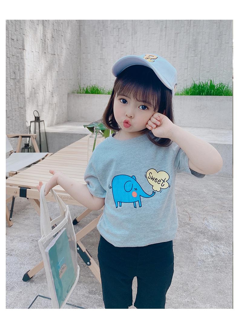 Camiseta de niña de manga corta 100% algodón con estampado de dibujos animados de estilo occidental, ropa infantil dulce y linda.