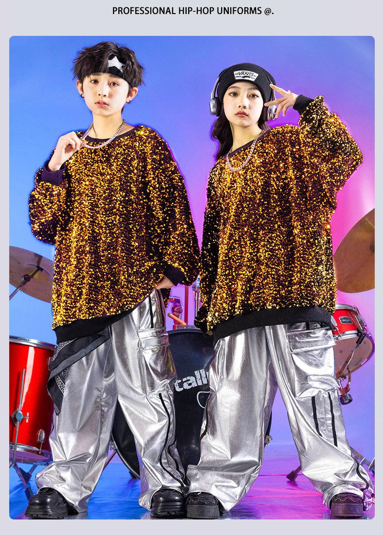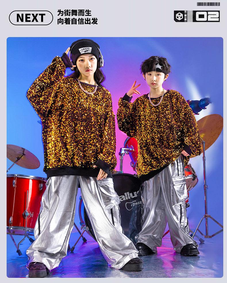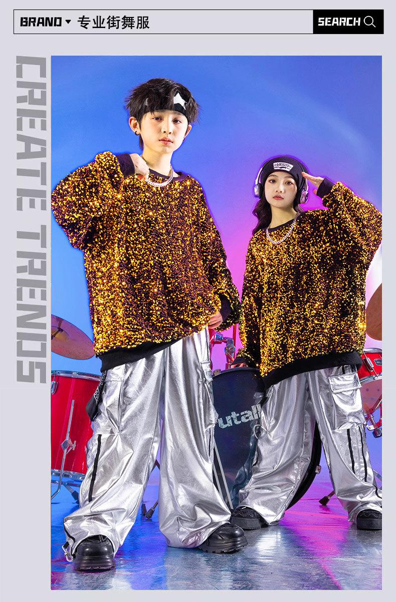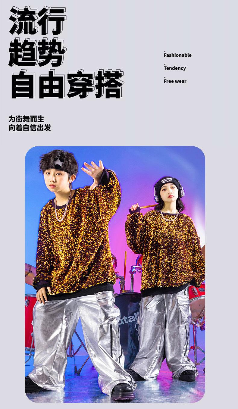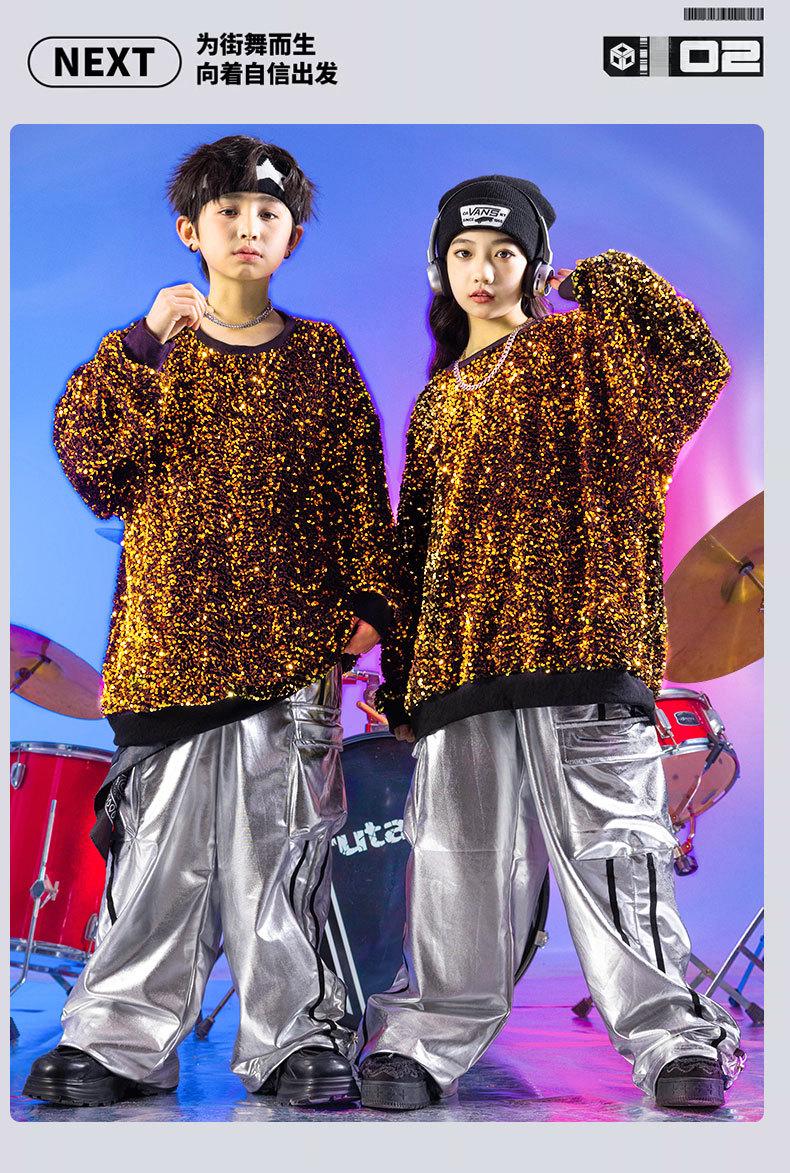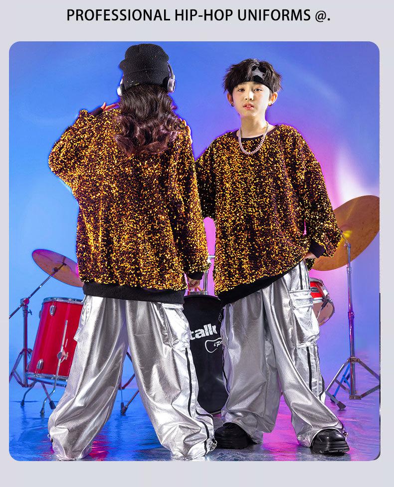Disfraz infantil de hip hop, baile callejero, disfraz de moda, disfraz de tambor para niños, disfraz de lentejuelas para niñas, disfraz de escenario para Año Nuevo
