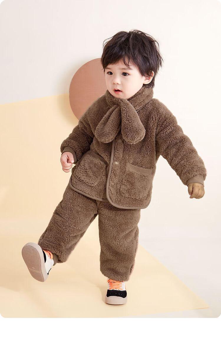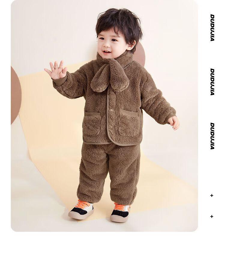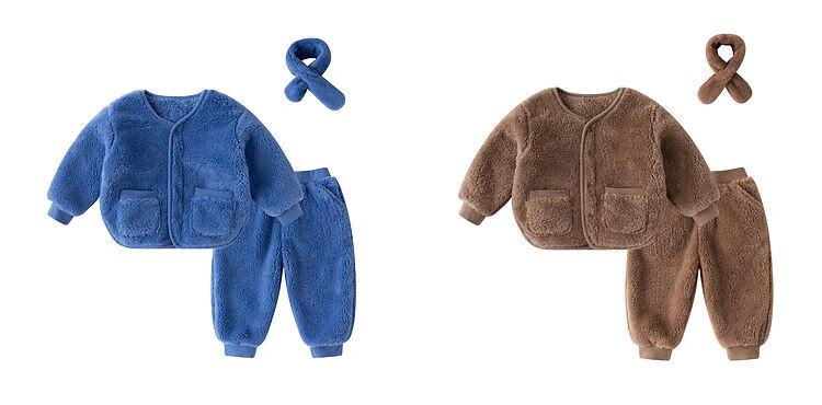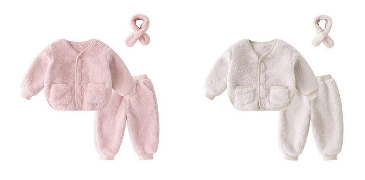 Ropa de bebé Doodle para el hogar, traje de invierno, pijamas gruesos para niños, ropa de dos piezas para niñas, ropa para niños de moda