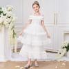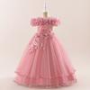Vestido infantil europeo y americano transfronterizo con hombros descubiertos, vestido de princesa de tul abullonado, vestido de novia, disfraz para piano, vestido de escenario