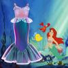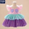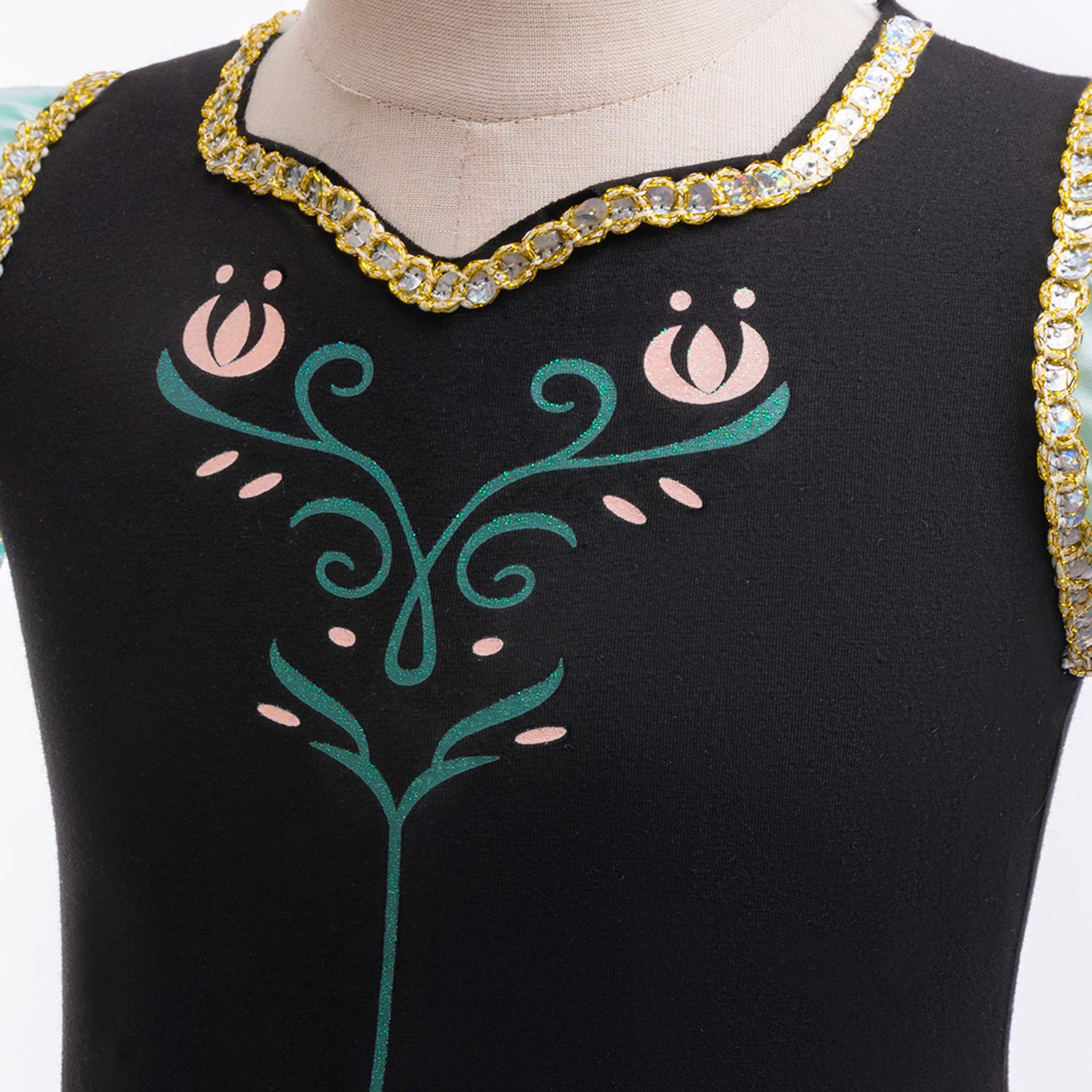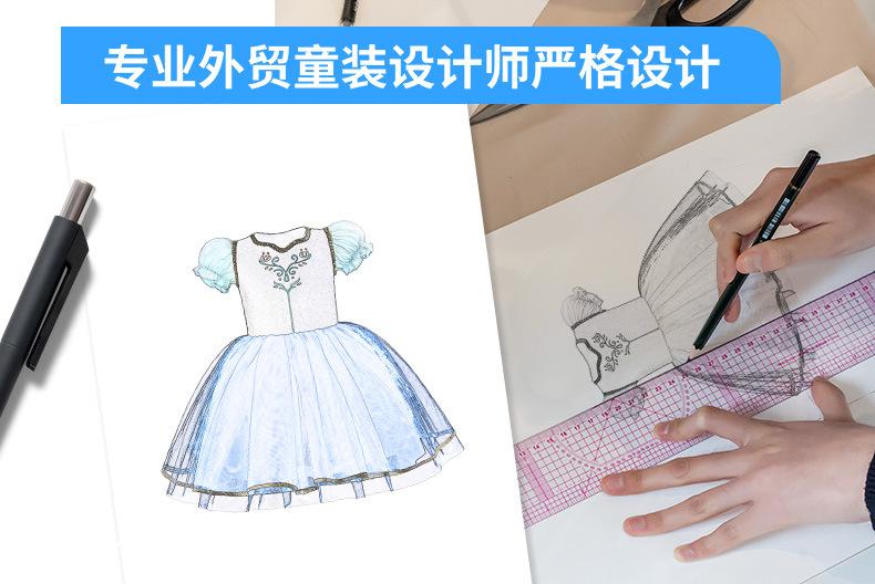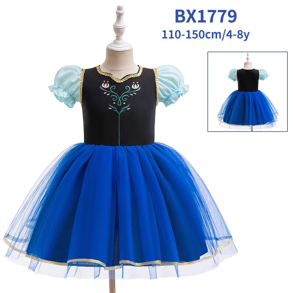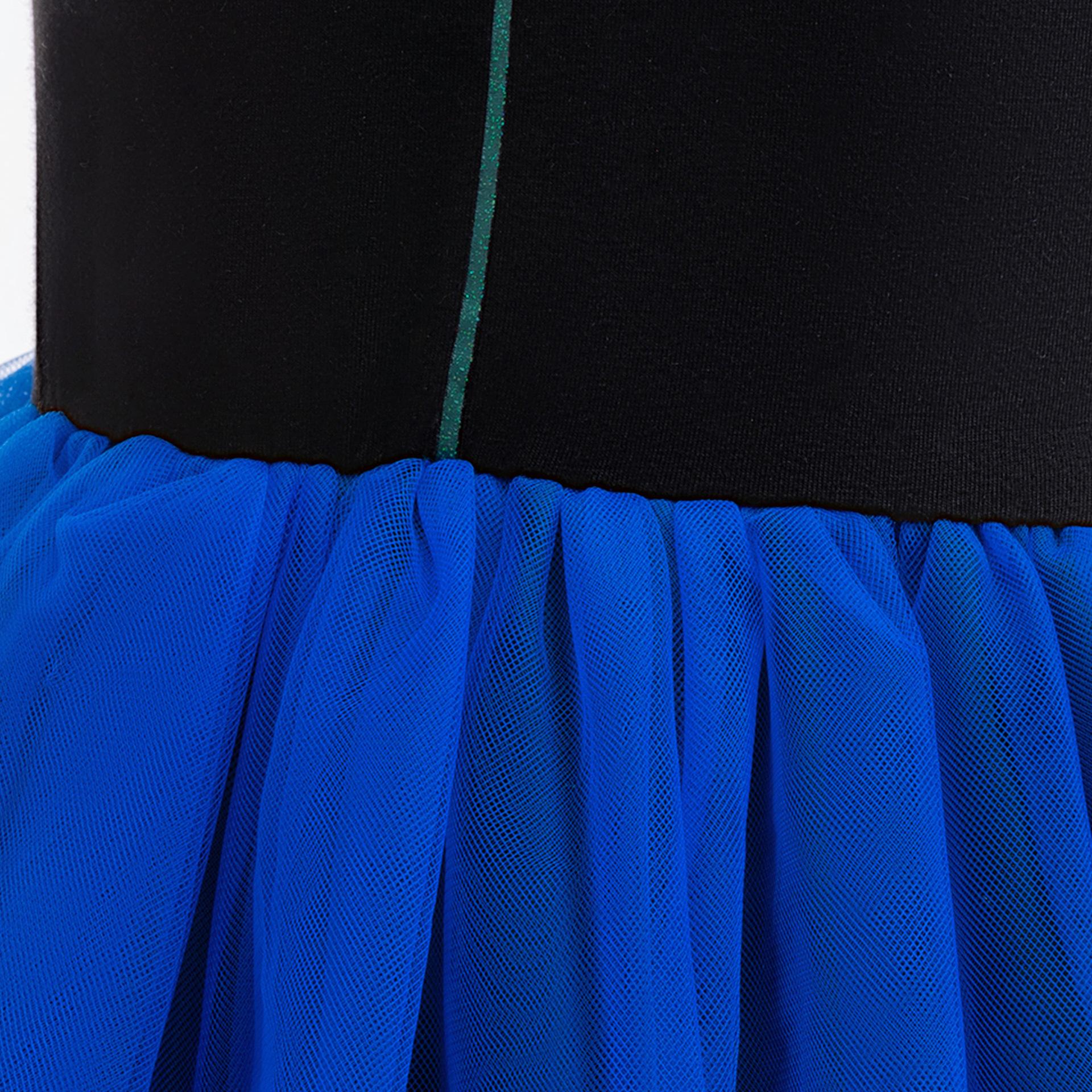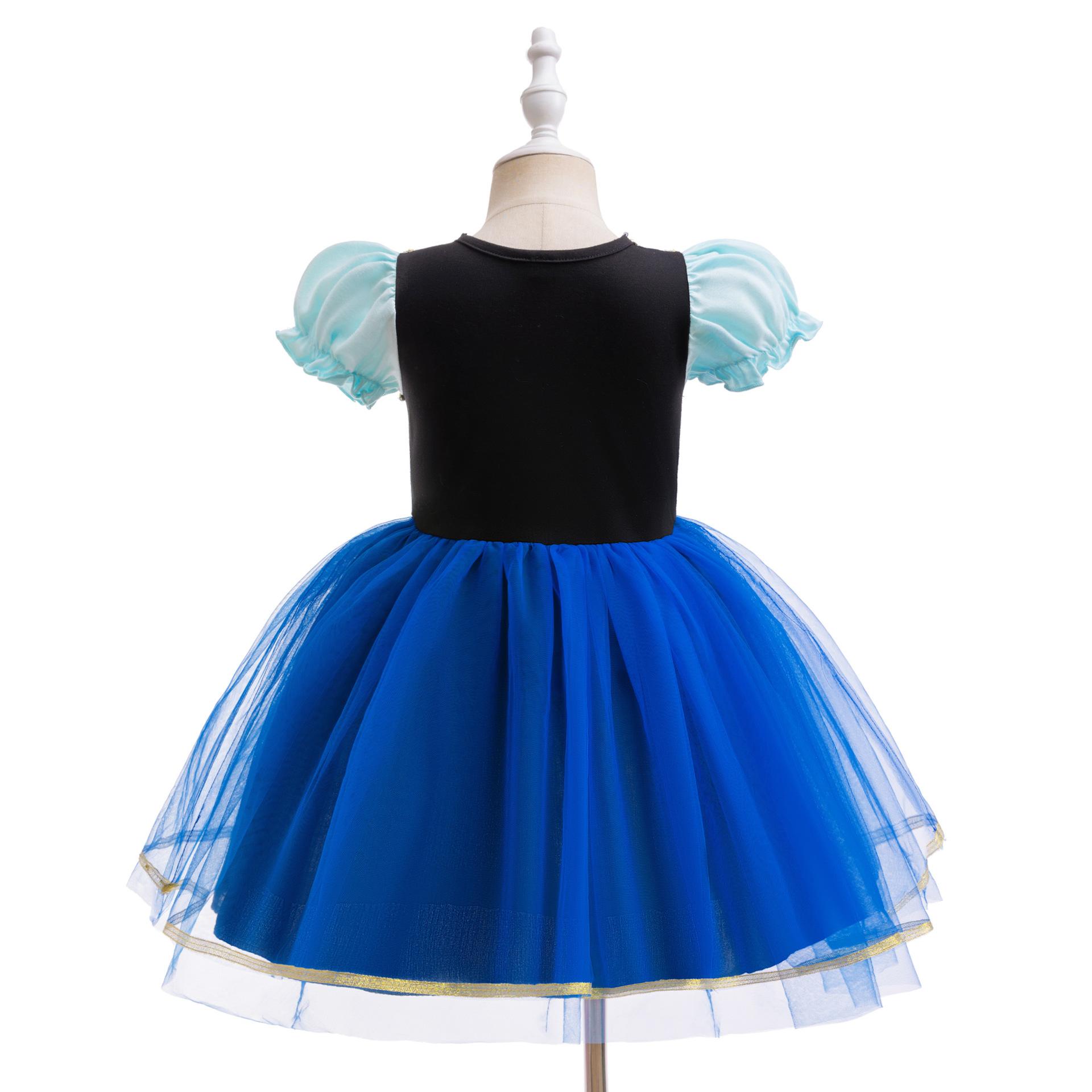 Abrigo Cosplay Nuevo Europeo y Americano Vestido de Princesa de Malla con Bloques de Color Estampado para Niña Vestido de Espectáculo Infantil