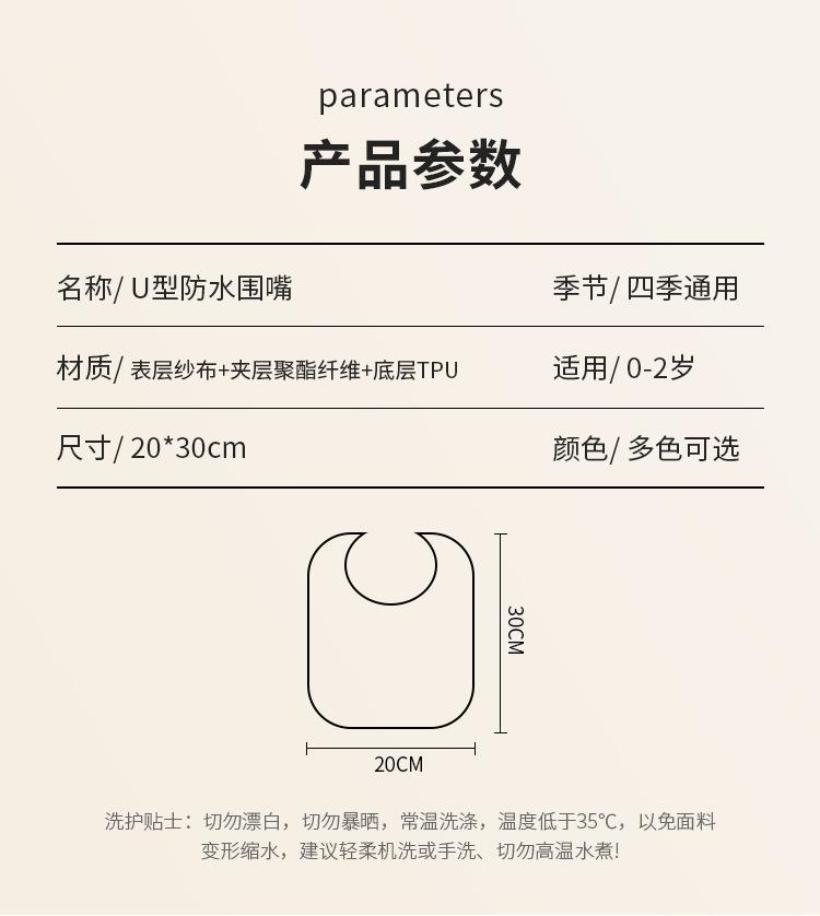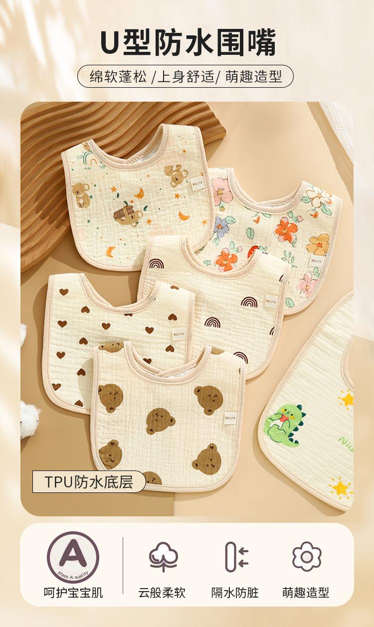 Babero impermeable de algodón para bebé, toalla antideslizante, absorbente en forma de U, ropa no húmeda, babero para comer para bebé, fabricantes al por mayor
