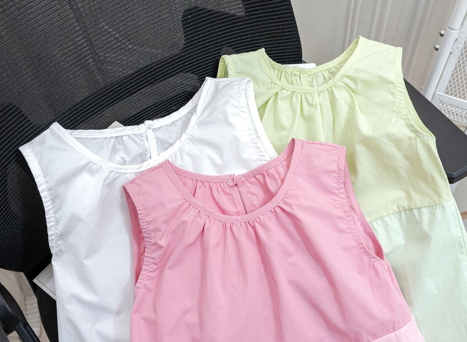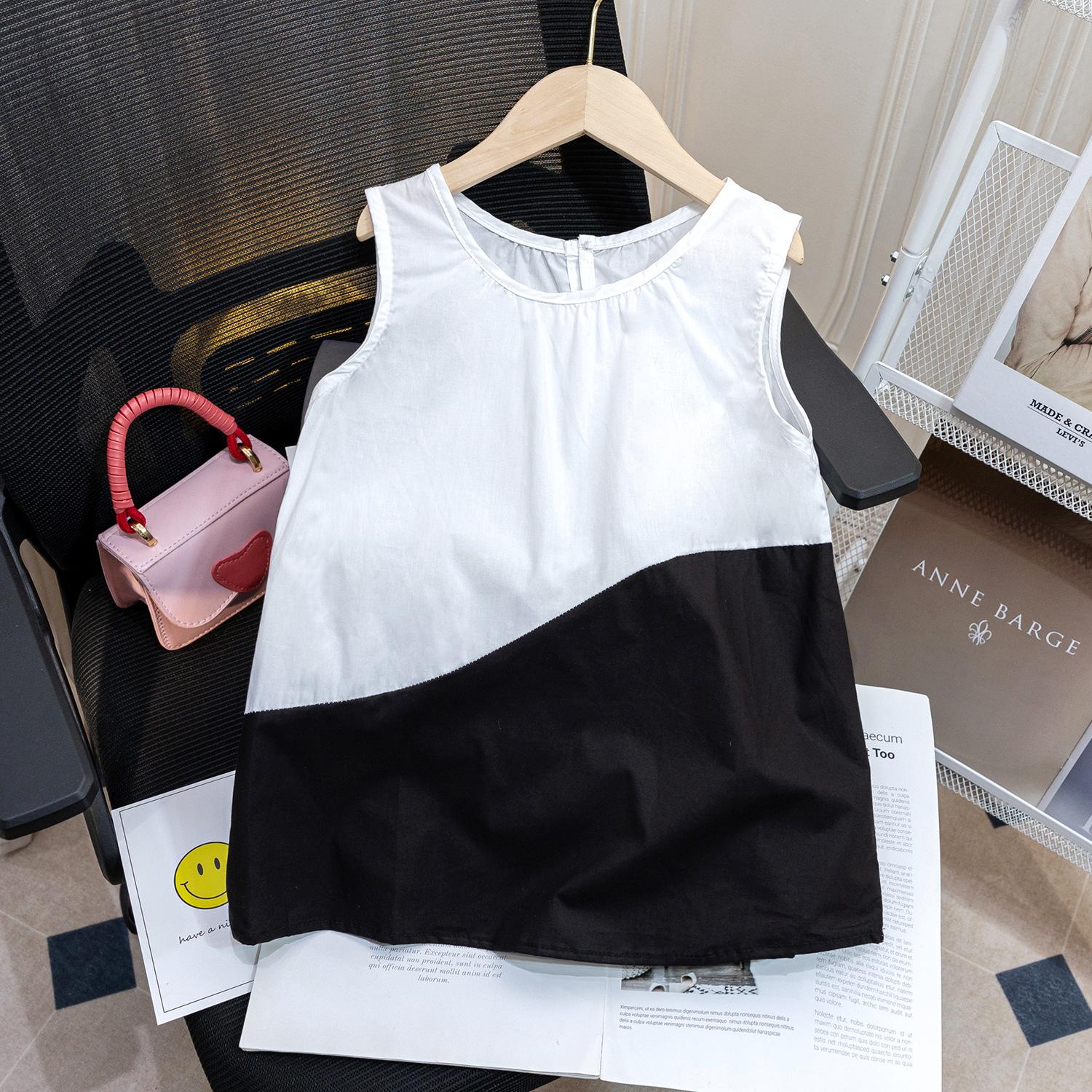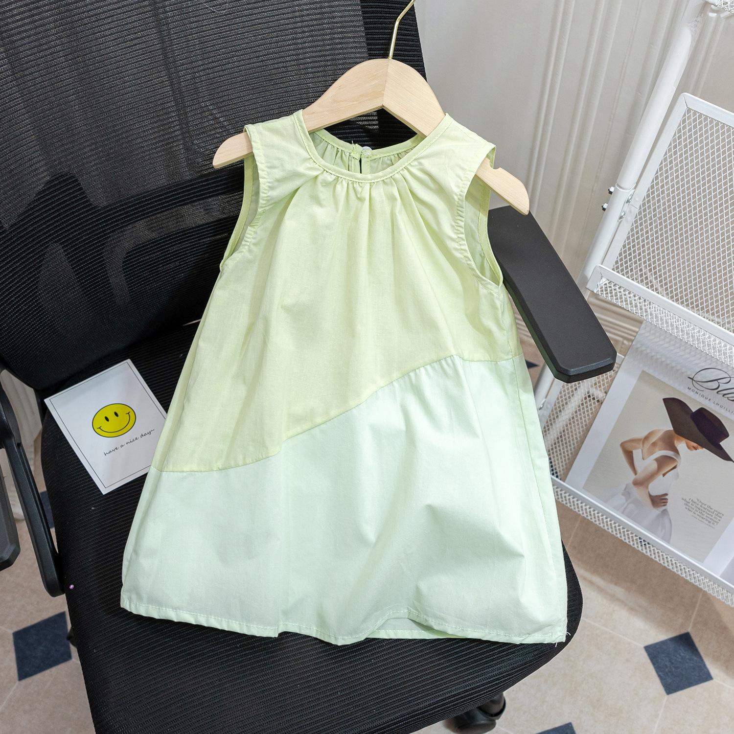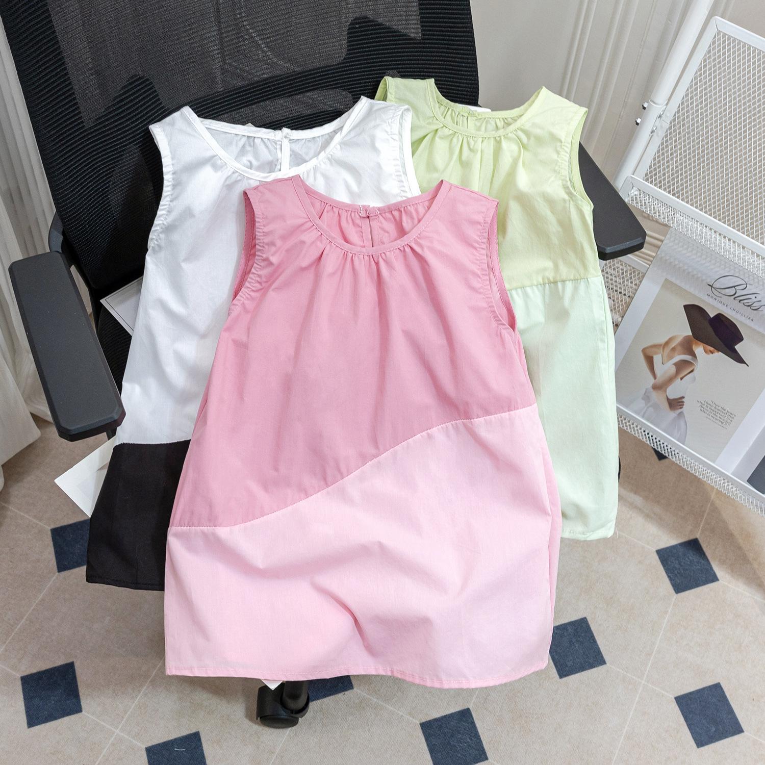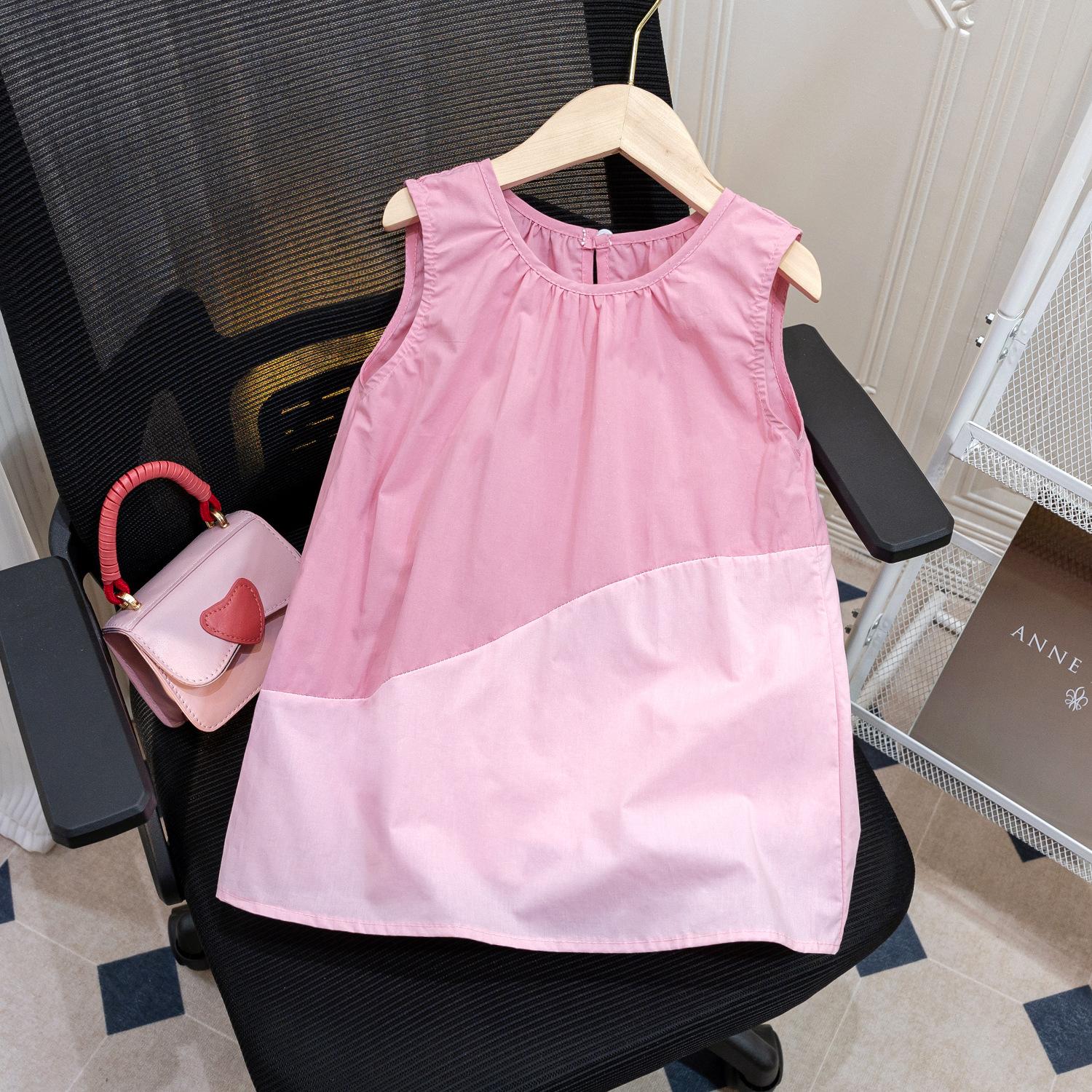 Vestido de Niña Dulce Niñas 2024 Nueva Moda Casual Falda Bloque de Color Bebé Sin Mangas Suelto Vestido Chaleco