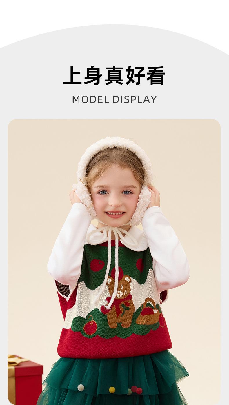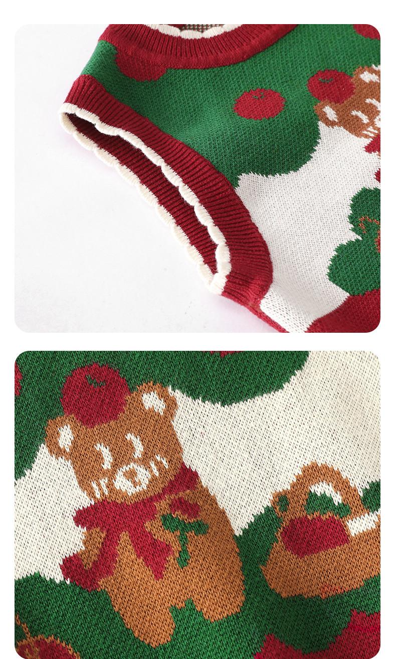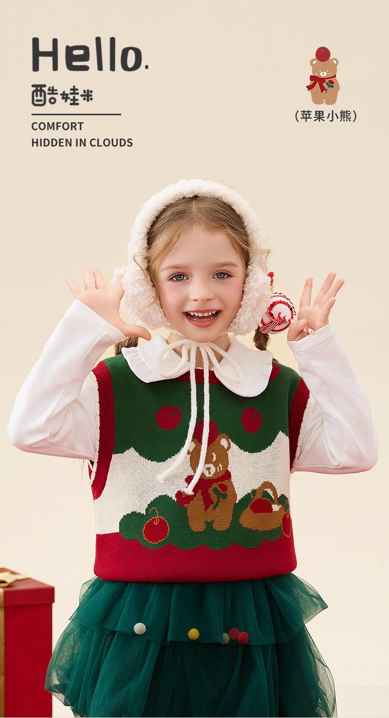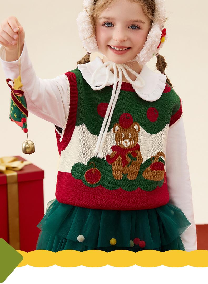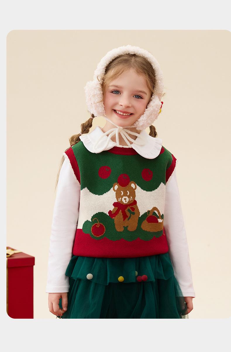Ku Chaleco de Navidad de Manzana y Oso para Bebé Niña Otoño e Invierno Encaje Cuello Redondo Tejido de Punto Suéter Jersey Chaleco para Niños