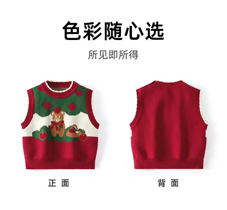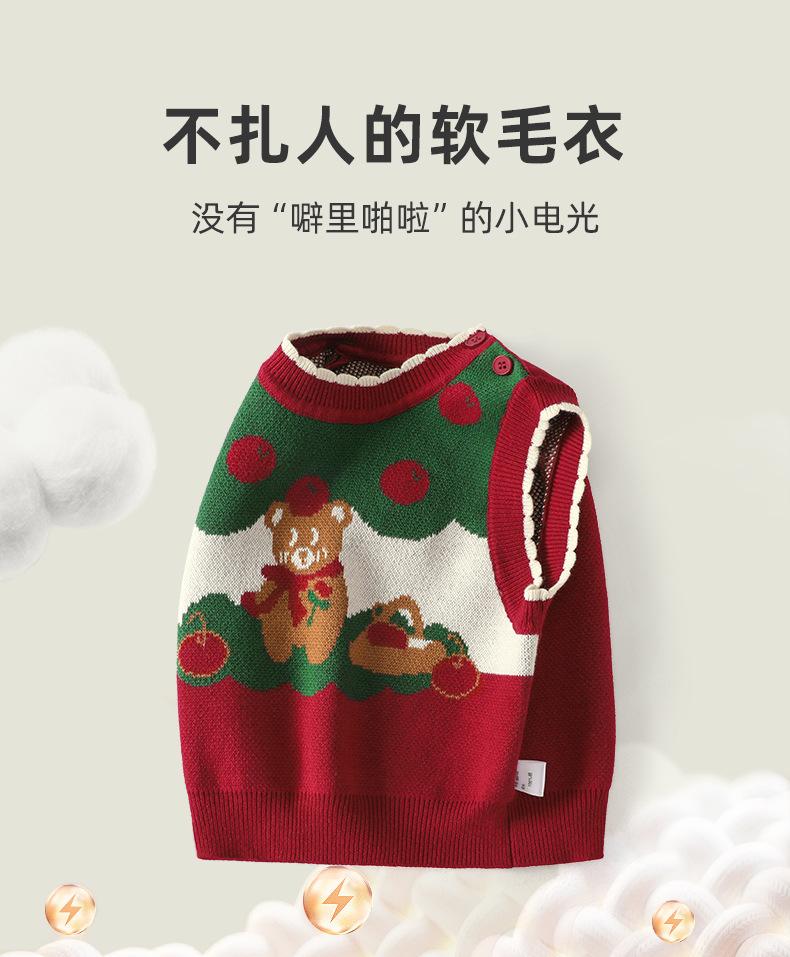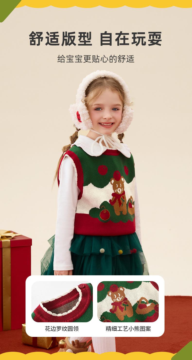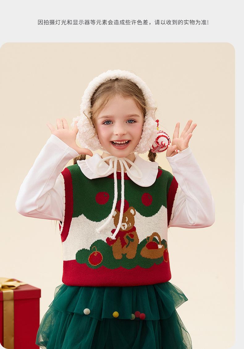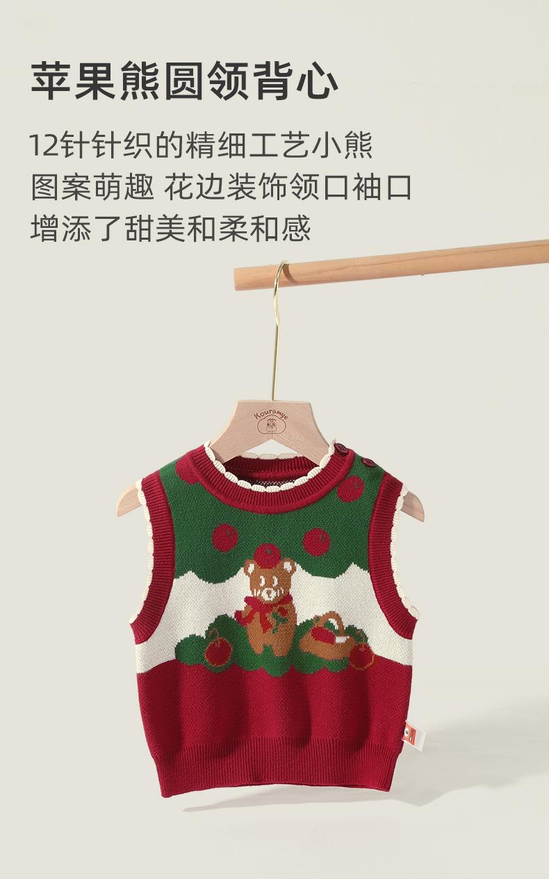 Ku Chaleco de Navidad de Manzana y Oso para Bebé Niña Otoño e Invierno Encaje Cuello Redondo Tejido de Punto Suéter Jersey Chaleco para Niños
