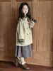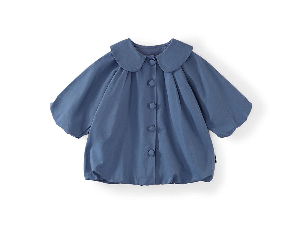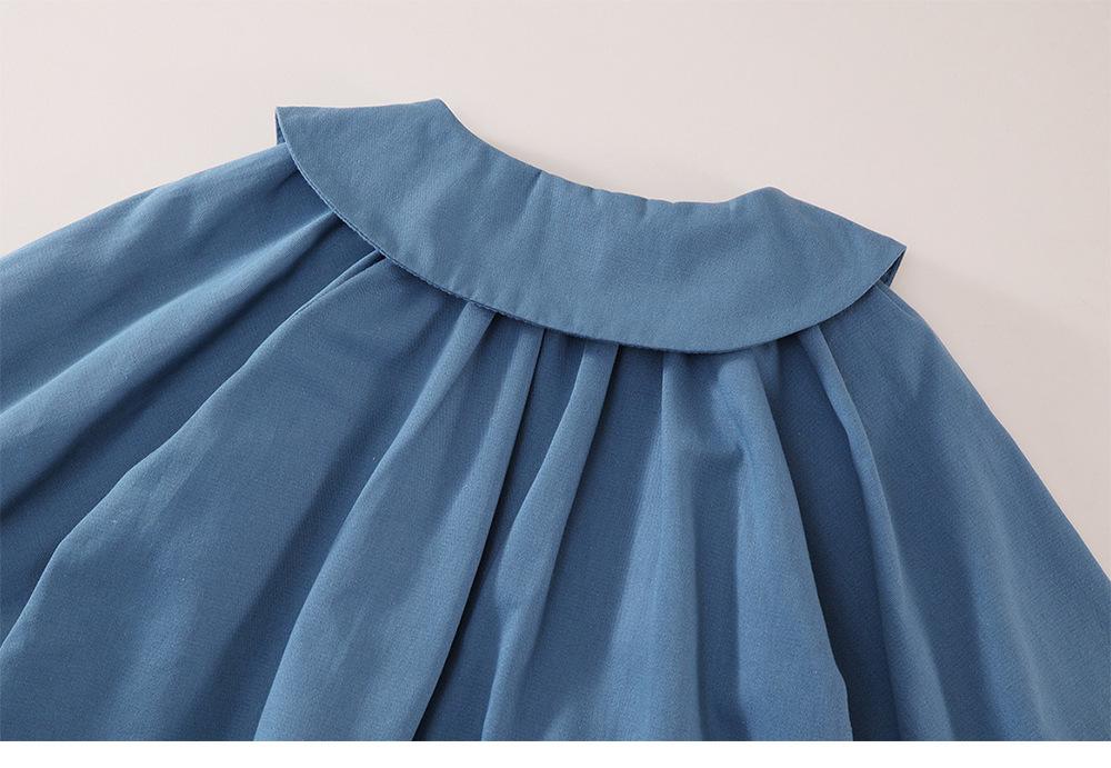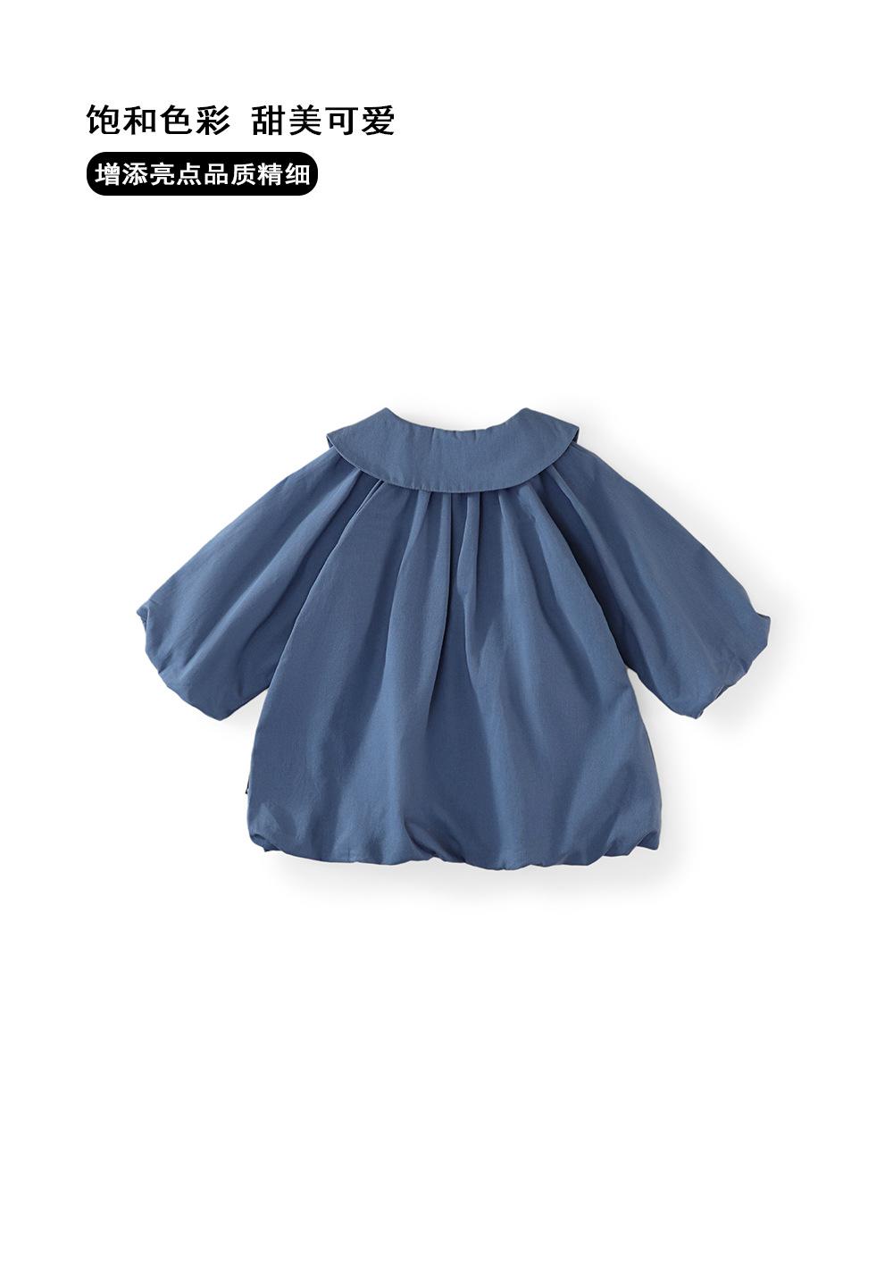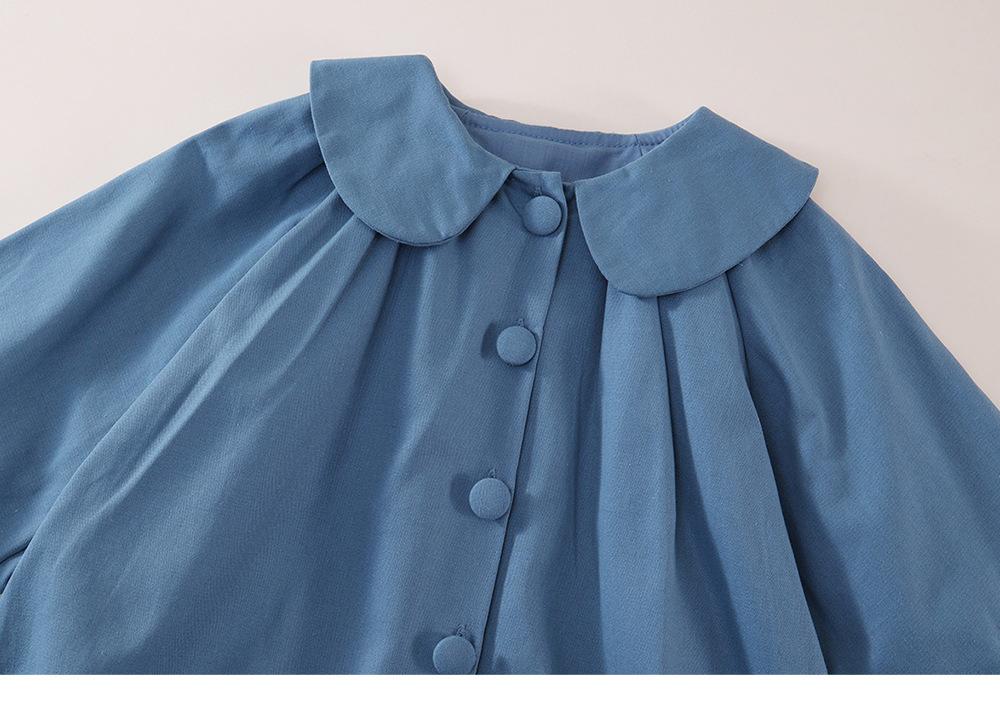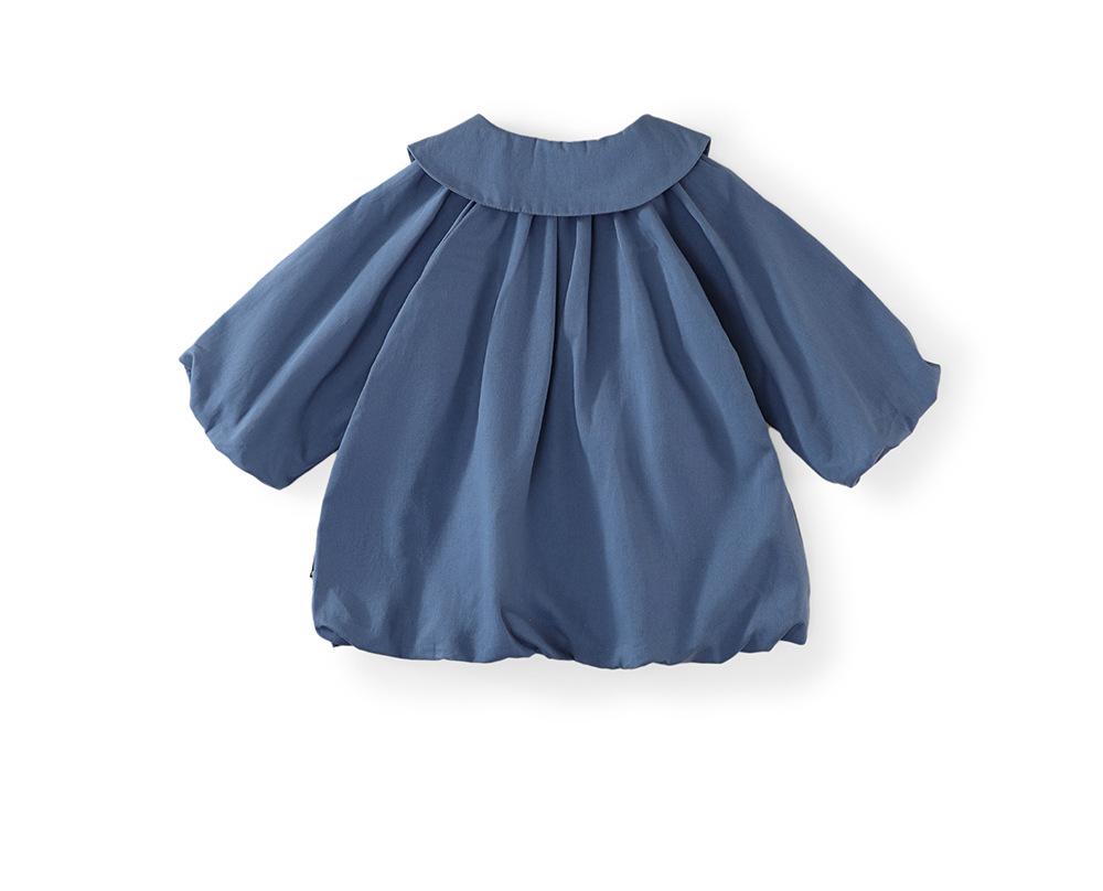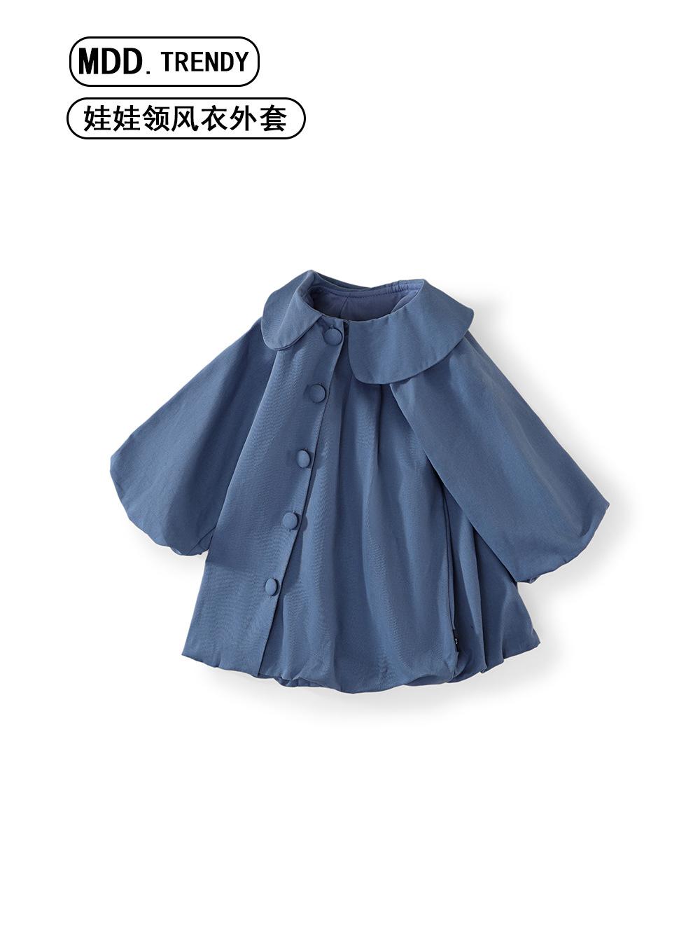 Vestido Azul con Solapa para Niñas MDD 2025 Primavera Nuevo Infantil Coreano Holgado Cárdigan Cortavientos Capullo de Flor