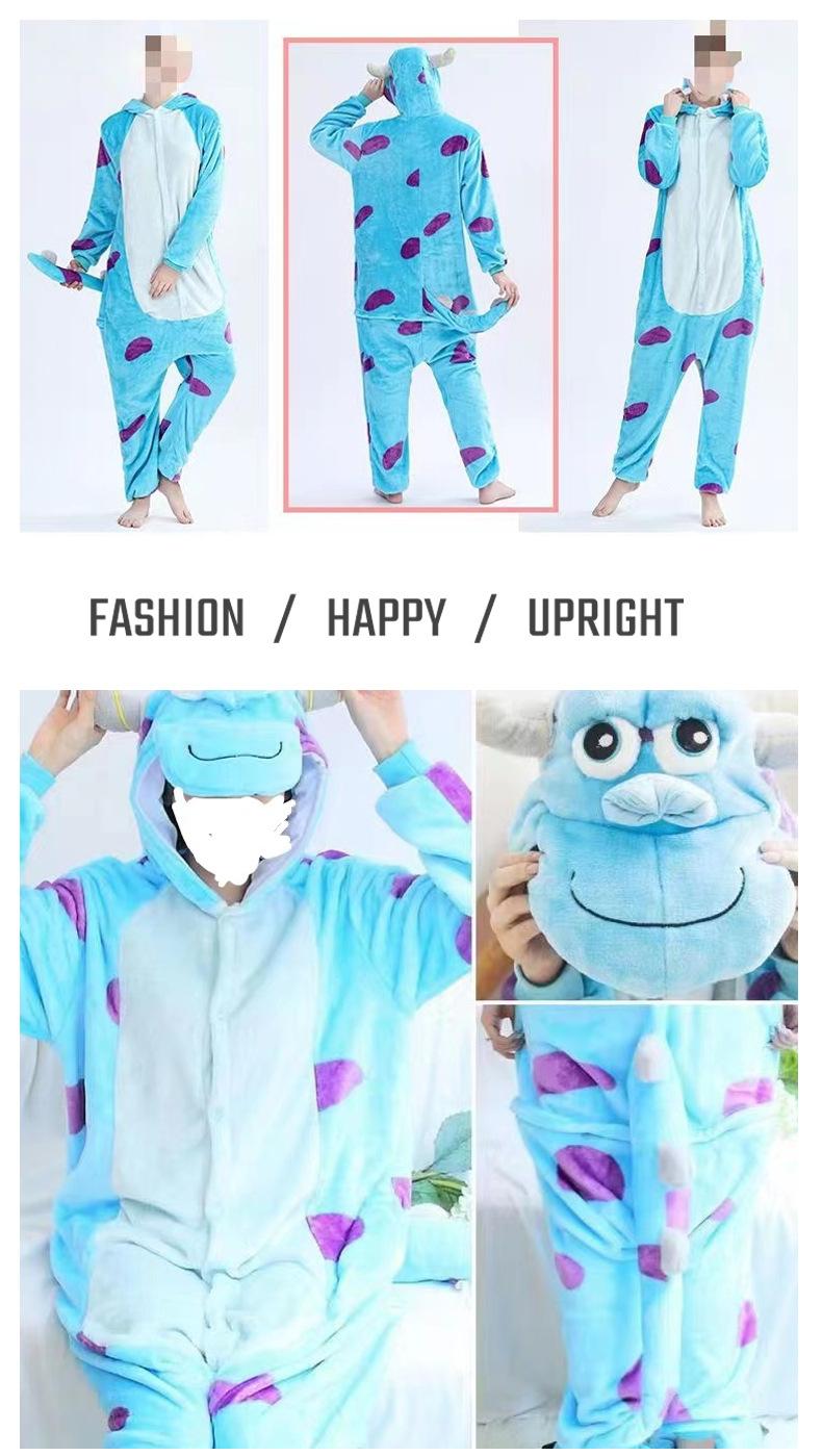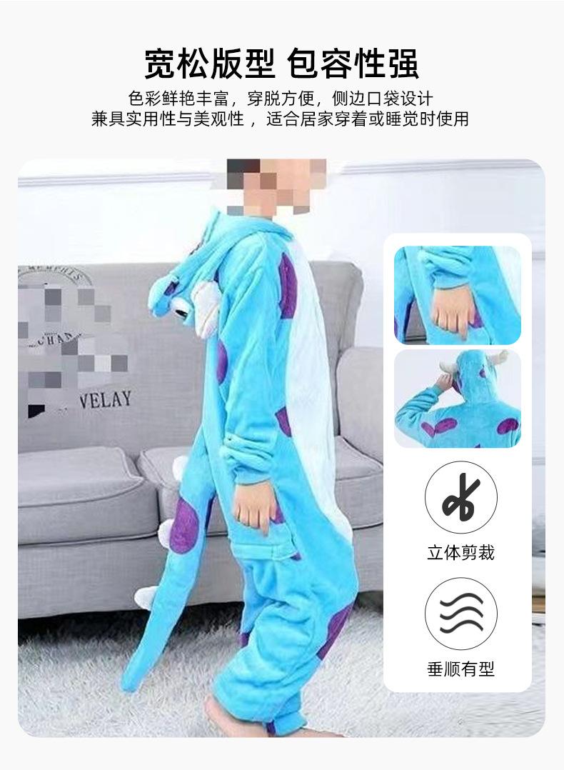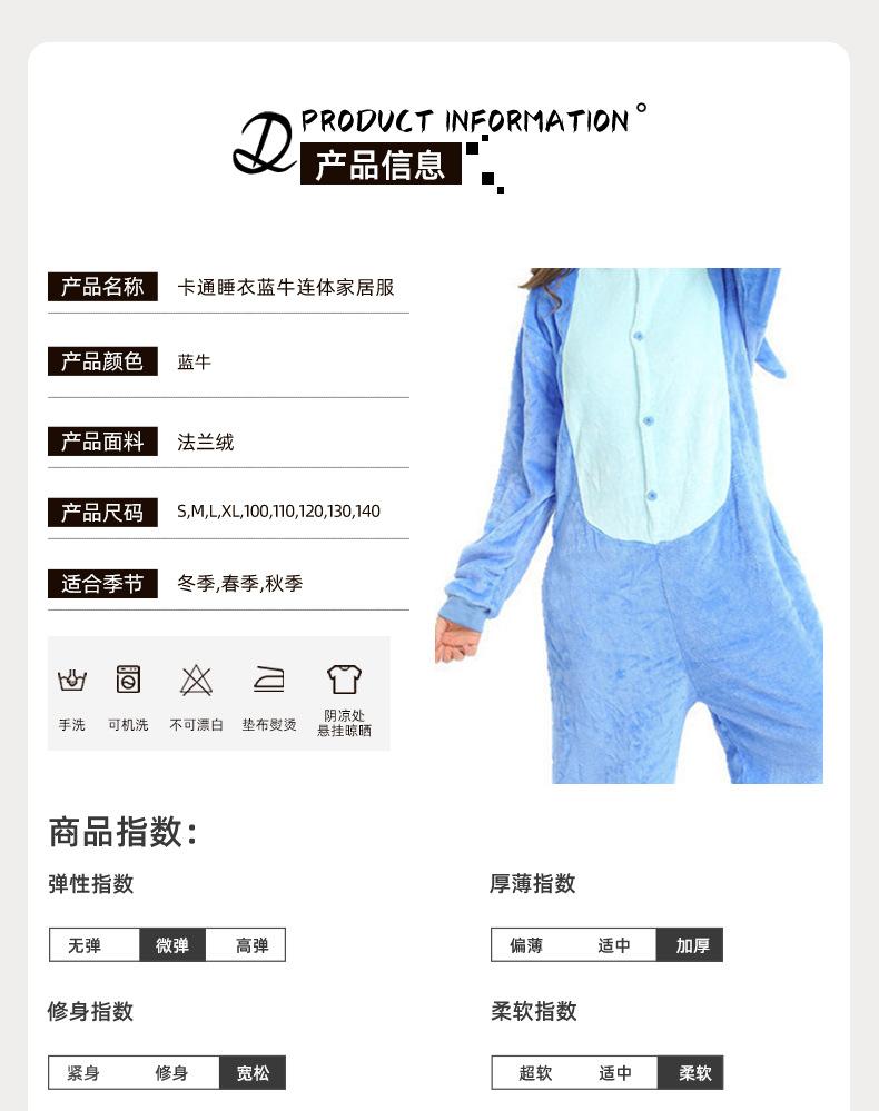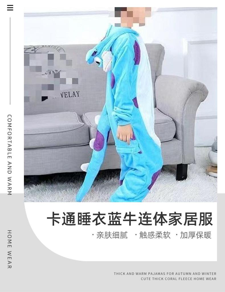 Pijama de Dibujos Animados Mono Vaca Azul Otoño e Invierno Ropa de Actuación para Niños Ropa de Casa de Animales Franela Cálida Ropa de Casa