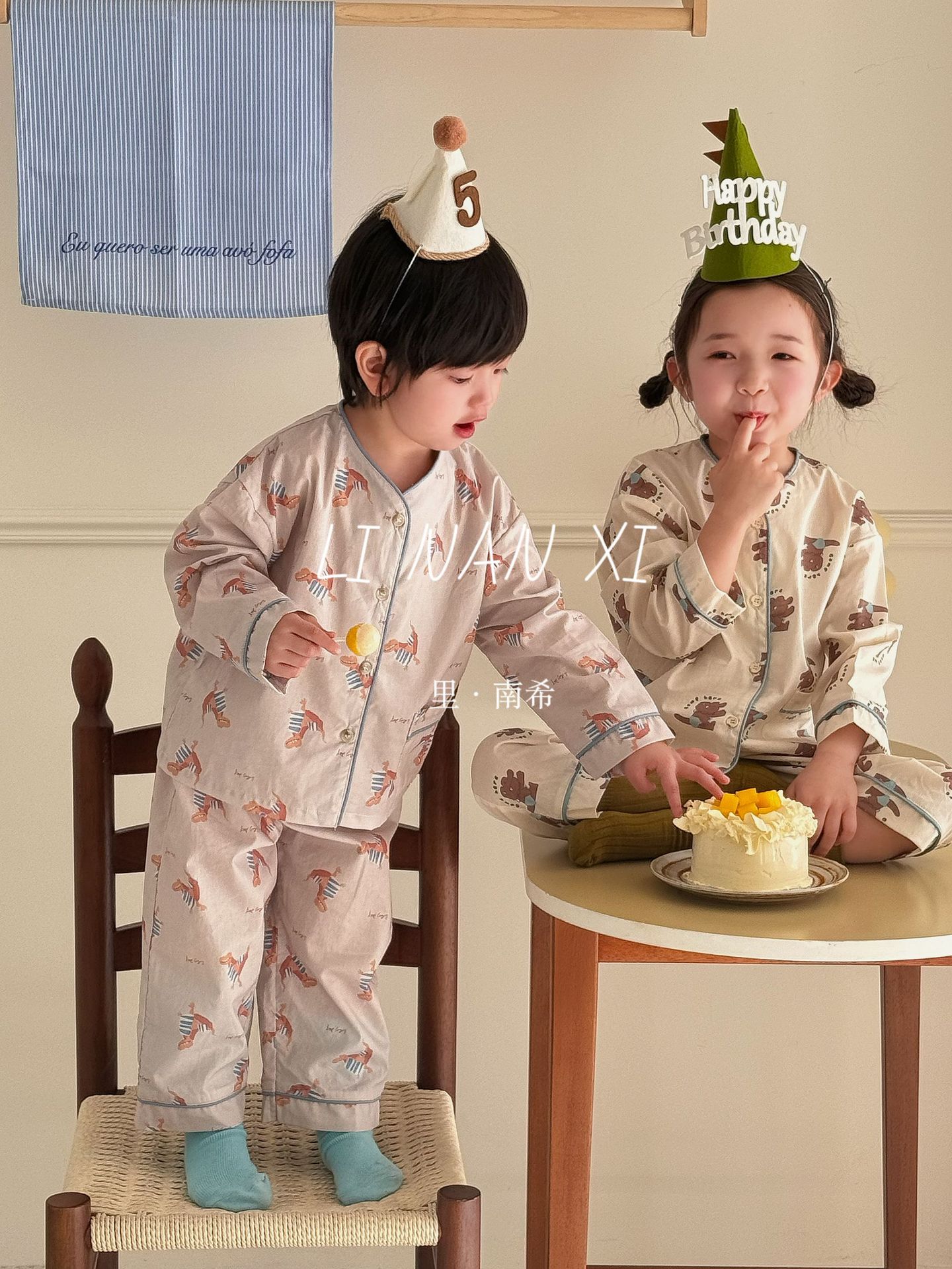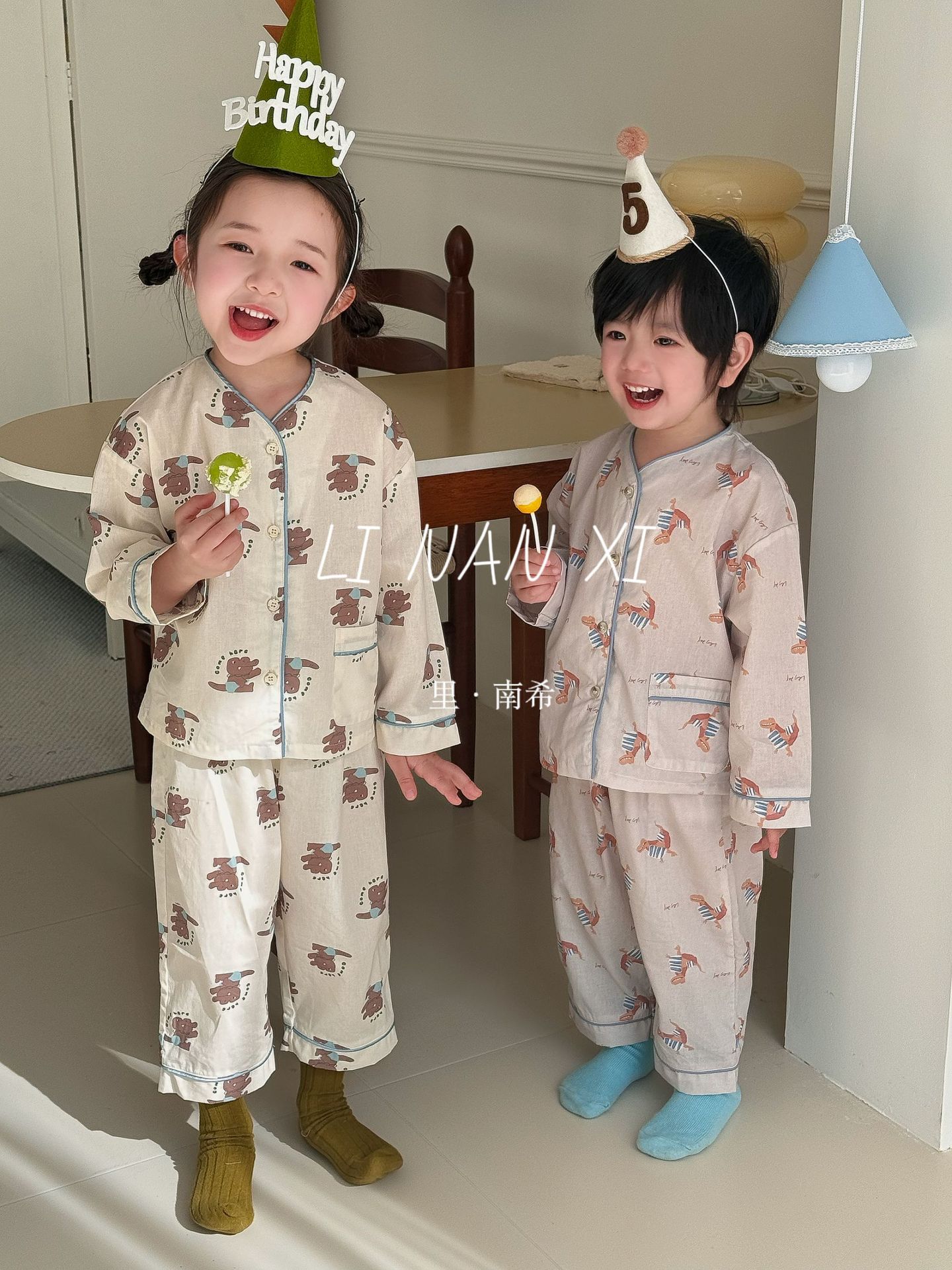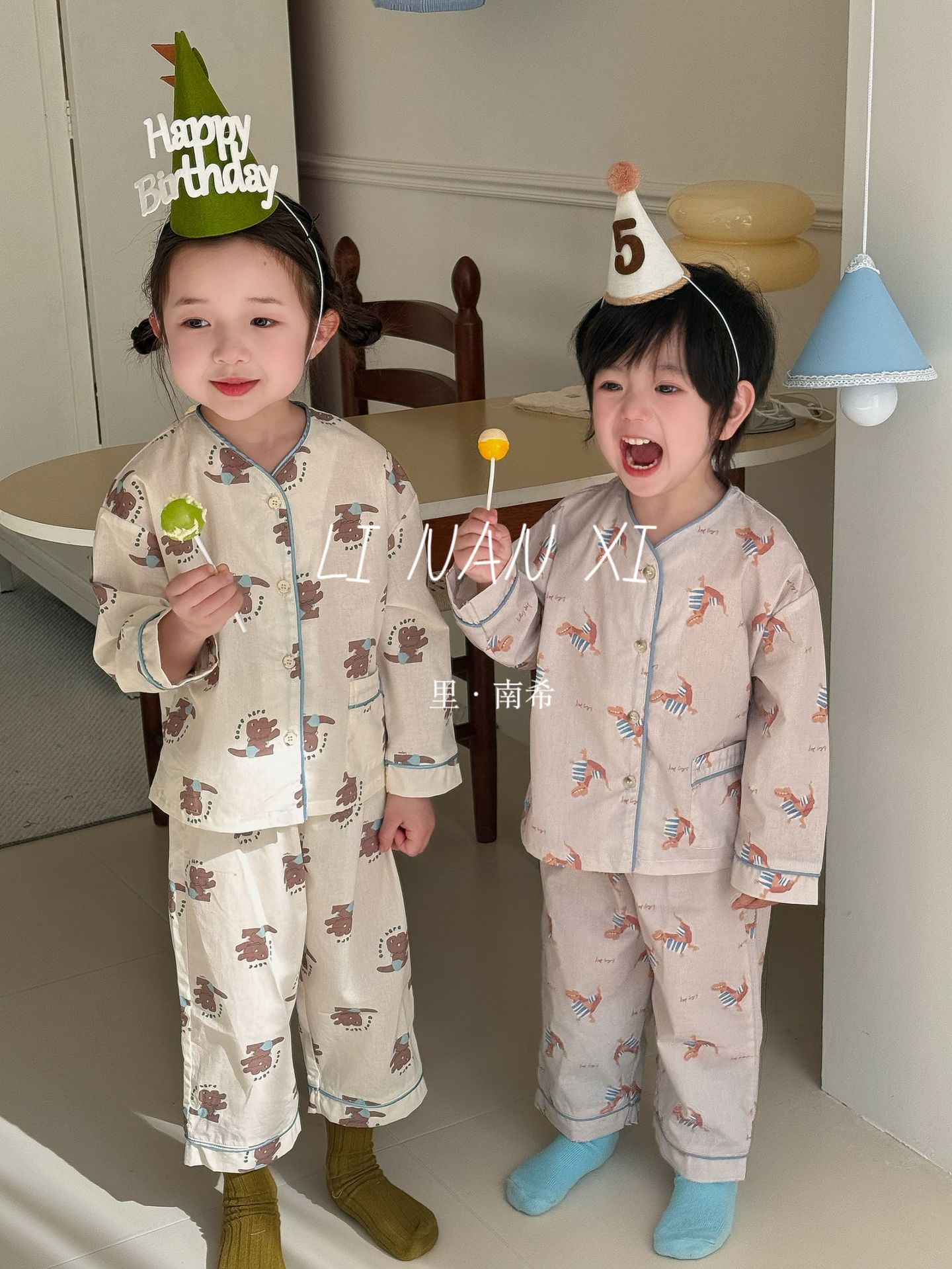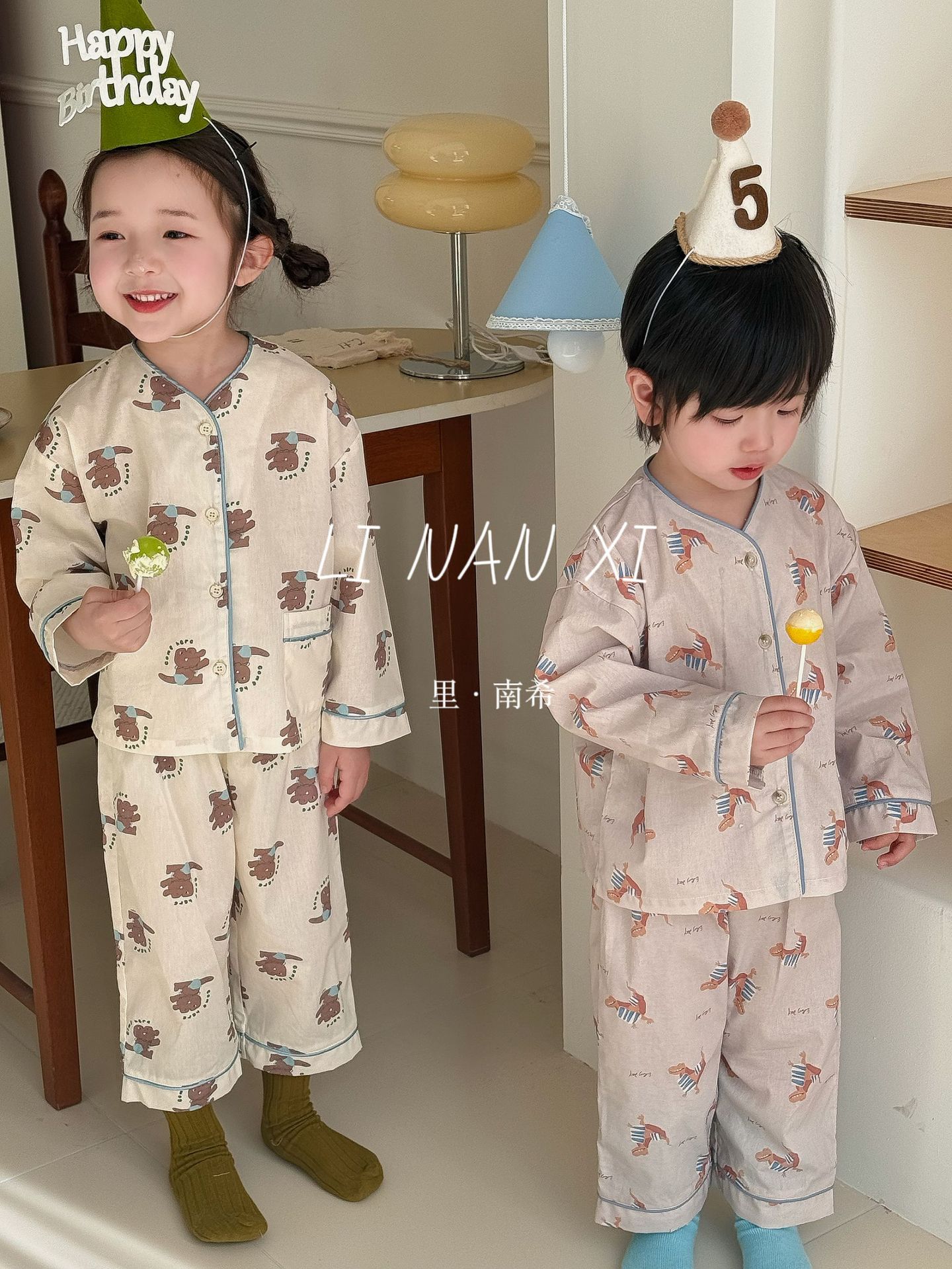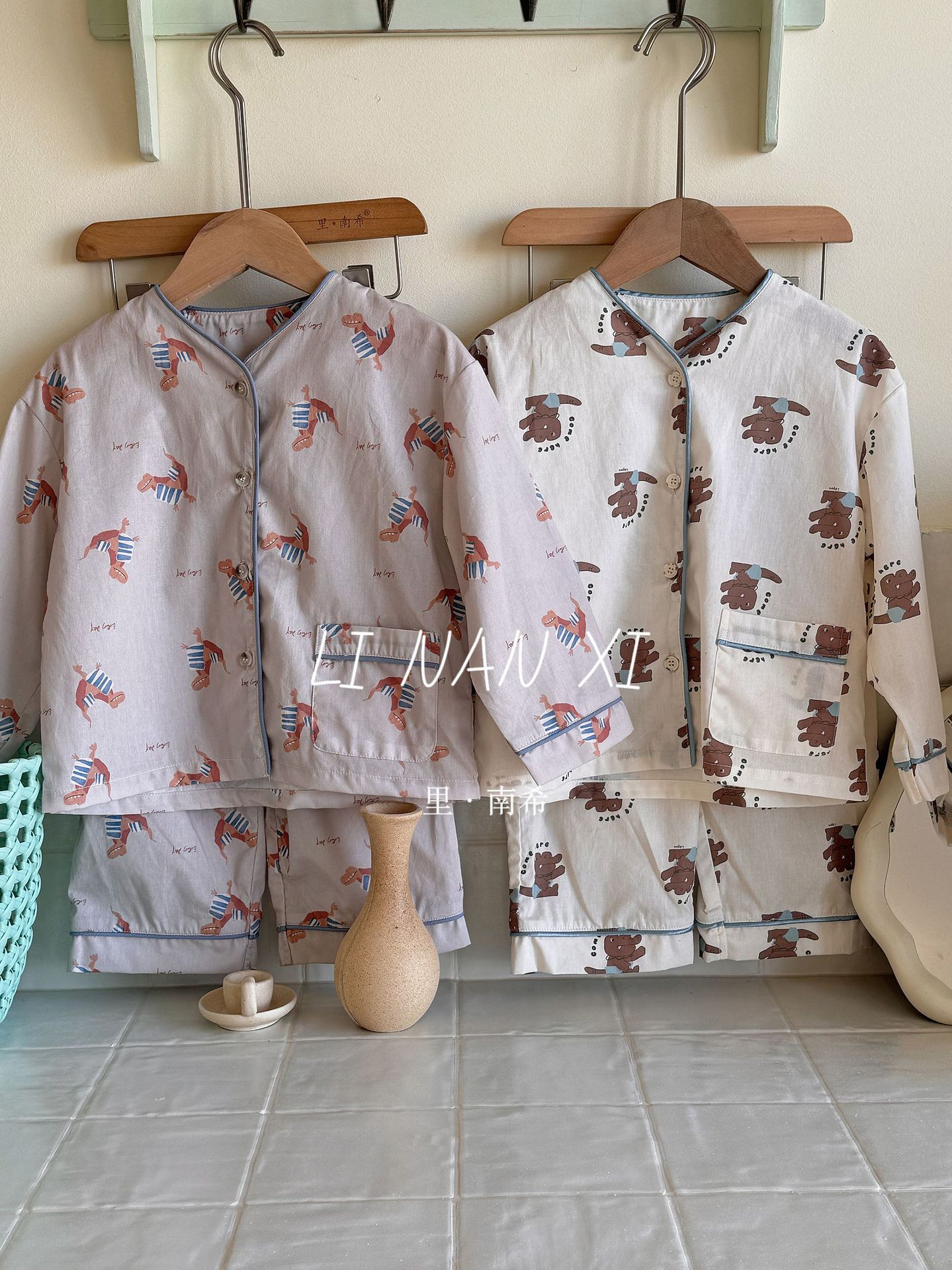 Pijamas y Pijamas Coreanos para Niños 25 Otoño Nuevo Algodón Bebé Dibujos Animados Lindo Conjunto Ropa para Casa 85005