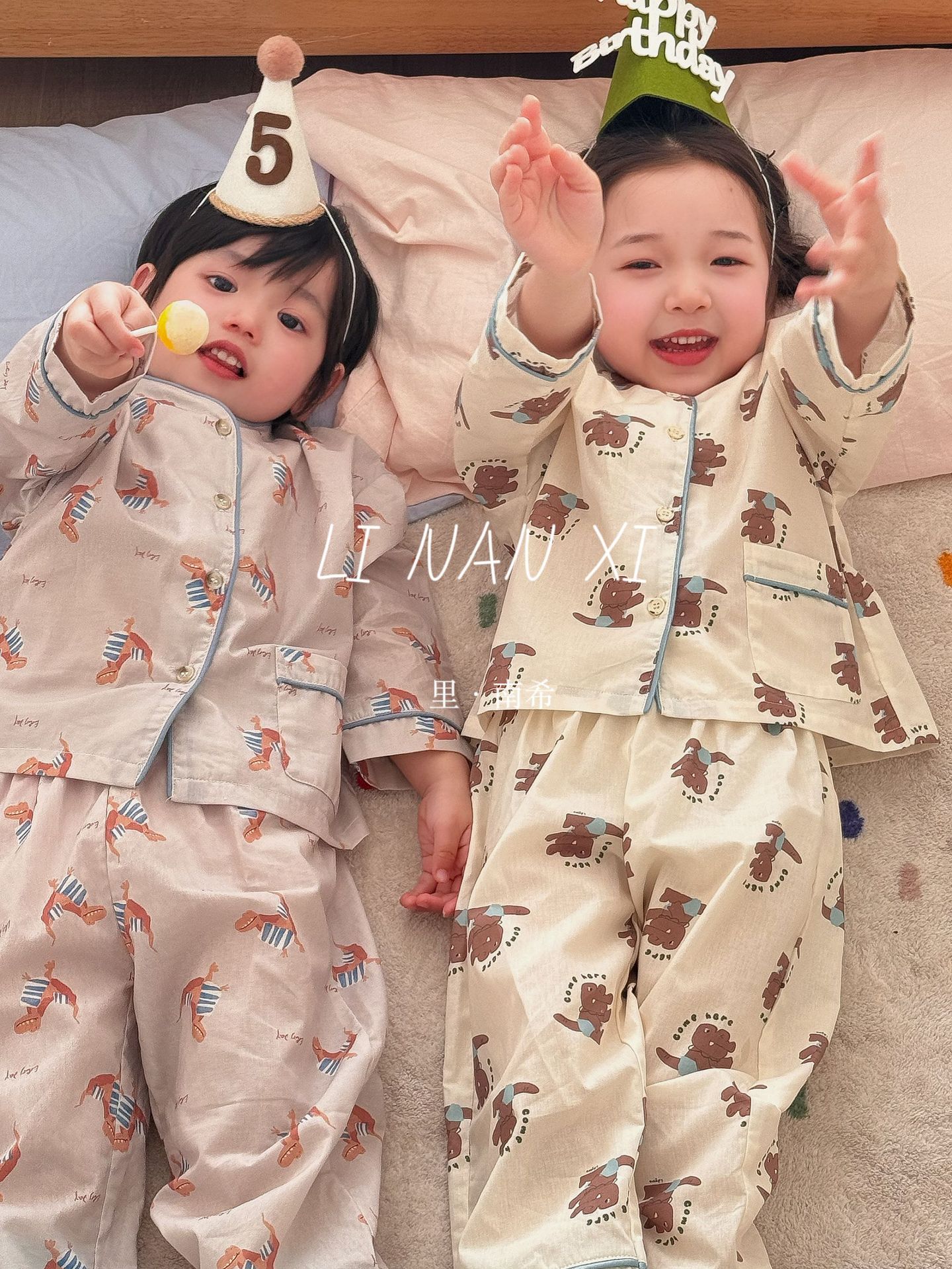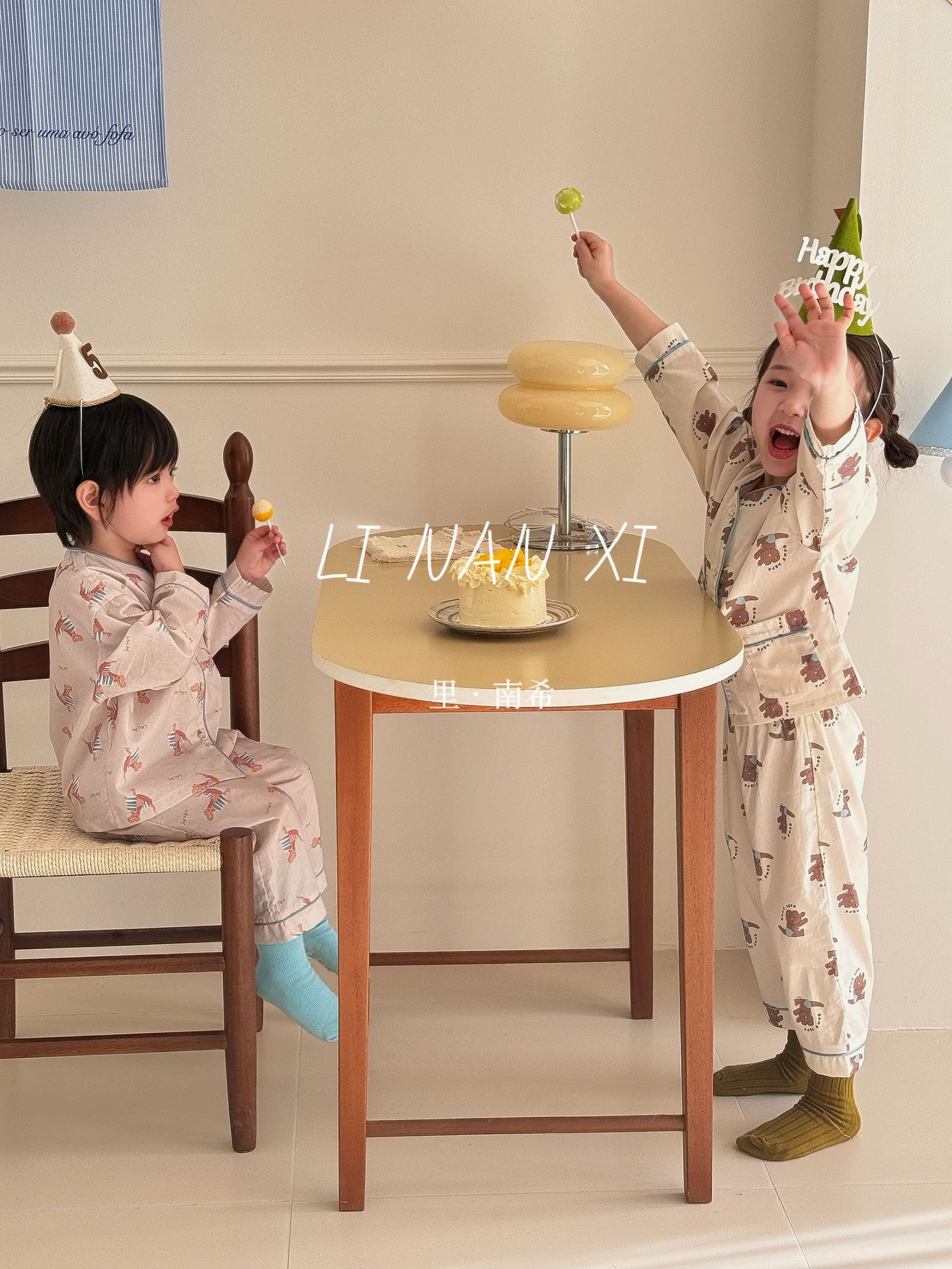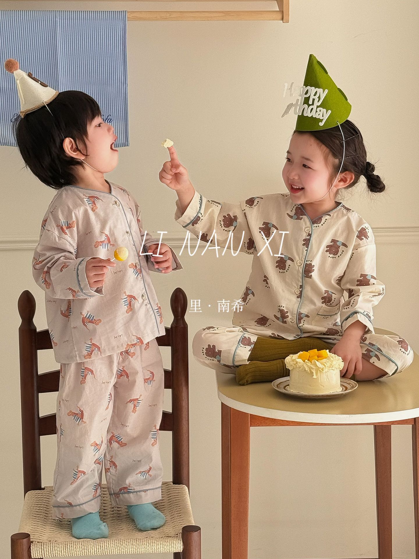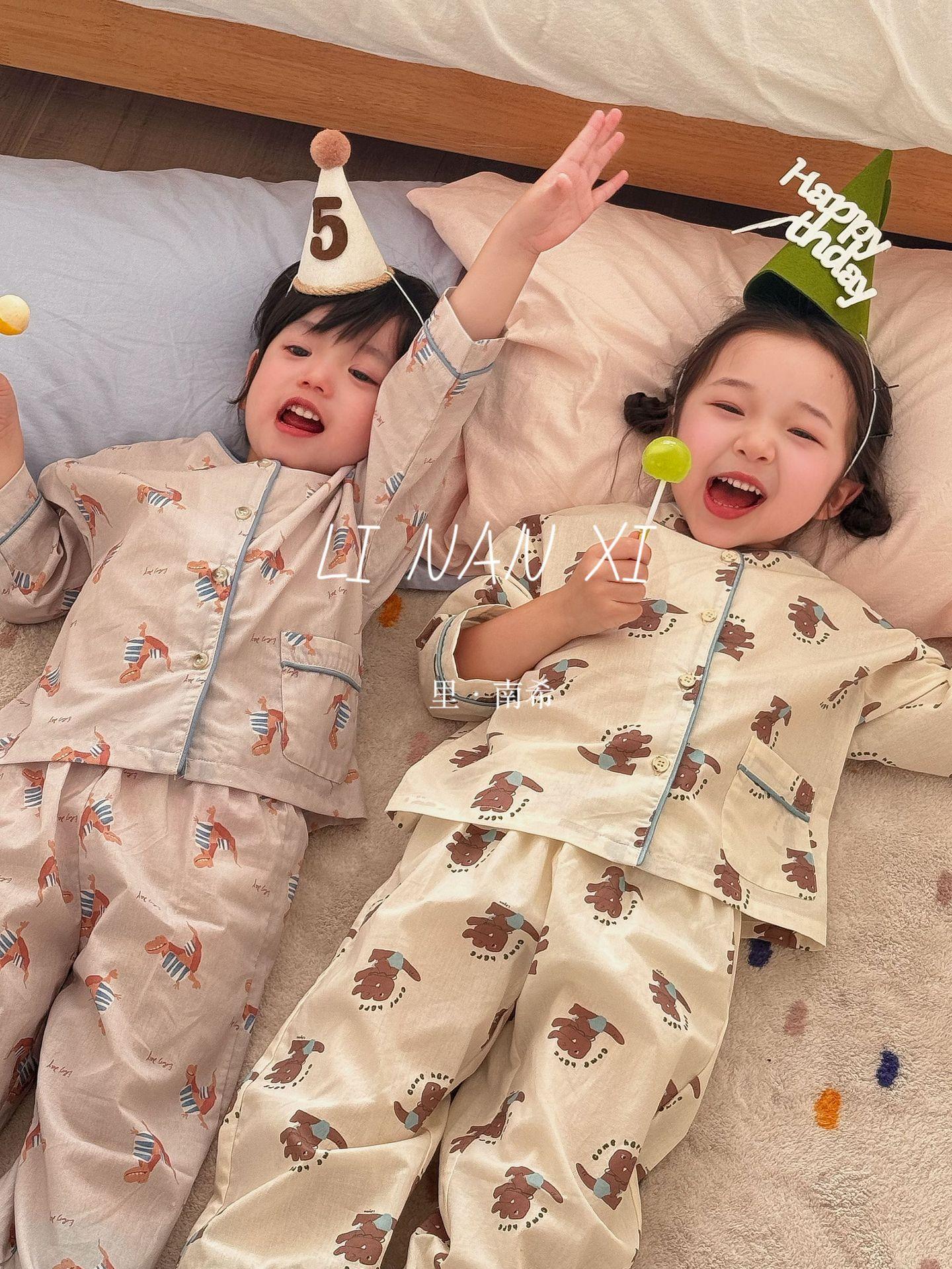 Pijamas y Pijamas Coreanos para Niños 25 Otoño Nuevo Algodón Bebé Dibujos Animados Lindo Conjunto Ropa para Casa 85005