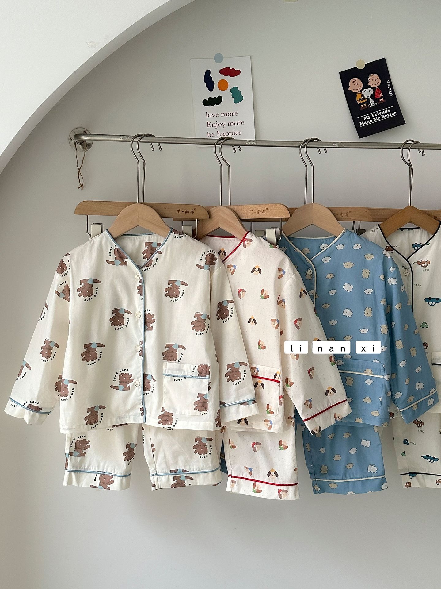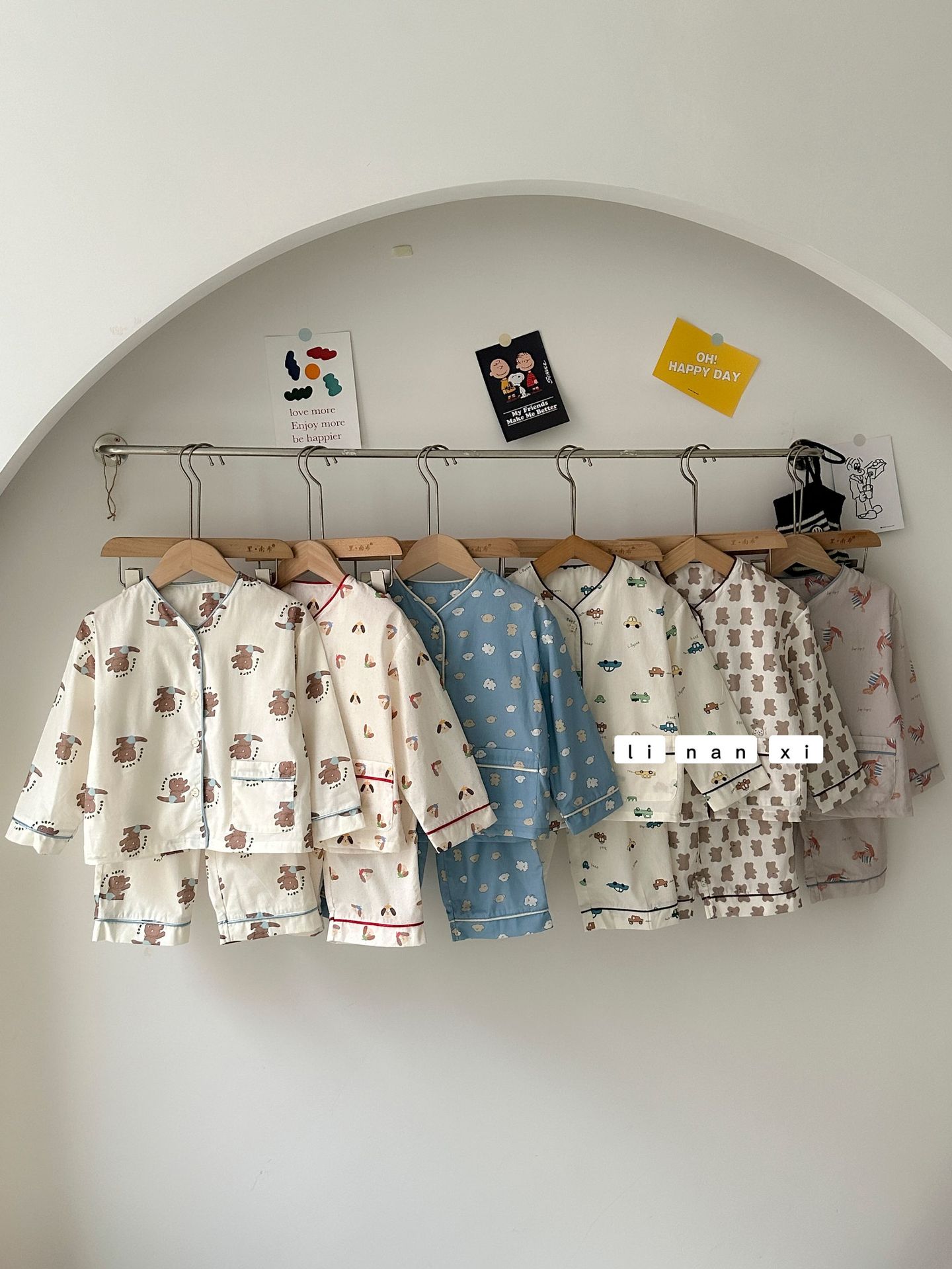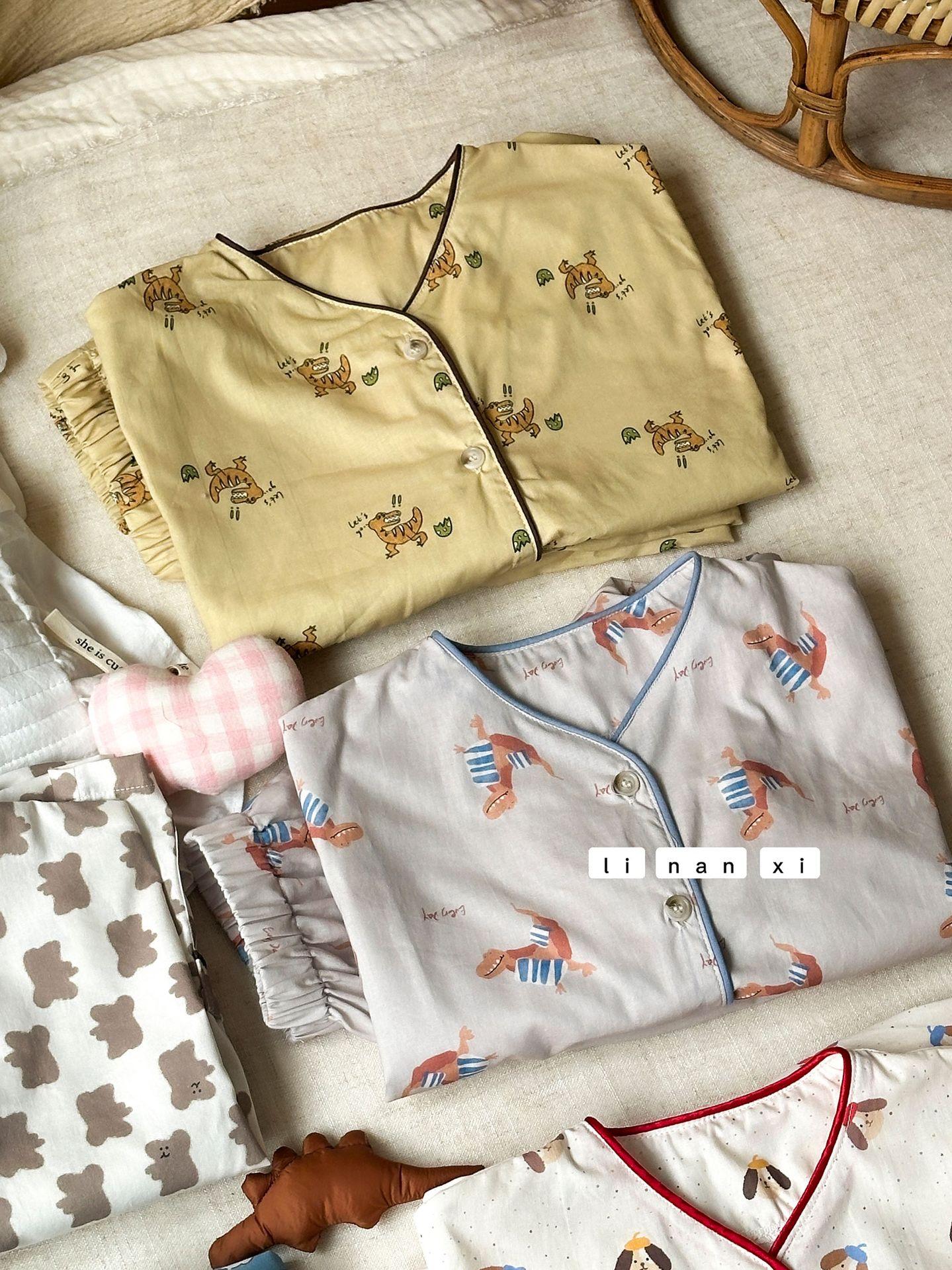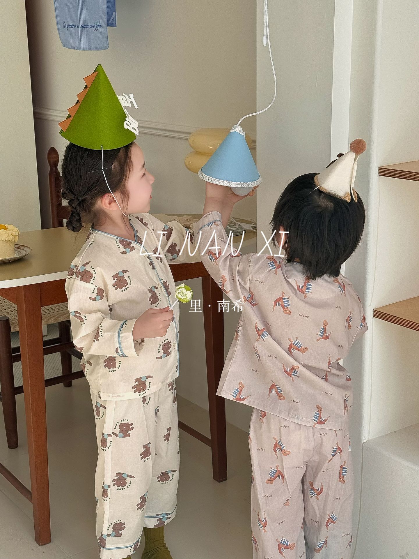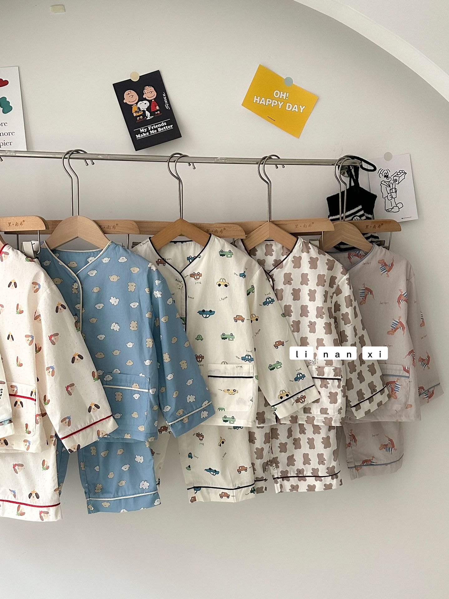 Pijamas y Pijamas Coreanos para Niños 25 Otoño Nuevo Algodón Bebé Dibujos Animados Lindo Conjunto Ropa para Casa 85005